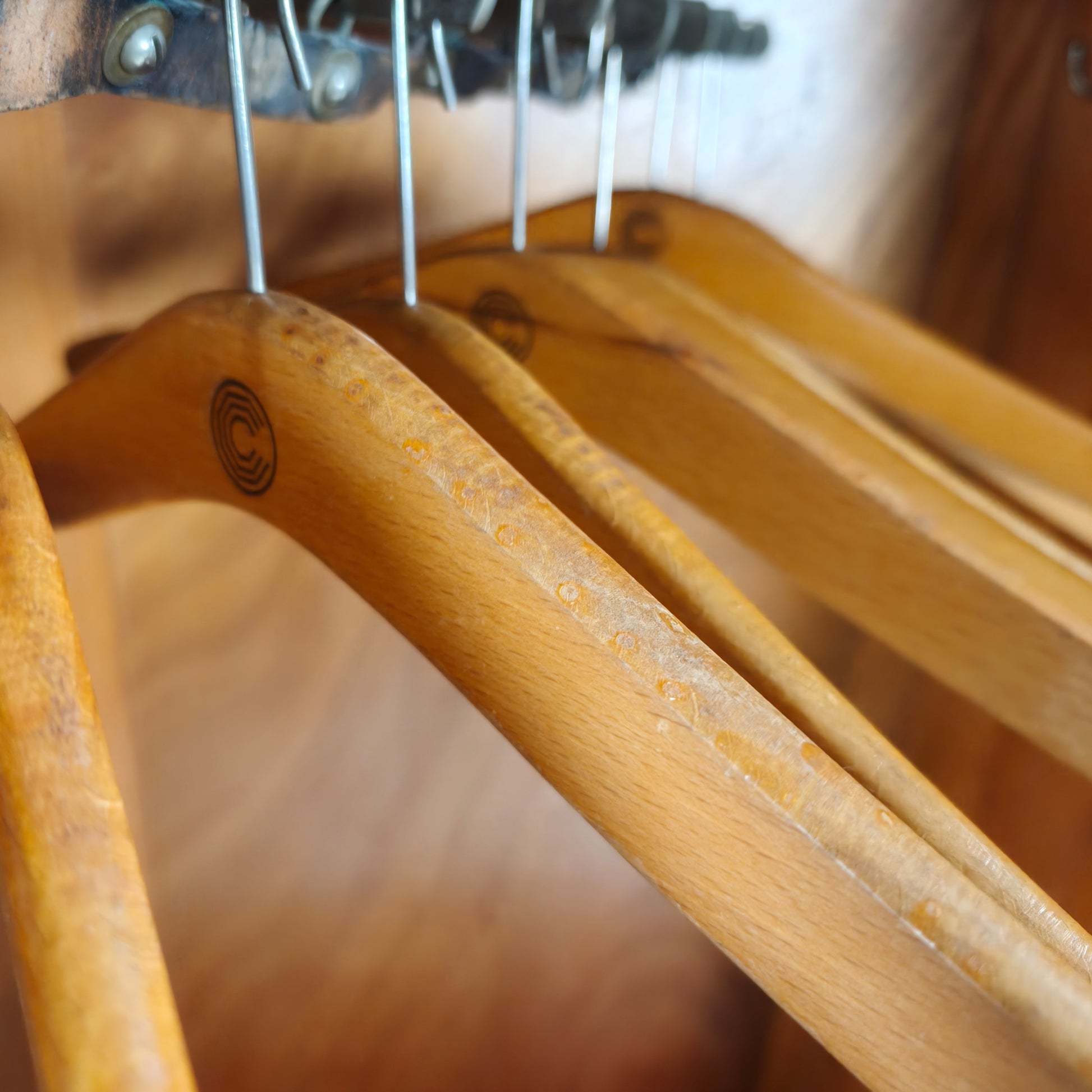 An elegant and highly practical 1920s Compactom Ltd gentleman’s wardrobe, crafted in a refined combination of mahogany and oak. Designed for the well-dressed gentleman, this wardrobe features the ingenious Compactom interior system with numerous dedicated compartments for perfectly organized clothing storage.