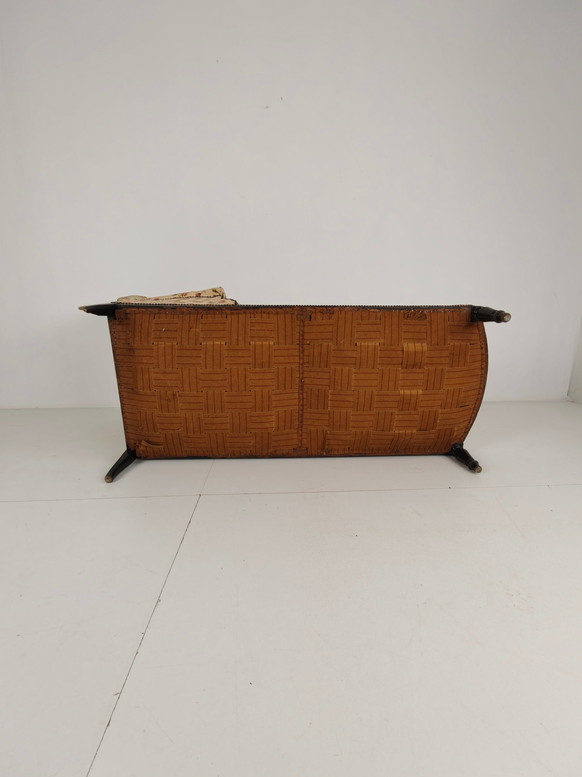 There are visible signs of age and use (see photos), including a slightly sagging spring seat and some wear on the rear left leg. However, the frame is still solid and stable, and the piece remains both decorative and usable.