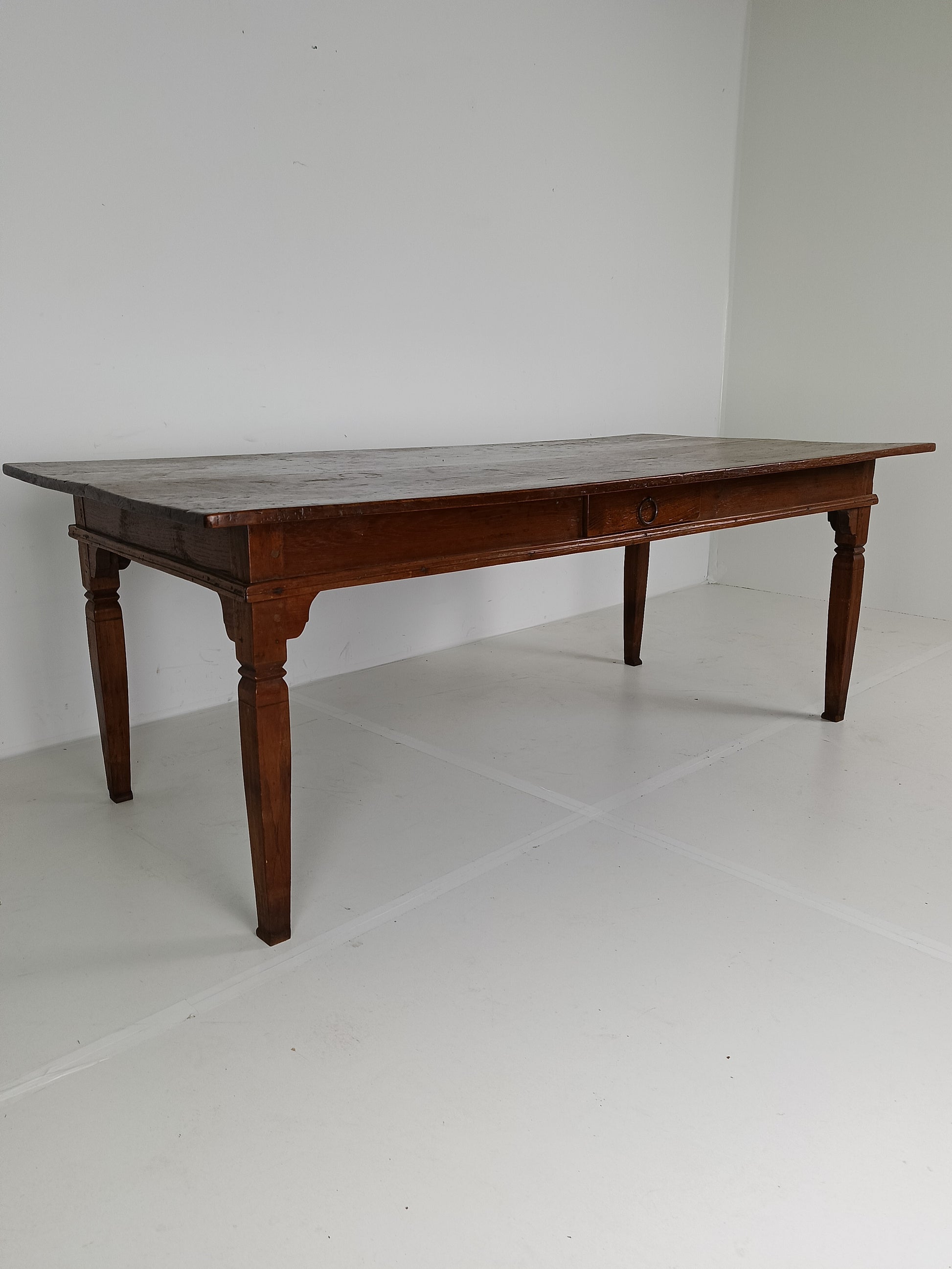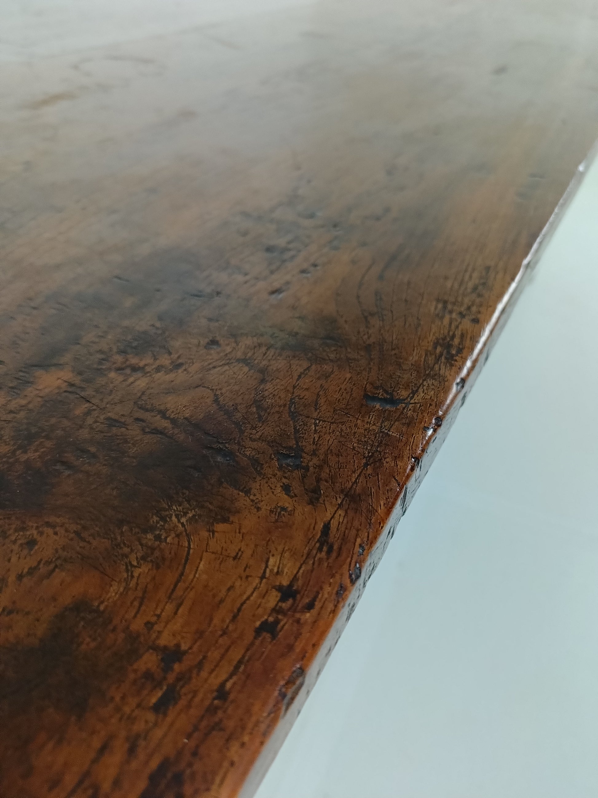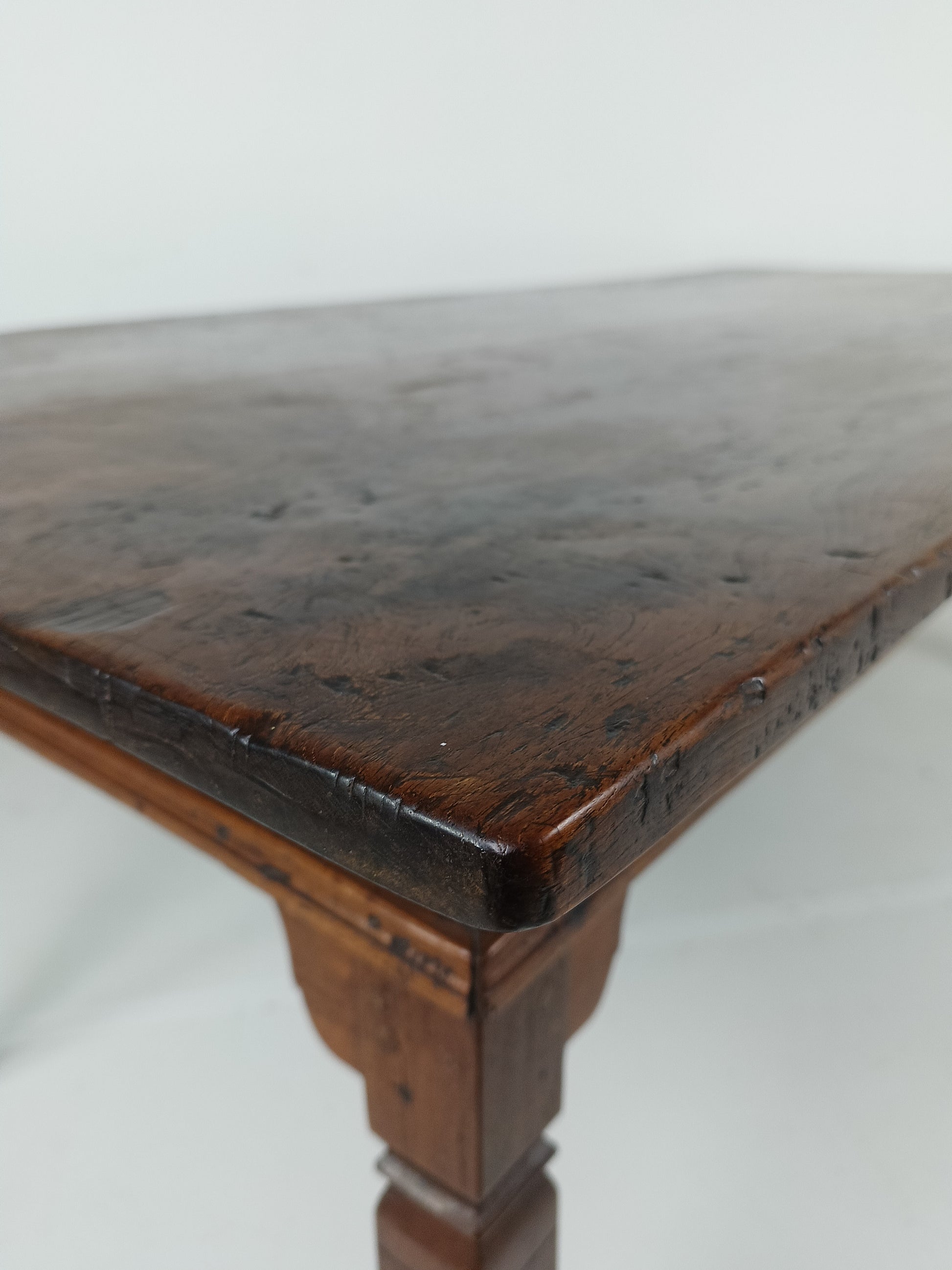 This amazing table has melted together two different but perfectly working ages. The table top is from around the 19th century, made out of sturdy wood, contains of beautiful aged patina. The base of the table represents colonial time frame.