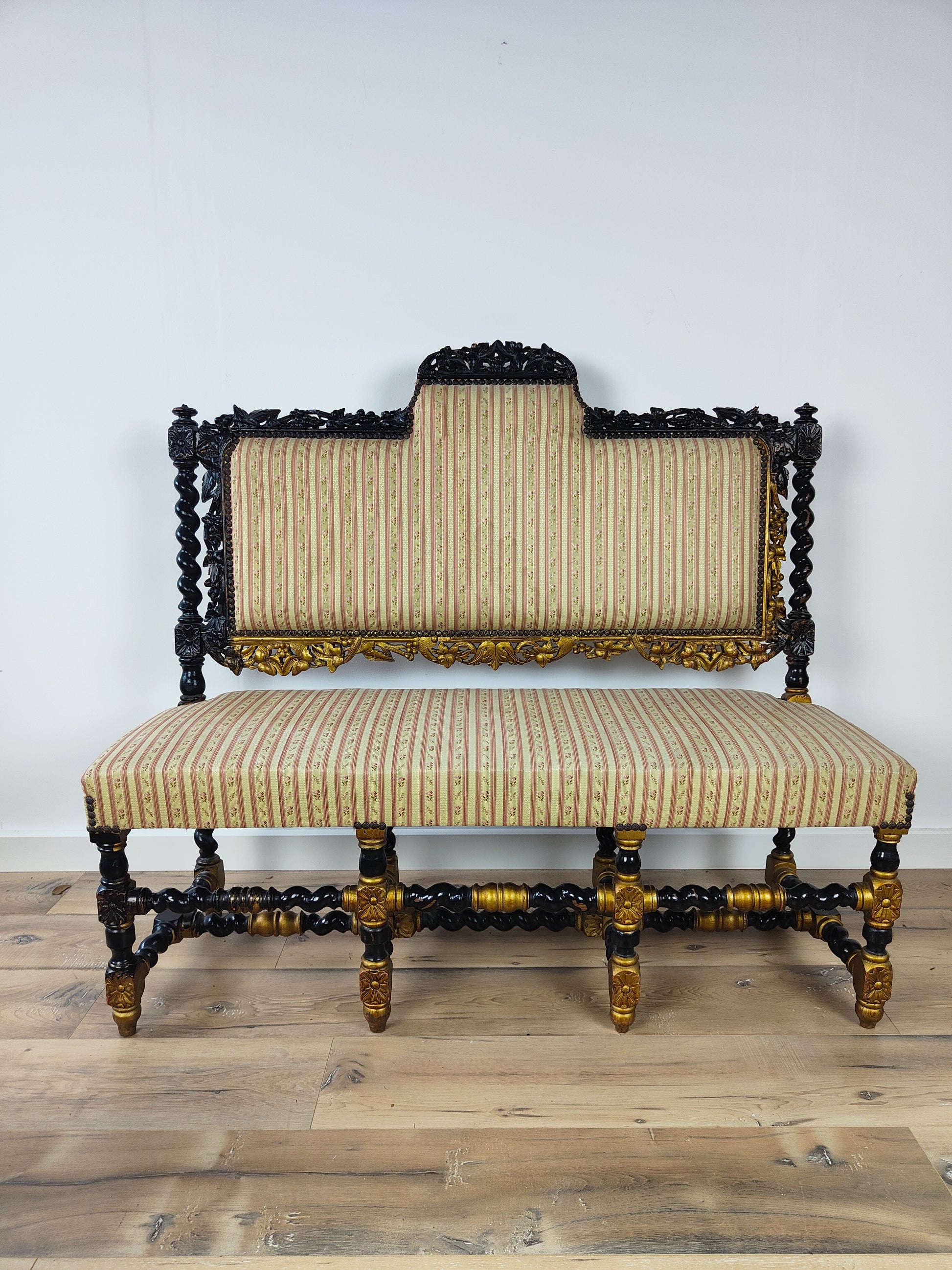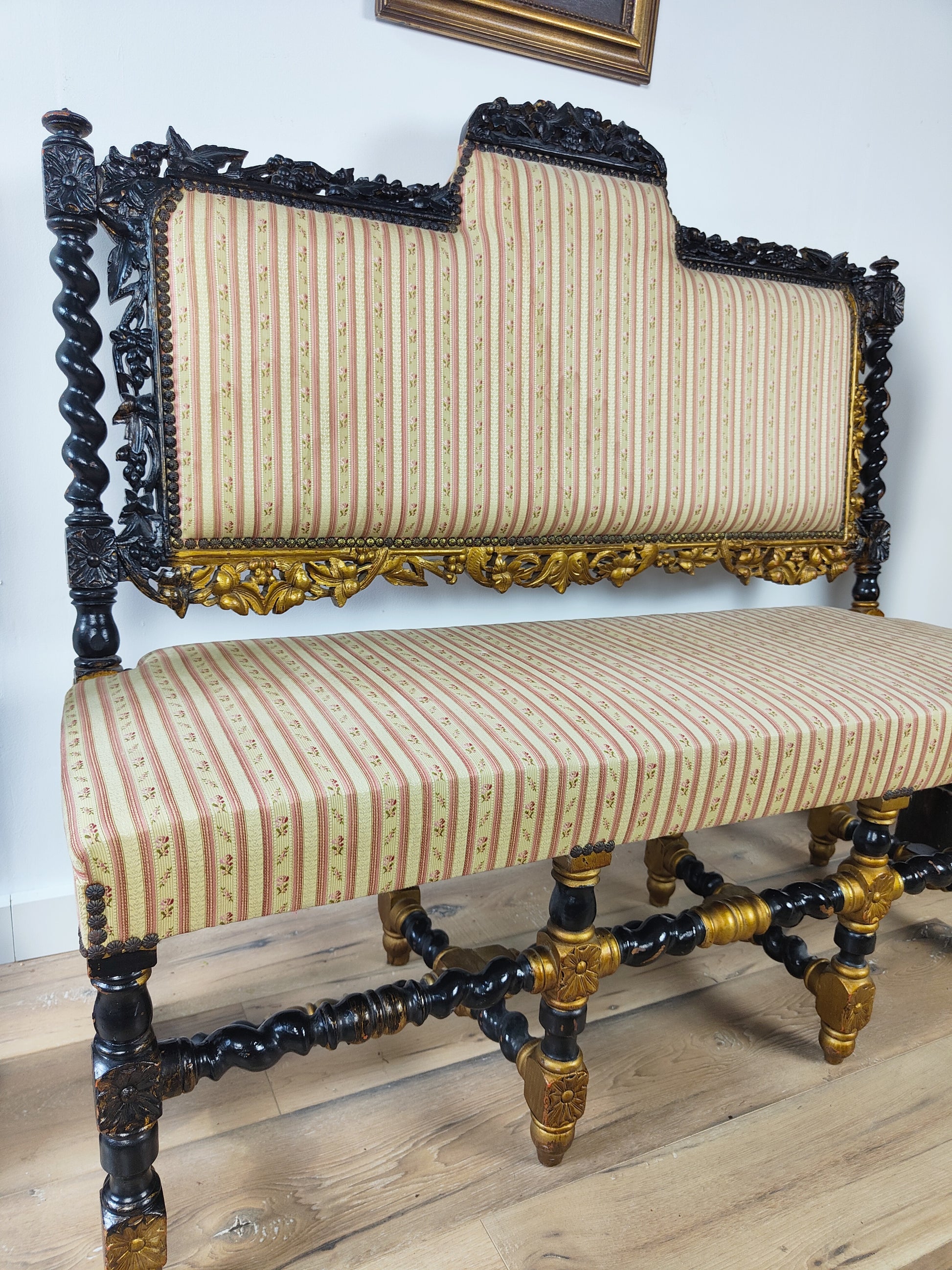A beautiful antique french hall sofa, very richly executed with carvings and gilded details.