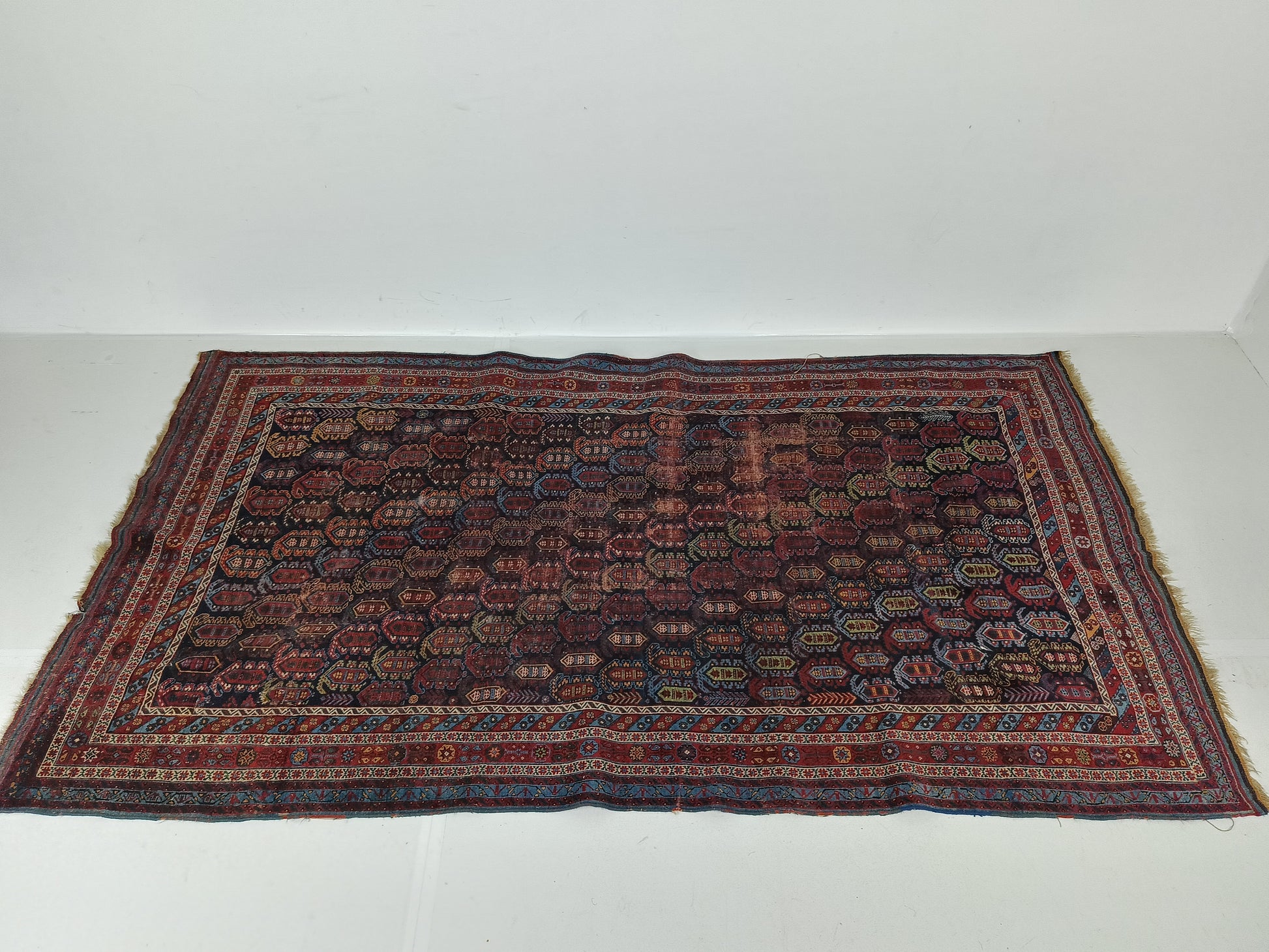 This Afshar rug, circa 1920-1930, is a true masterpiece of Persian craftsmanship. Handwoven with intricate geometric patterns and rich natural dyes, it reflects the unique artistry of the Afshar tribes. Its vibrant colors and durable wool make it both a stunning decorative piece and a lasting heirloom, embodying a timeless blend of beauty and tradition. Has signs of wear consistant with age and use.