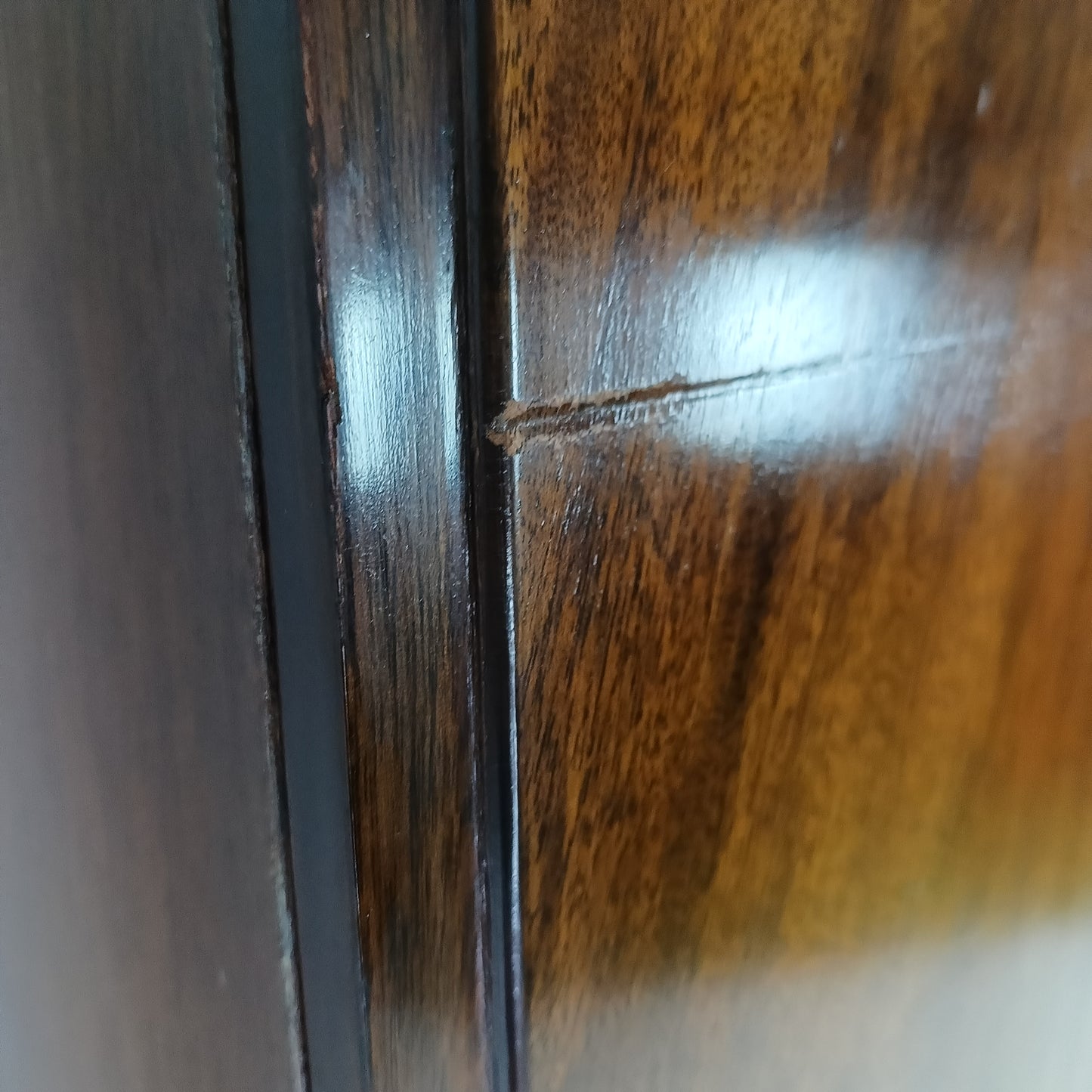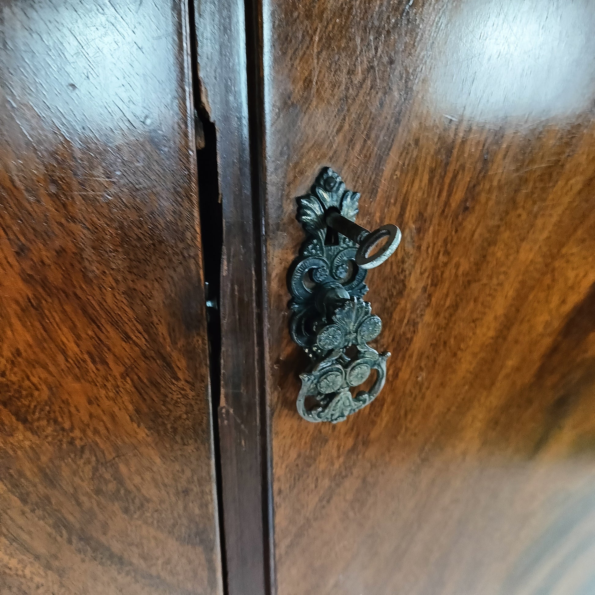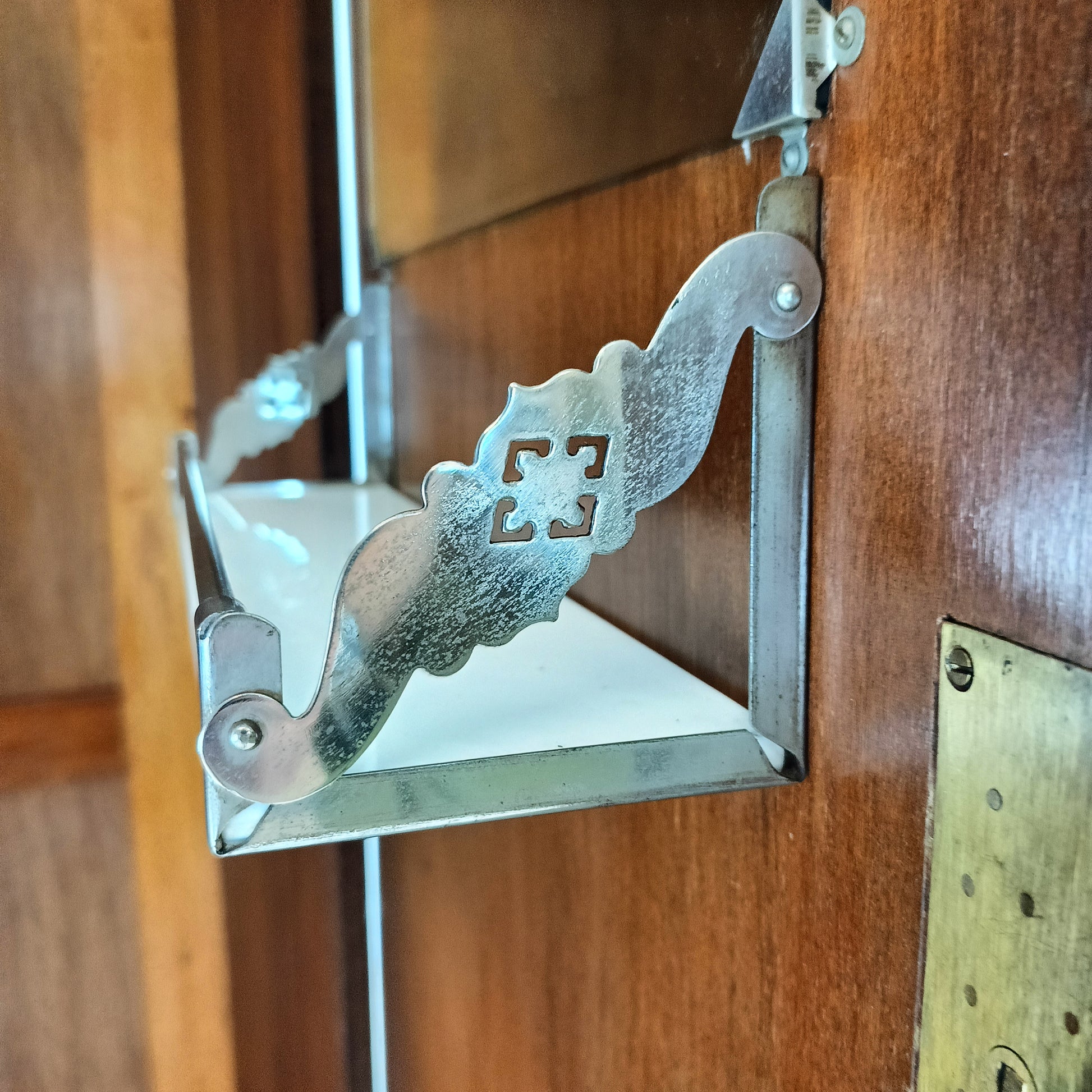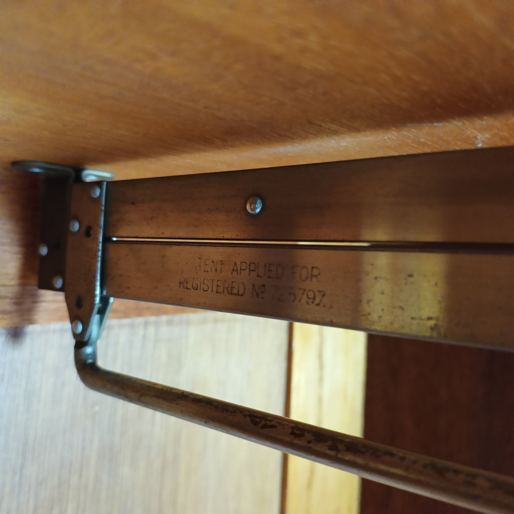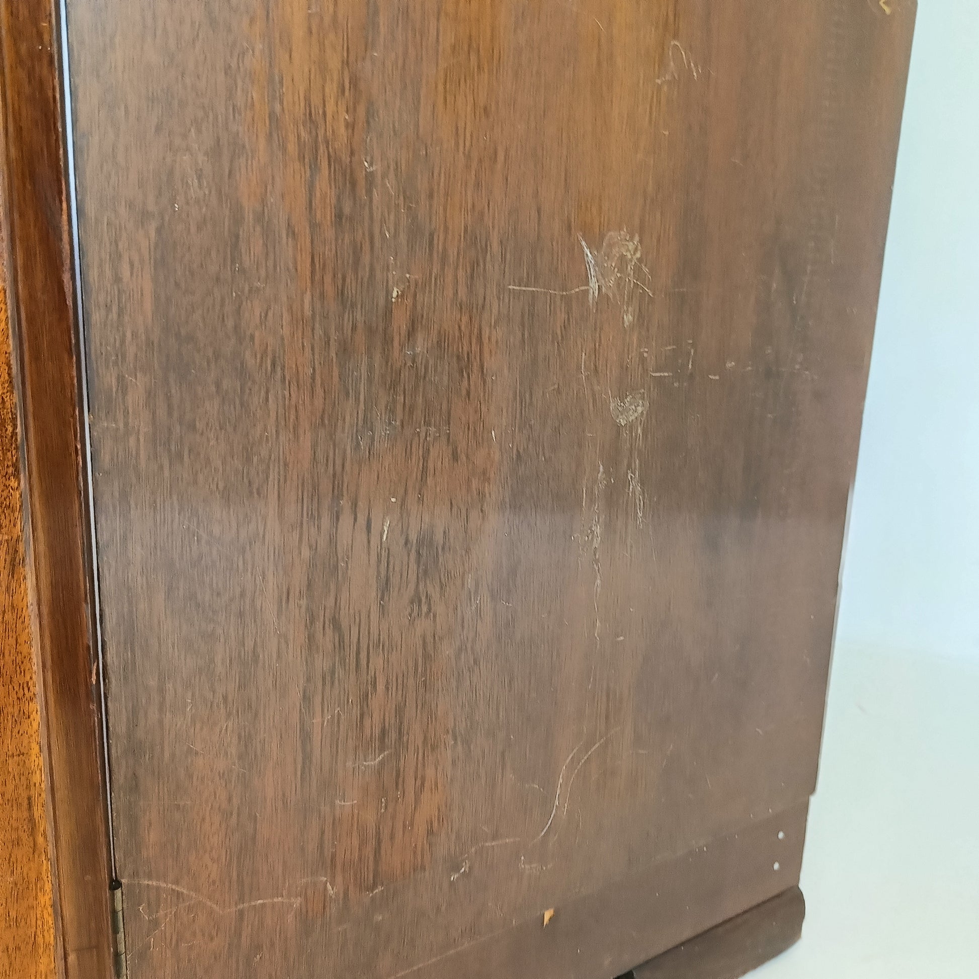 The cabinet has a sleek design but is at the same time elegantly finished with burl walnut veneer. With a handy, compact interior layout with compartments on the right side and an extendable rod on the left. With labels including hats, hankerchiefs, socks, underwear, shirts, studs, ties/scarves, shoes etc.