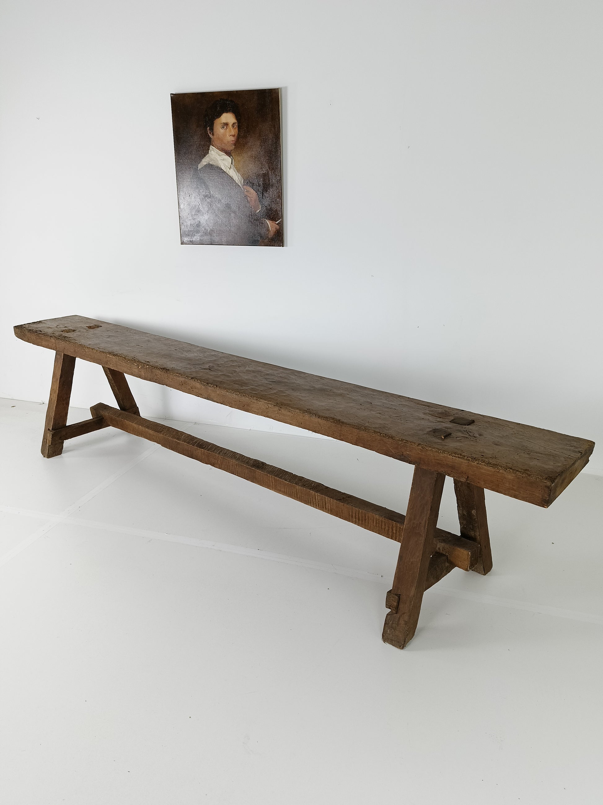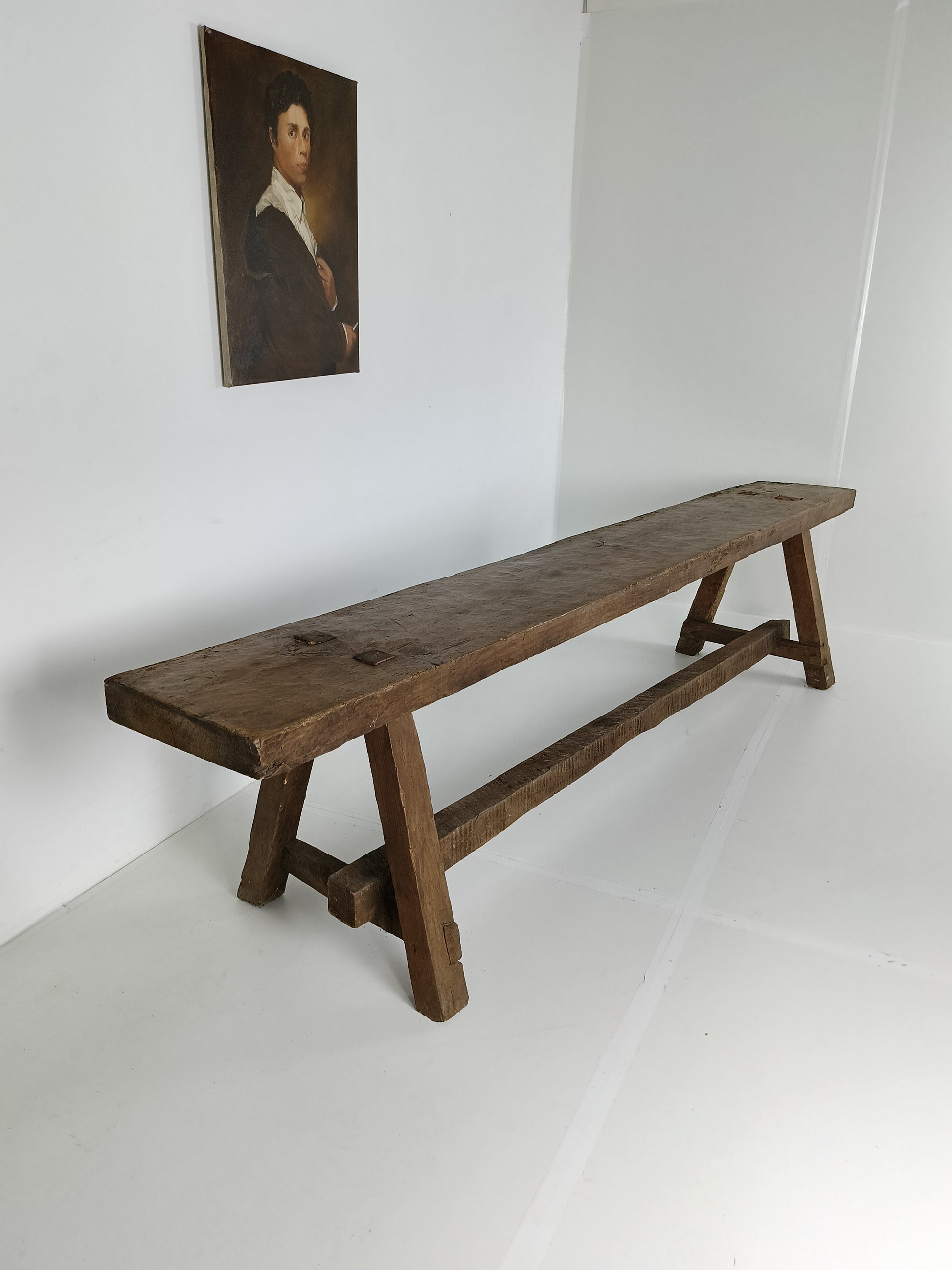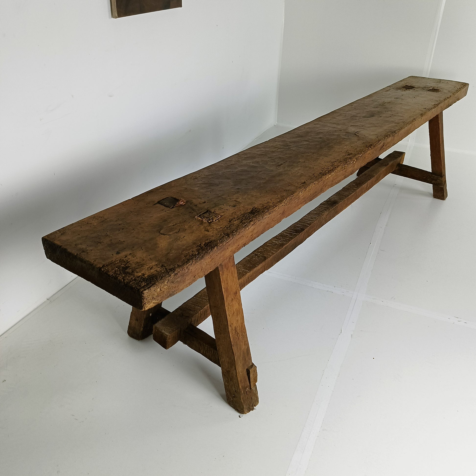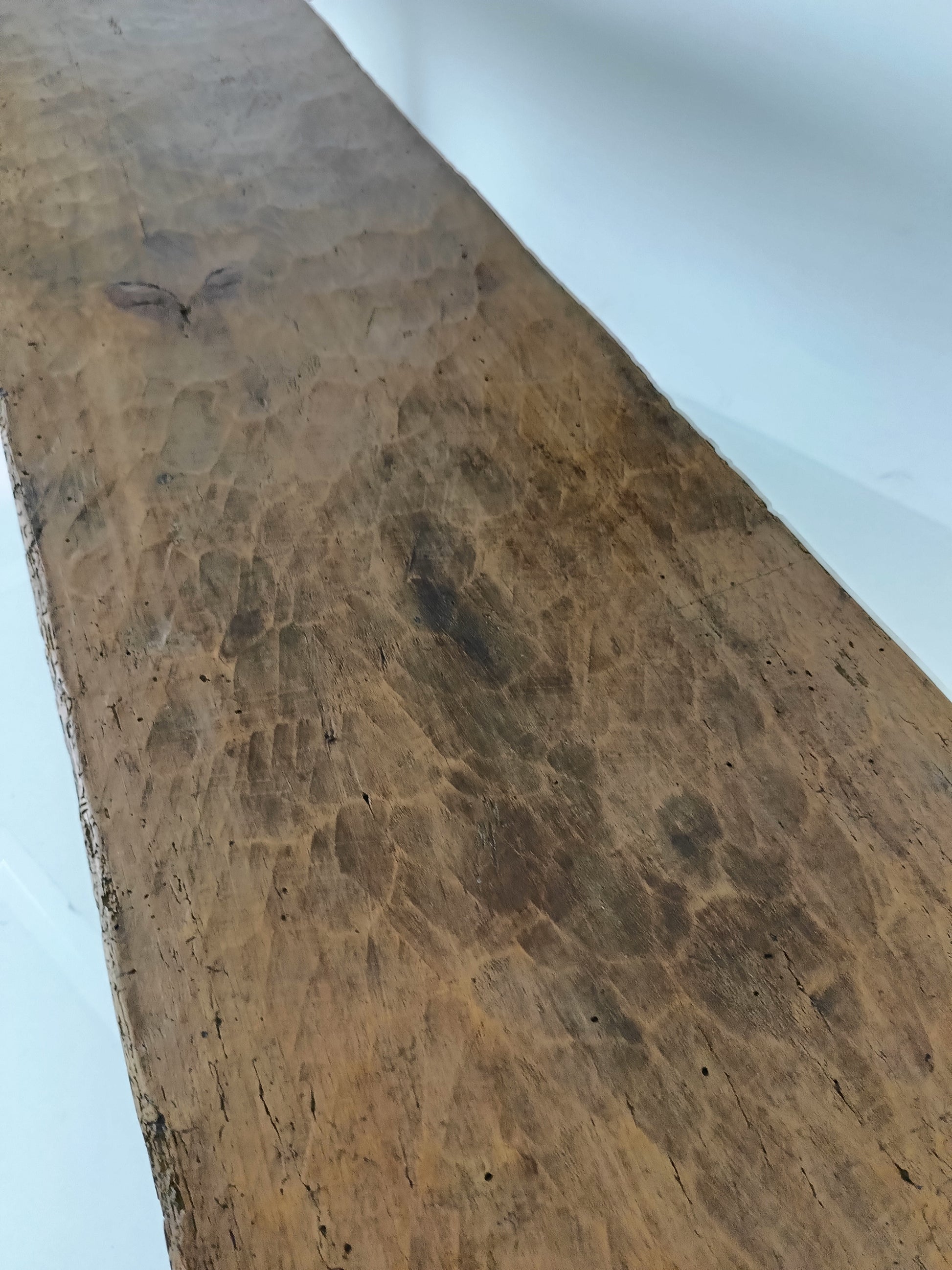 An antique long bench from Guatemala is a captivating piece of furniture that embodies the rich cultural heritage and craftsmanship of the region. Typically made from sturdy hardwoods. . With its aged patina and timeless design, an antique Guatemalan bench serves as both a functional seating solution and a decorative statement, adding a touch of history and elegance to any space. Has signs of wear and patina consistant with age and use.