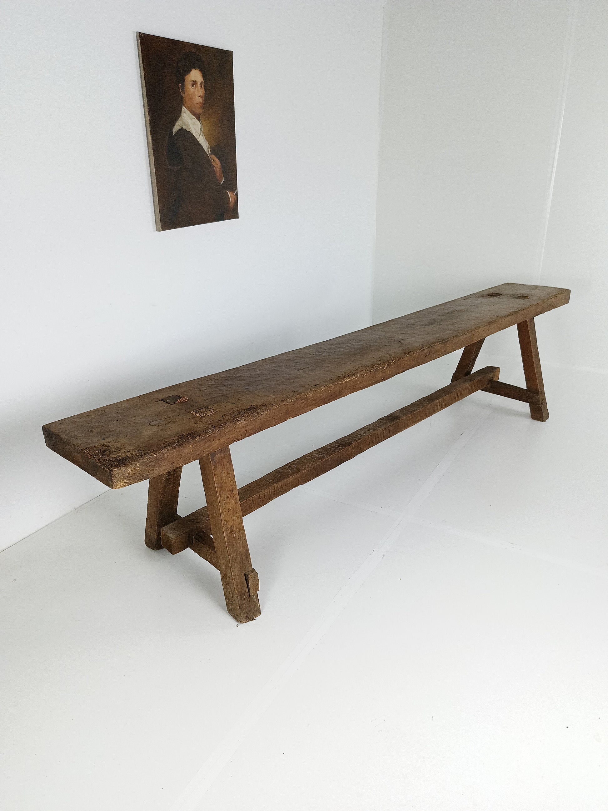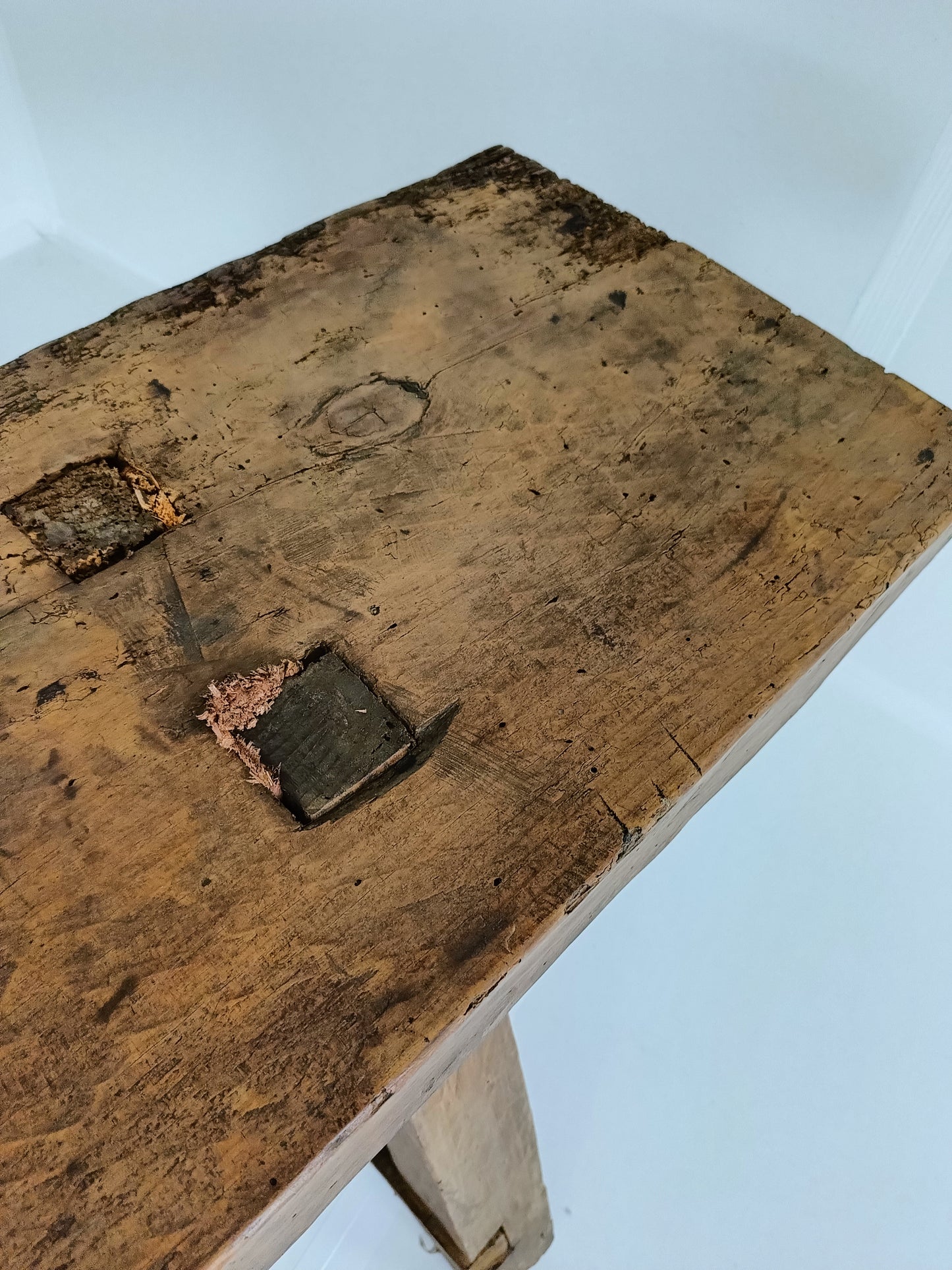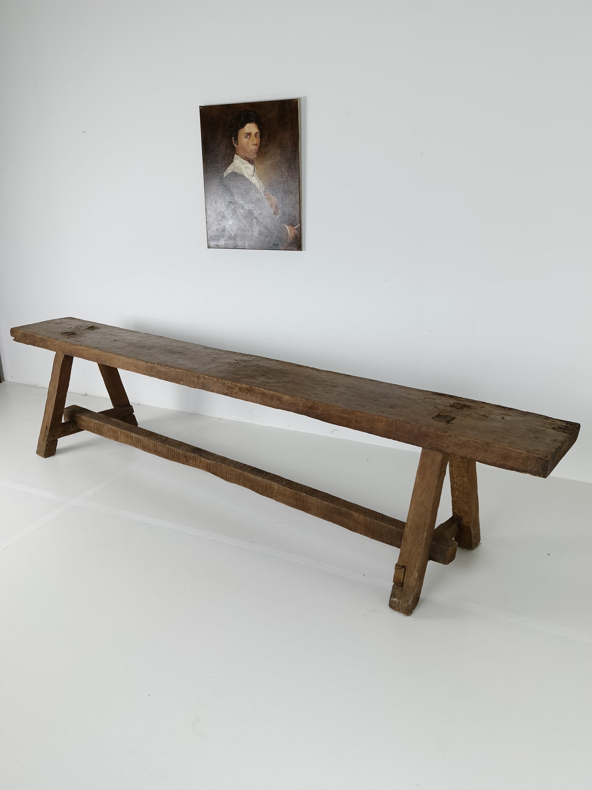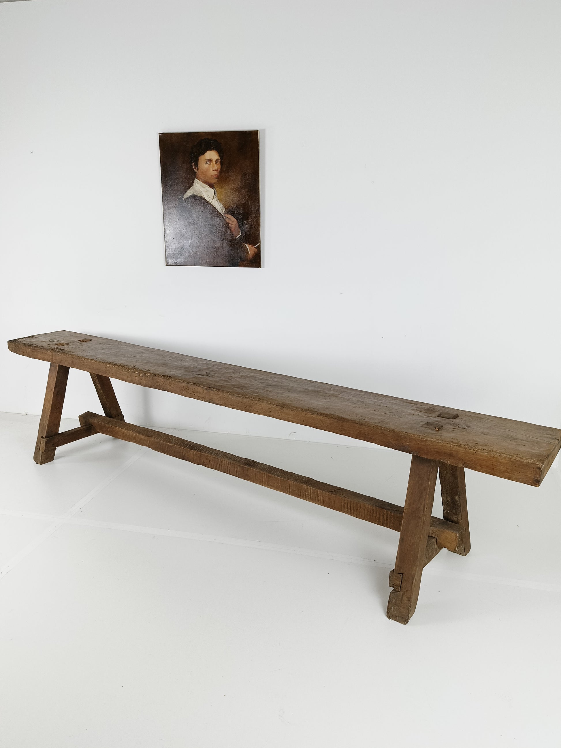 An antique long bench from Guatemala is a captivating piece of furniture that embodies the rich cultural heritage and craftsmanship of the region. Typically made from sturdy hardwoods. . With its aged patina and timeless design, an antique Guatemalan bench serves as both a functional seating solution and a decorative statement, adding a touch of history and elegance to any space. Has signs of wear and patina consistant with age and use.