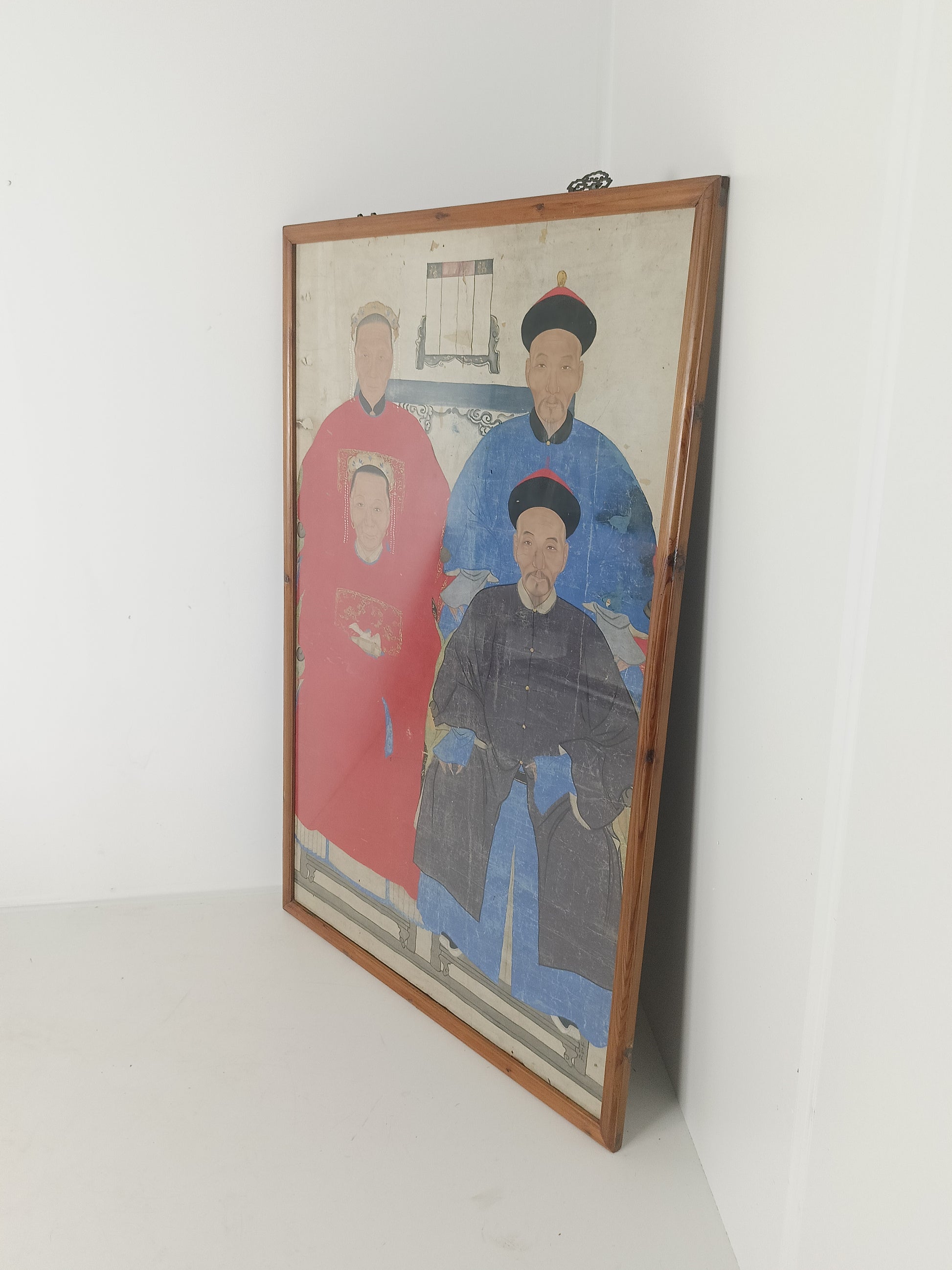 A framed Chinese ancestral portrait from the Qing Dynasty is a stunning and historically significant artwork, traditionally used in ancestral veneration. These portraits were hand-painted on paper, capturing the dignity and status of the ancestor in intricate detail.