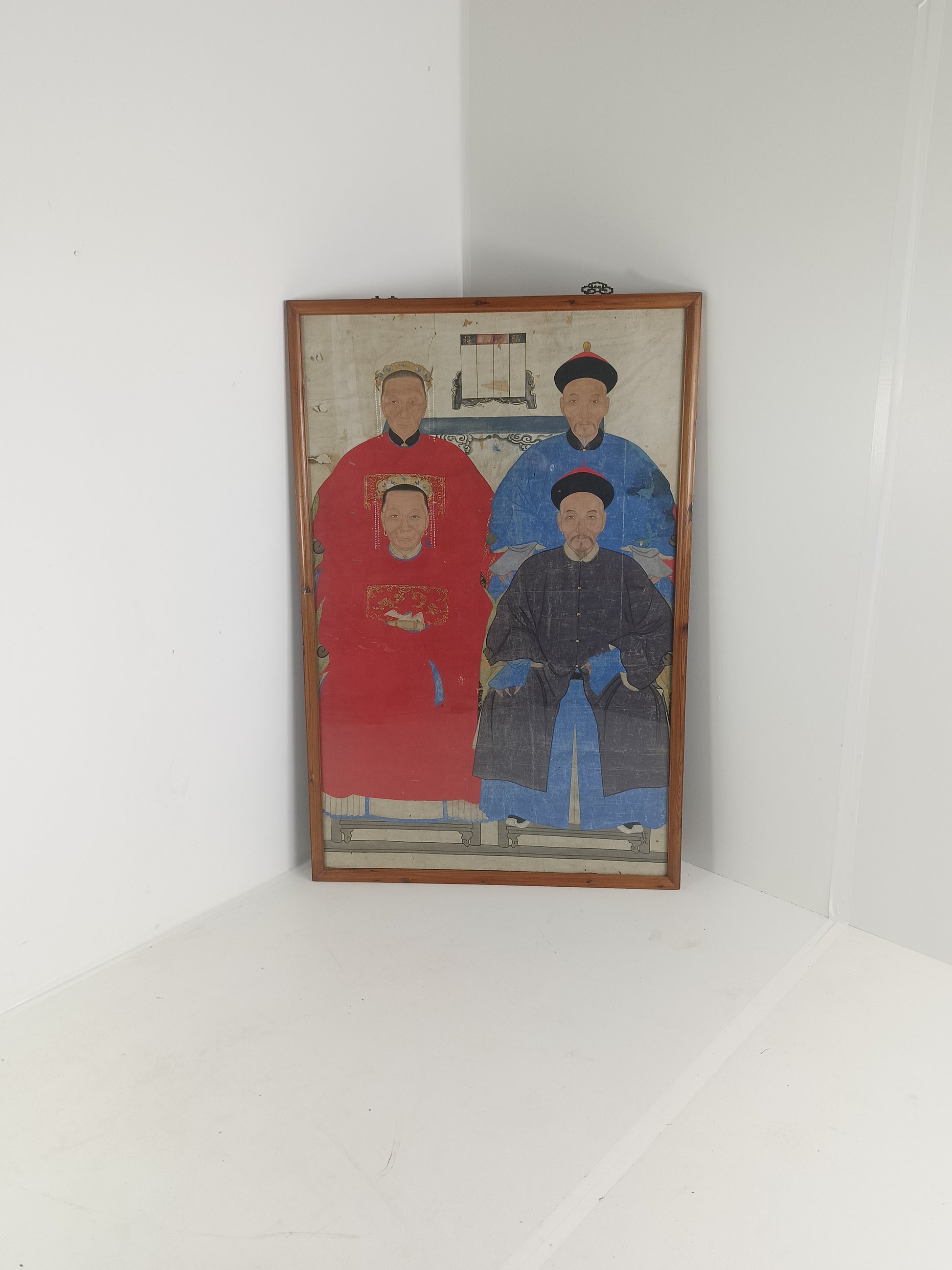 A framed Chinese ancestral portrait is a traditional hand-painted