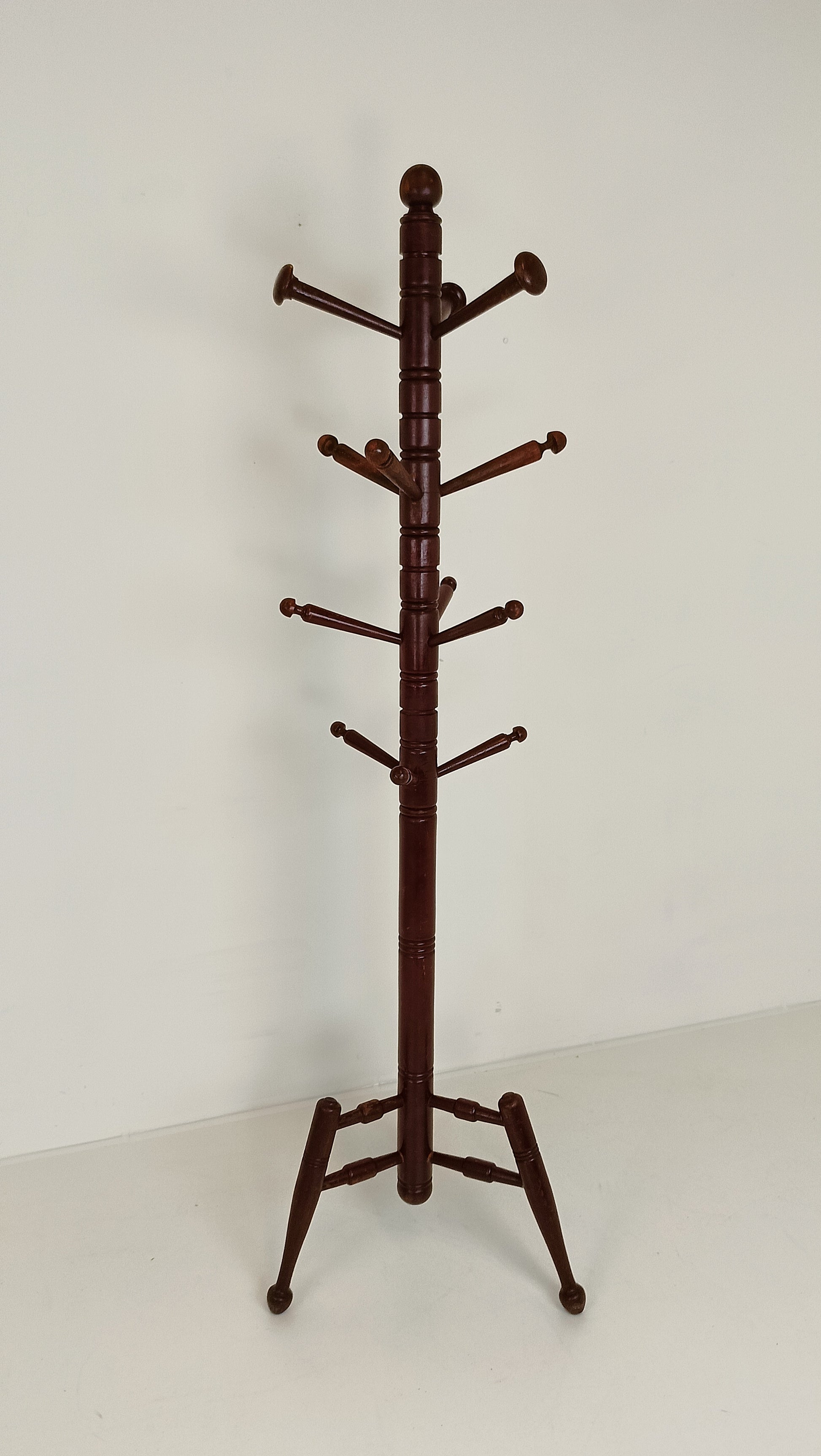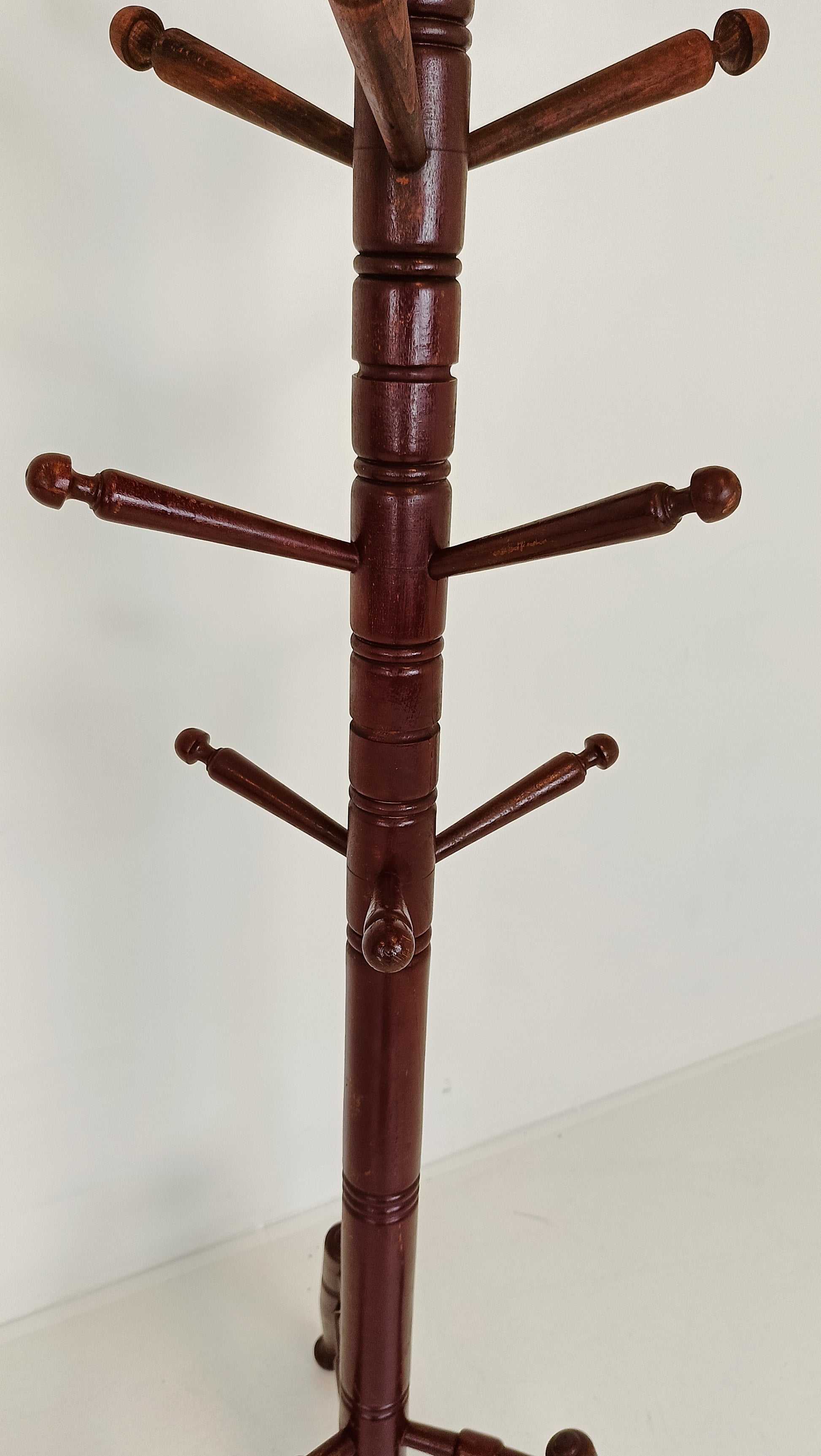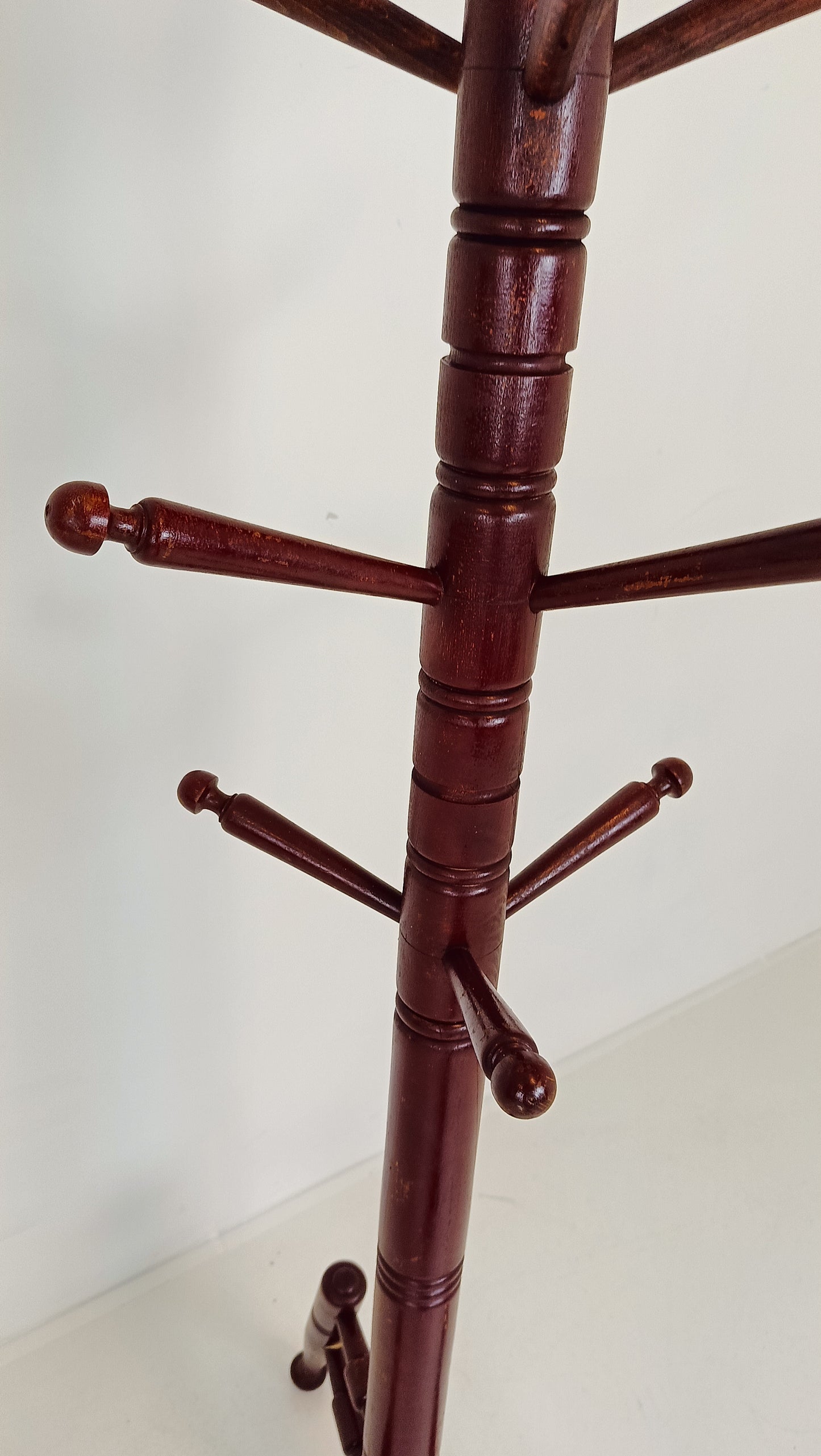 In a corner of the room, an antique coat rack stands tall, its deep red hue commanding attention. Each curve and twist of its ornate design tells a story of bygone eras and cherished memories. Adorned with intricate details, it offers more than mere functionality; it adds a touch of vintage charm to the space. Against the backdrop of modernity, this coat rack stands as a reminder of the enduring allure of the past, inviting one to hang their coat and perhaps ponder the tales it could tell.