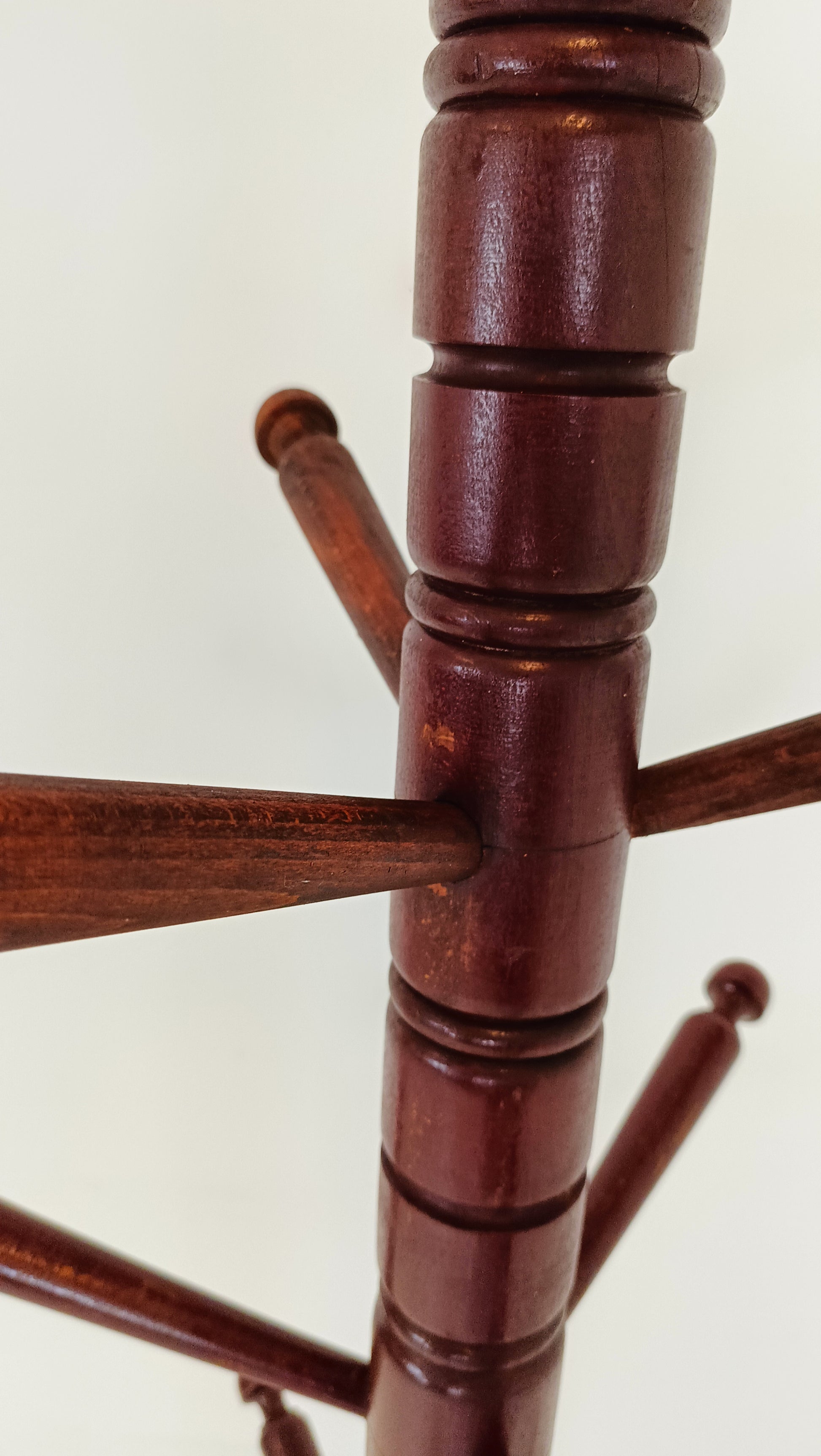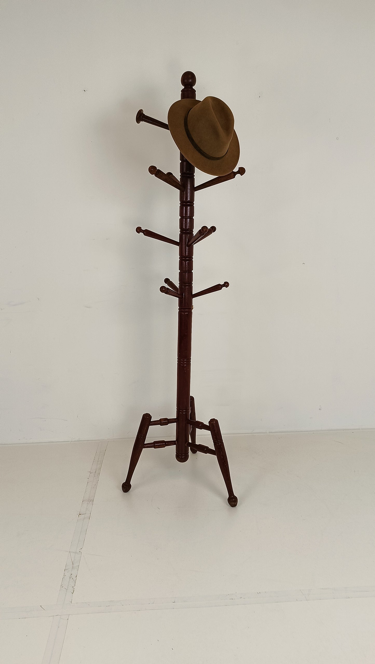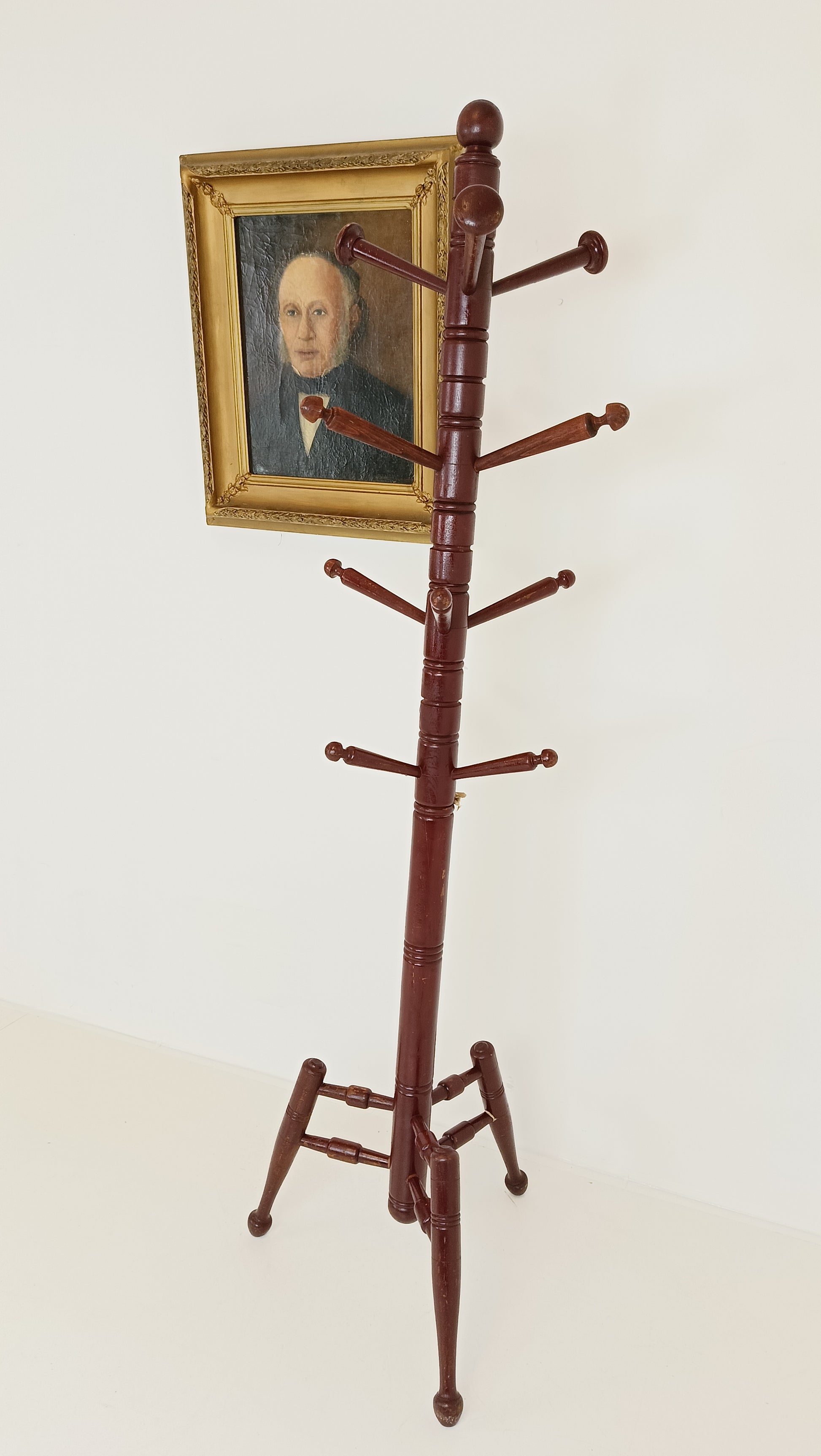 In a corner of the room, an antique coat rack stands tall, its deep red hue commanding attention. Each curve and twist of its ornate design tells a story of bygone eras and cherished memories. Adorned with intricate details, it offers more than mere functionality; it adds a touch of vintage charm to the space. Against the backdrop of modernity, this coat rack stands as a reminder of the enduring allure of the past, inviting one to hang their coat and perhaps ponder the tales it could tell.