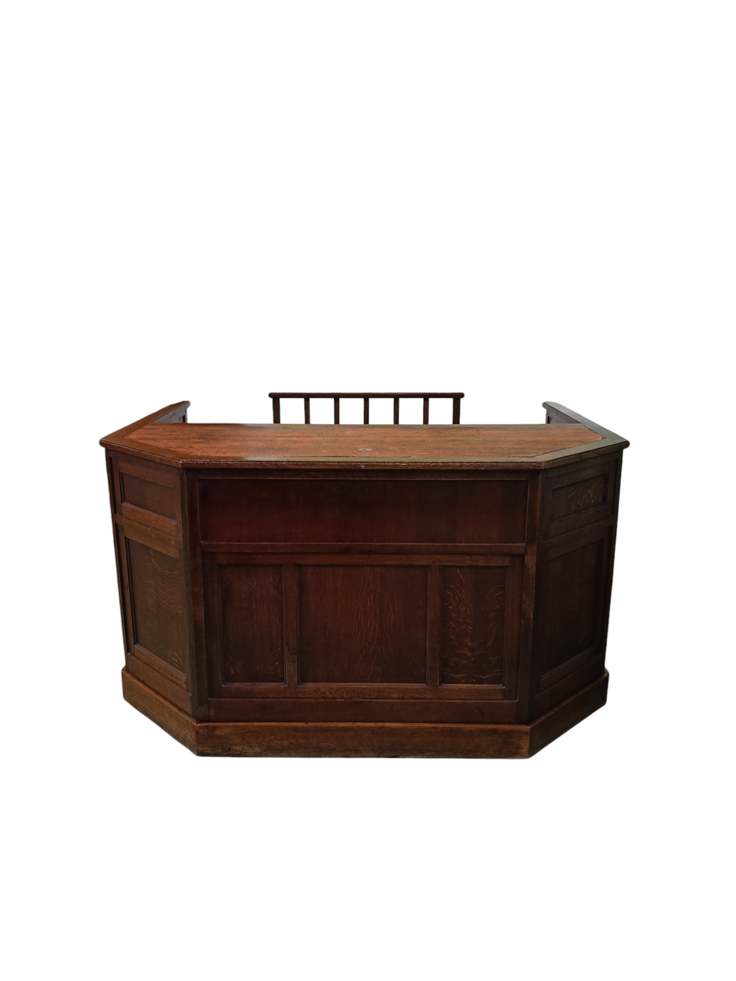 This antique court speaking desk comes from the Palace of Justice Court of Antwerp. Its a very unique piece and beautifully made late 19th century. History at its finest. Made out of solid oak. Unique and one of a kind item.