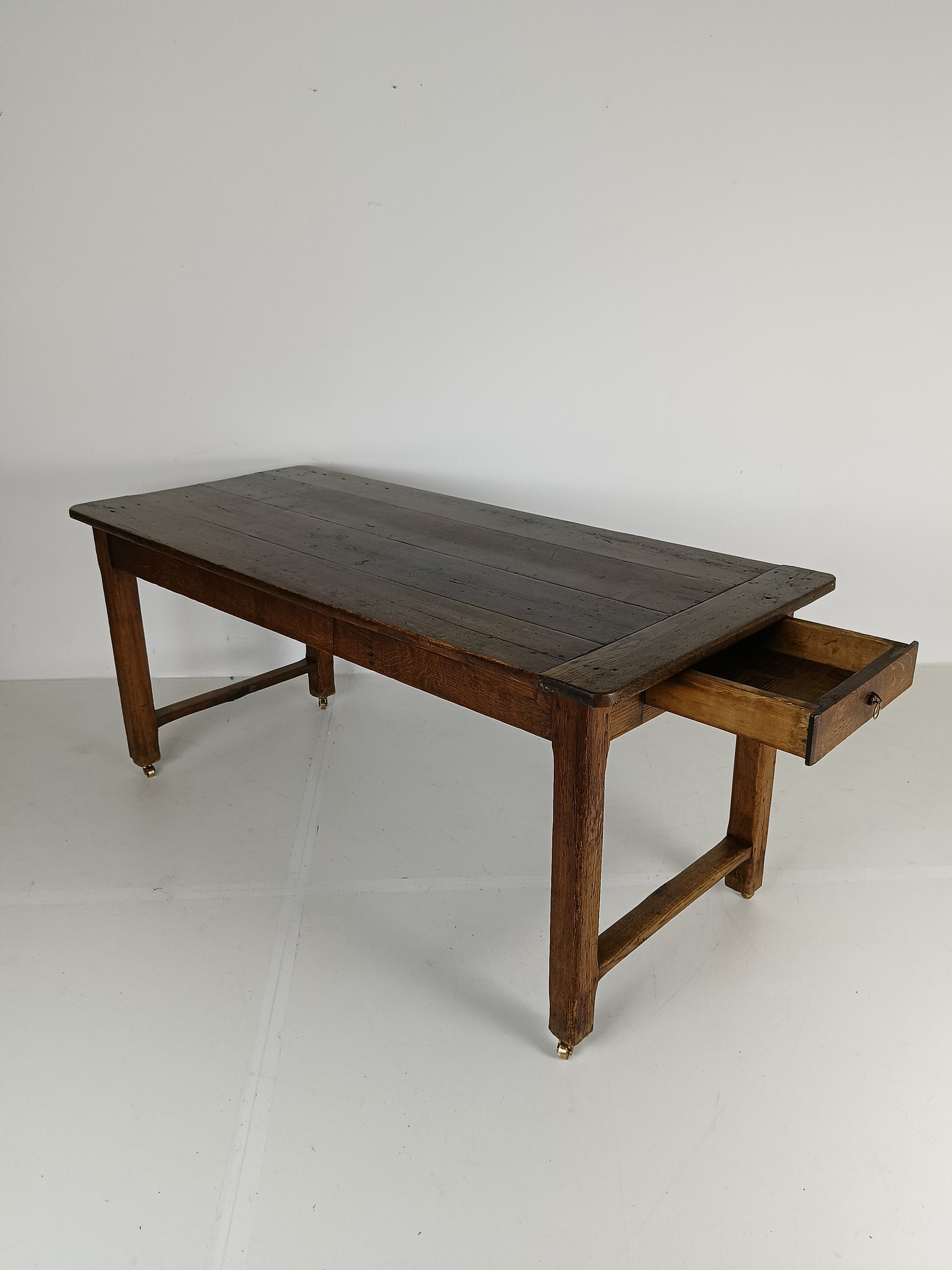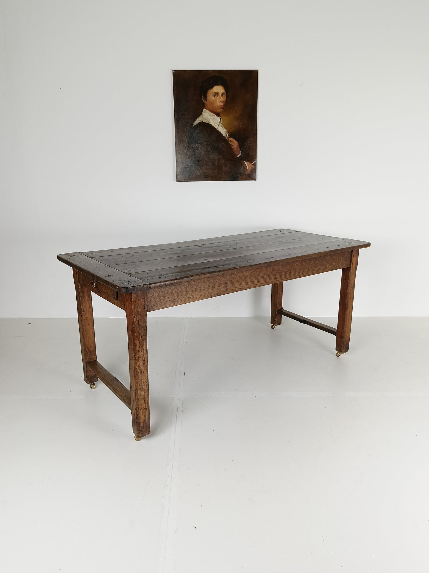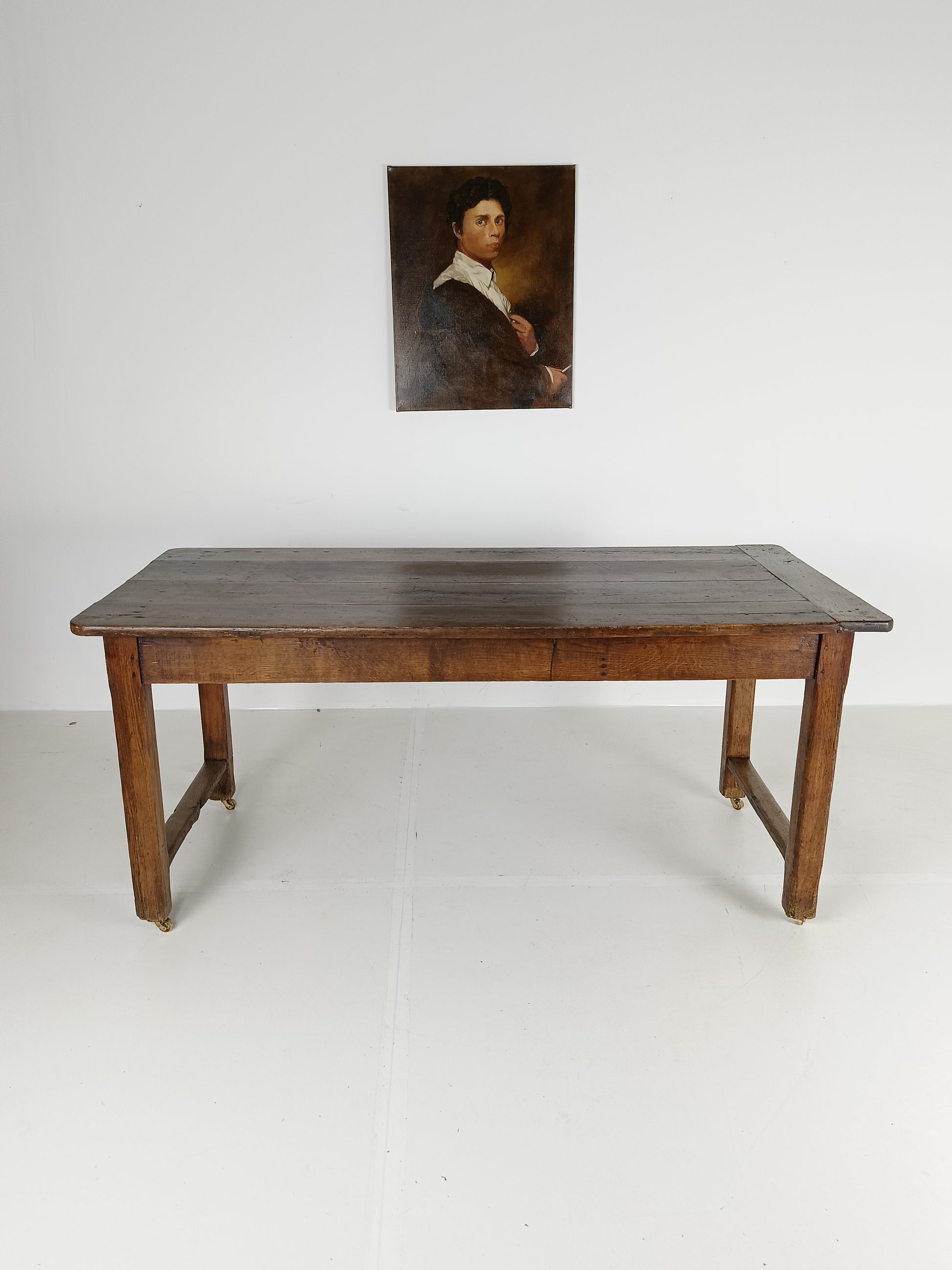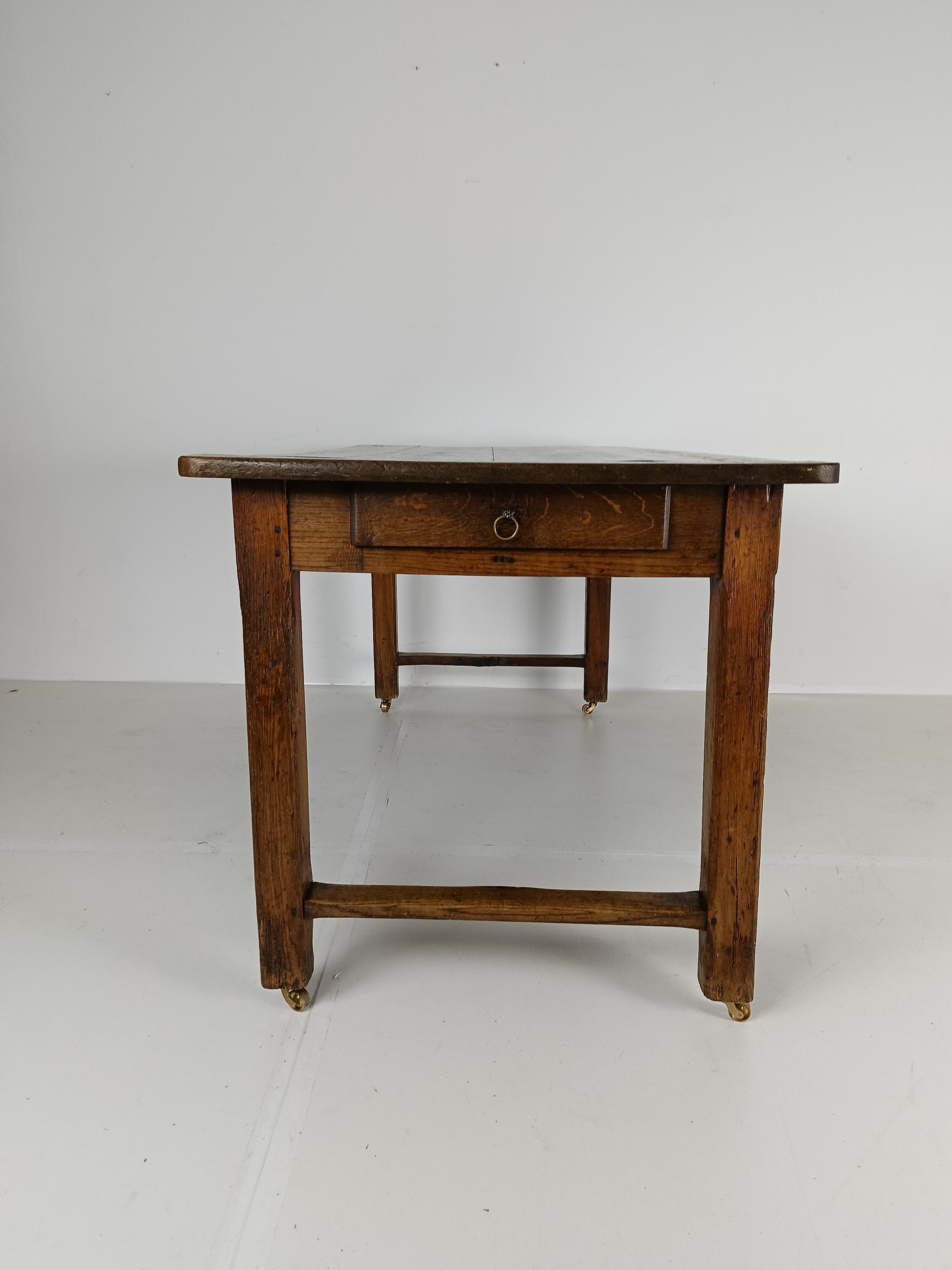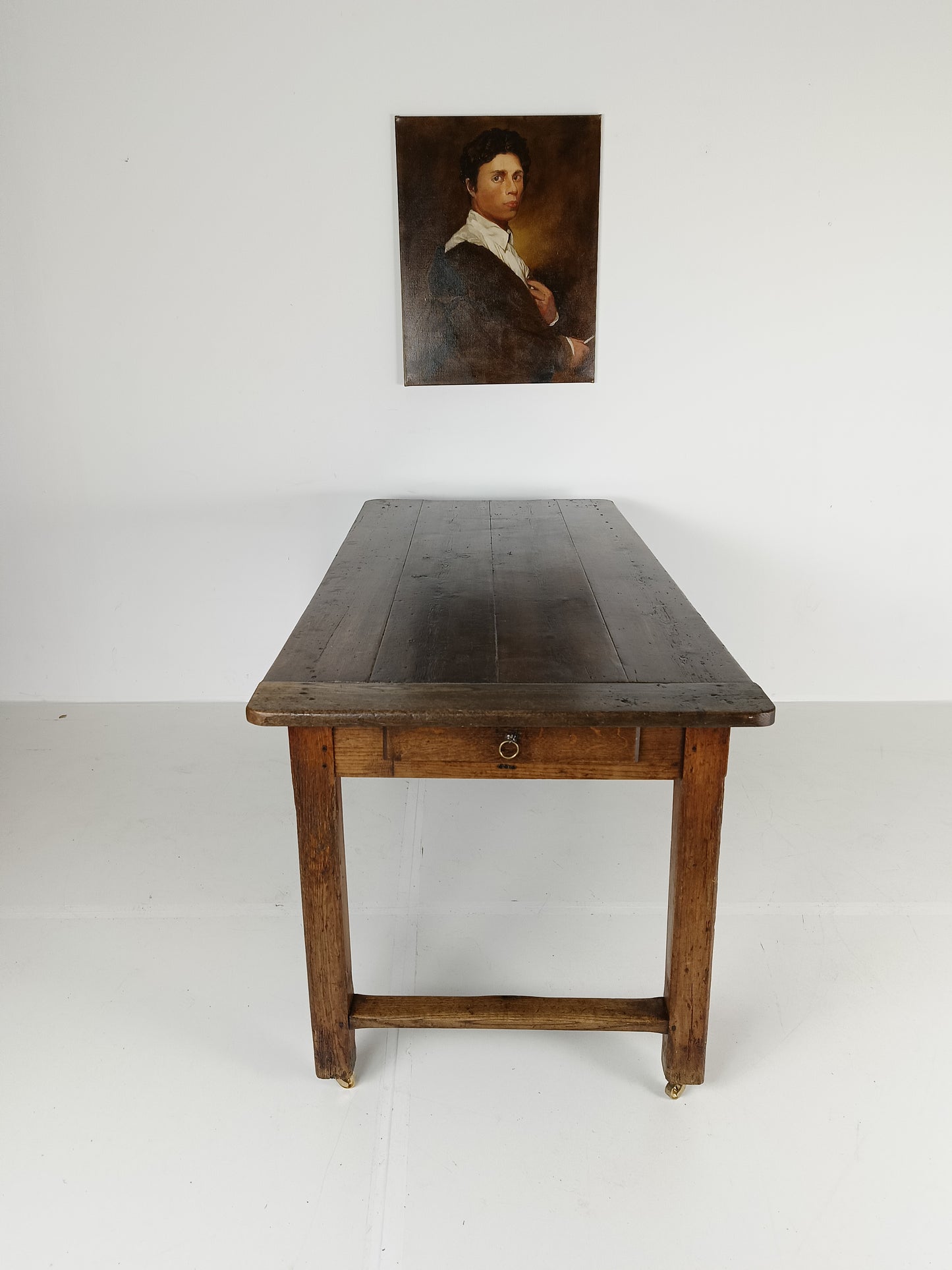 An amazing antique dining table, featuring a stunning patina that adds depth and character to its surface. This table showcases the quality of its craftsmanship and timeless design, making it a captivating centerpiece for any dining space. Its aged finish enhances its unique charm, creating a warm, inviting atmosphere that’s perfect for gatherings