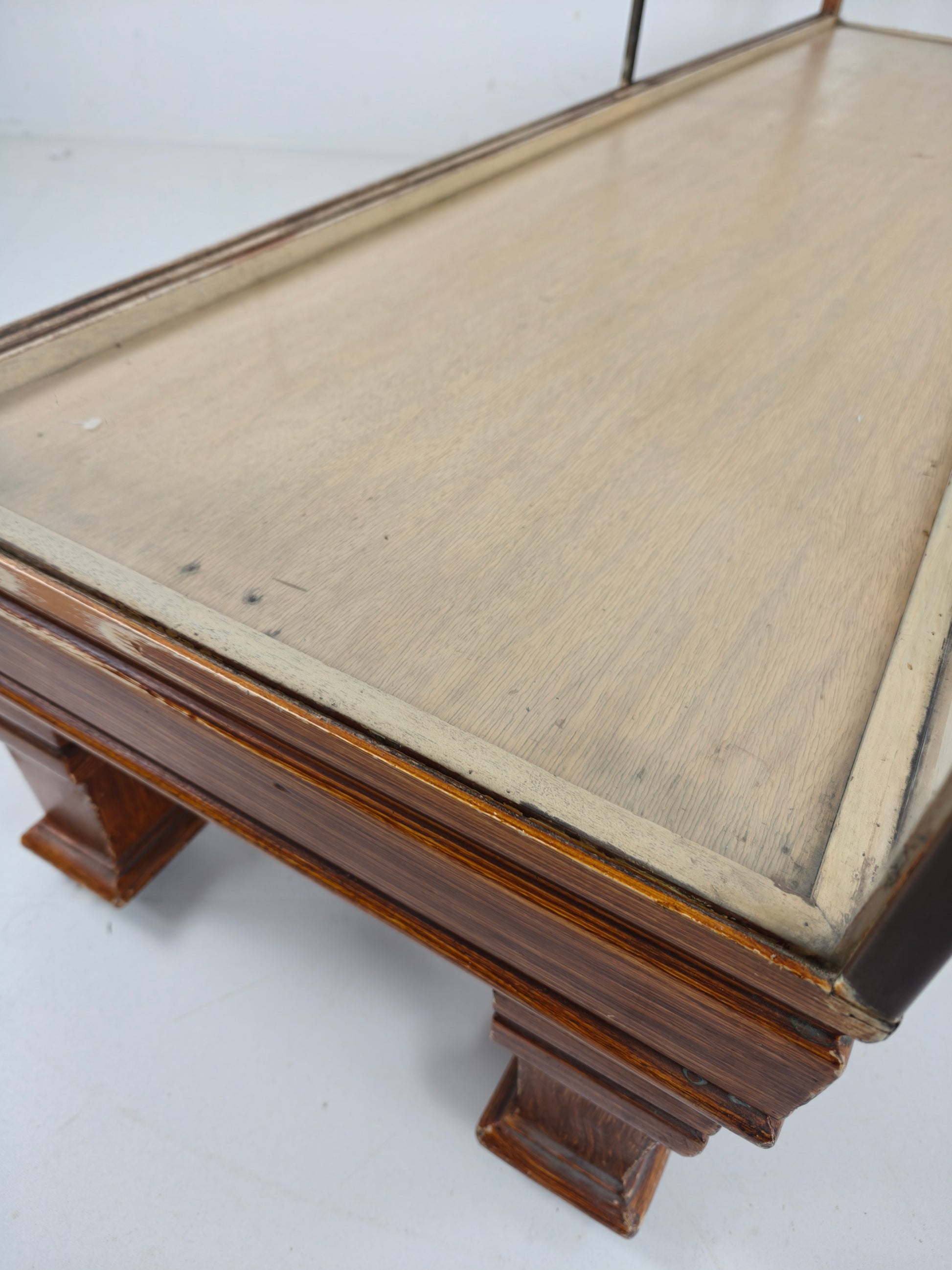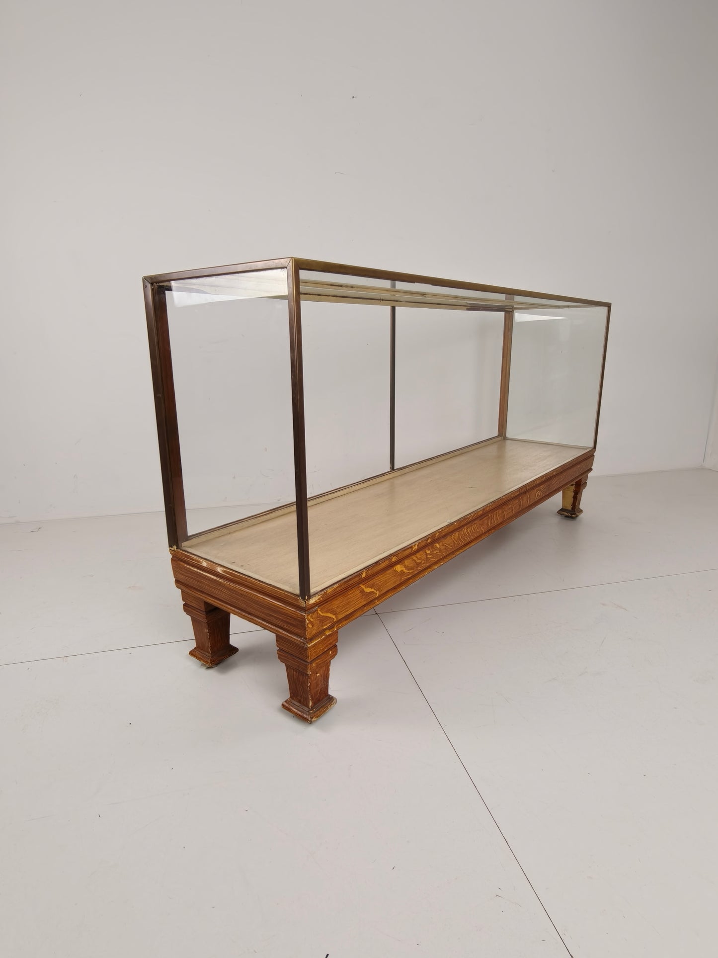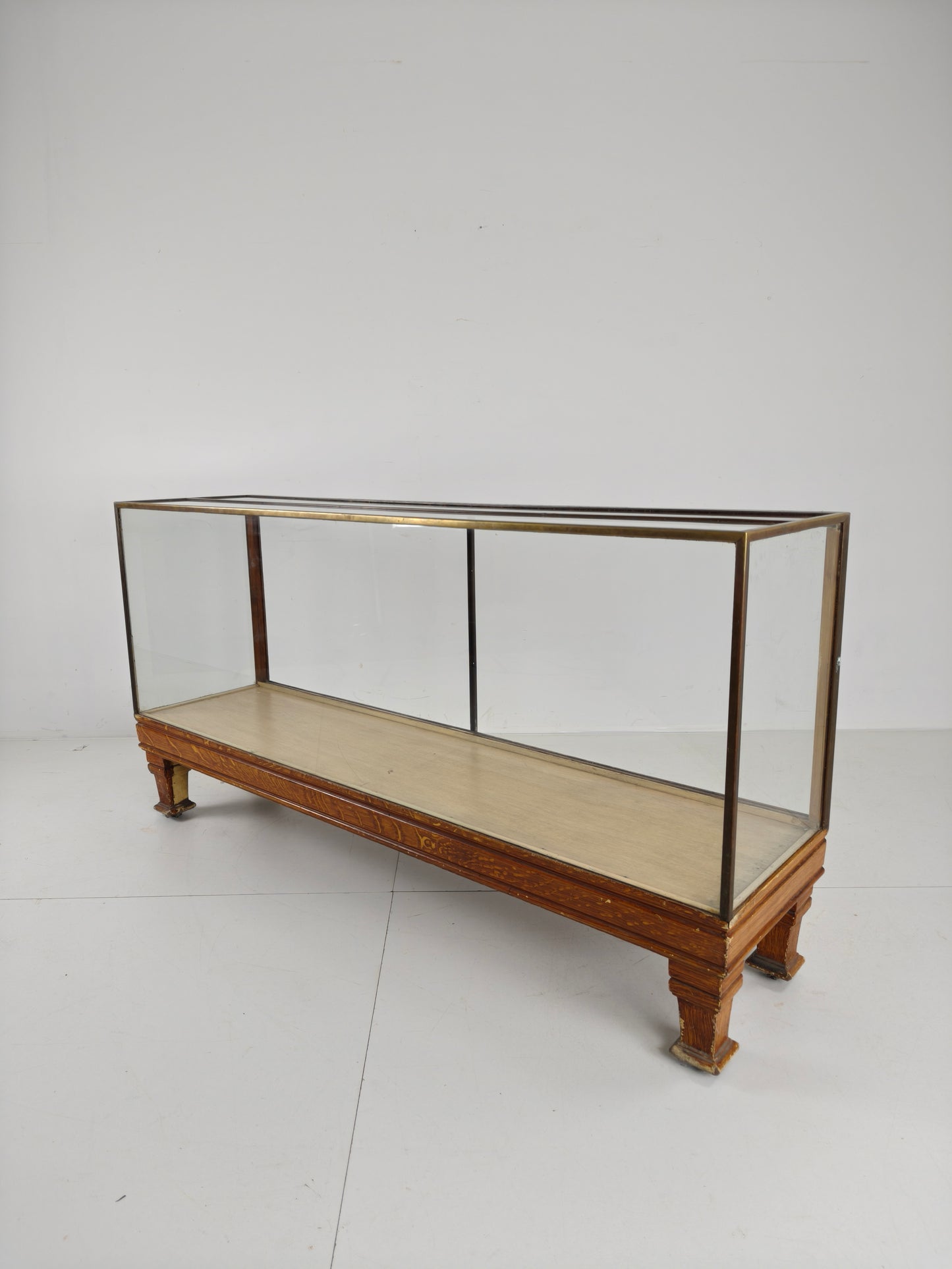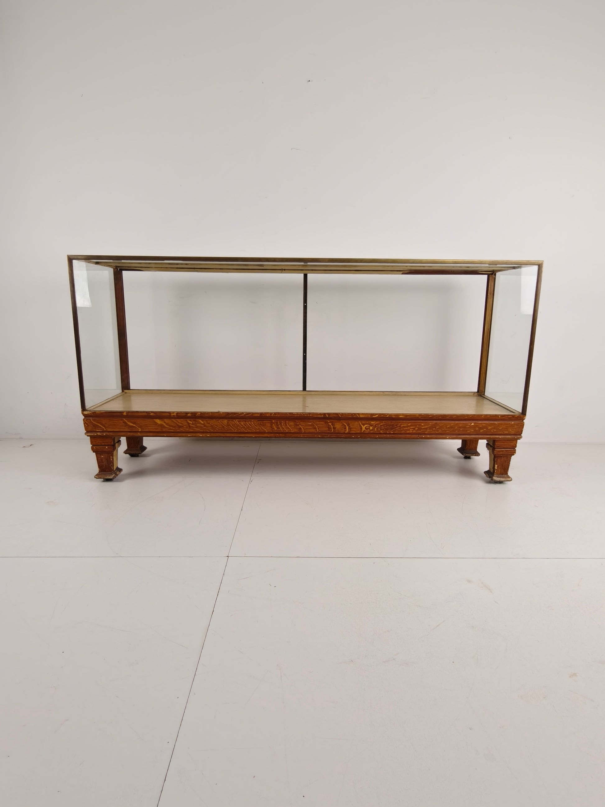 The counter is in antique condition, with some visible signs of wear and tear, as shown in the photos. Notably, it no longer has its original sliding doors, adding to its vintage character.