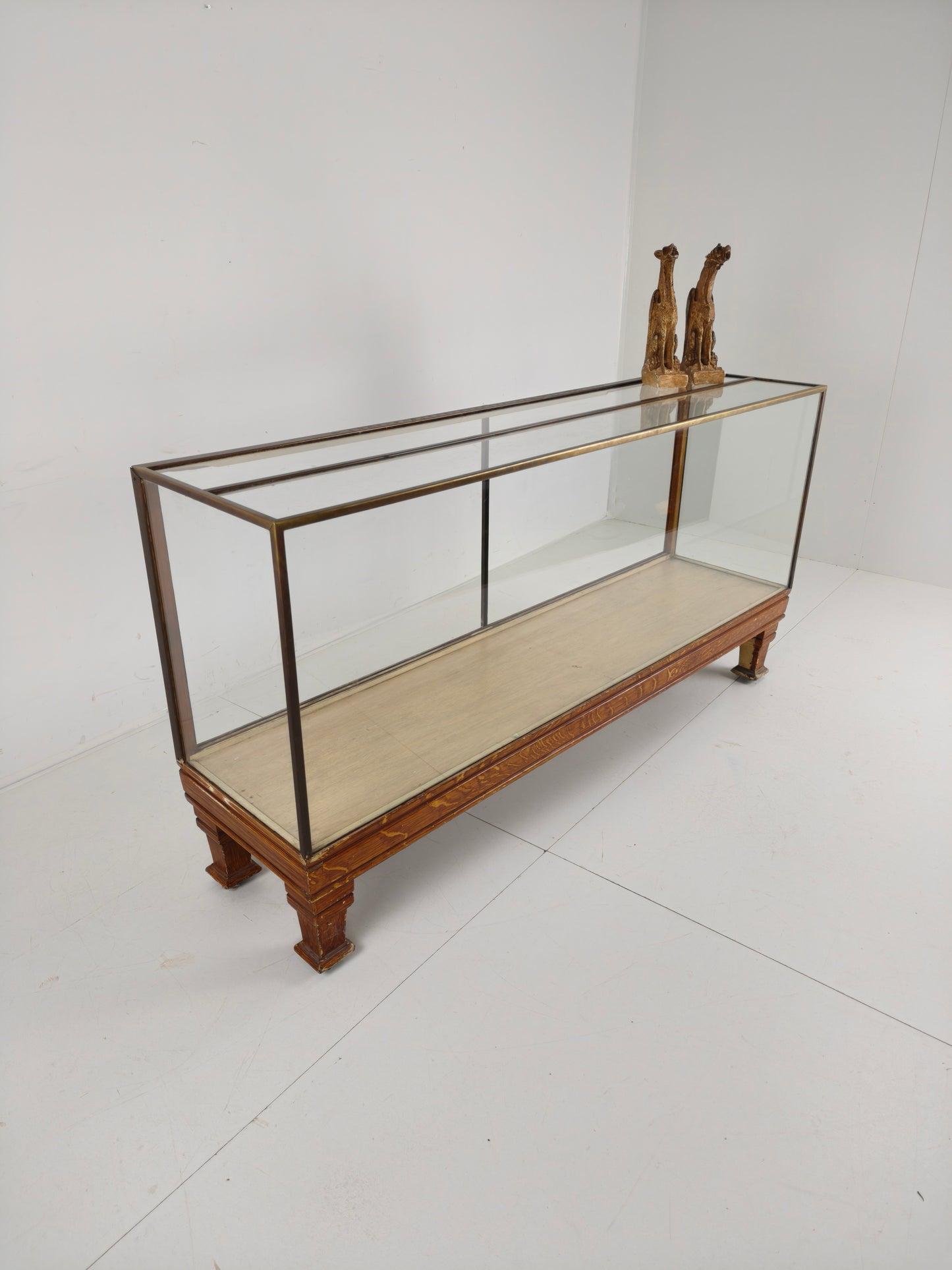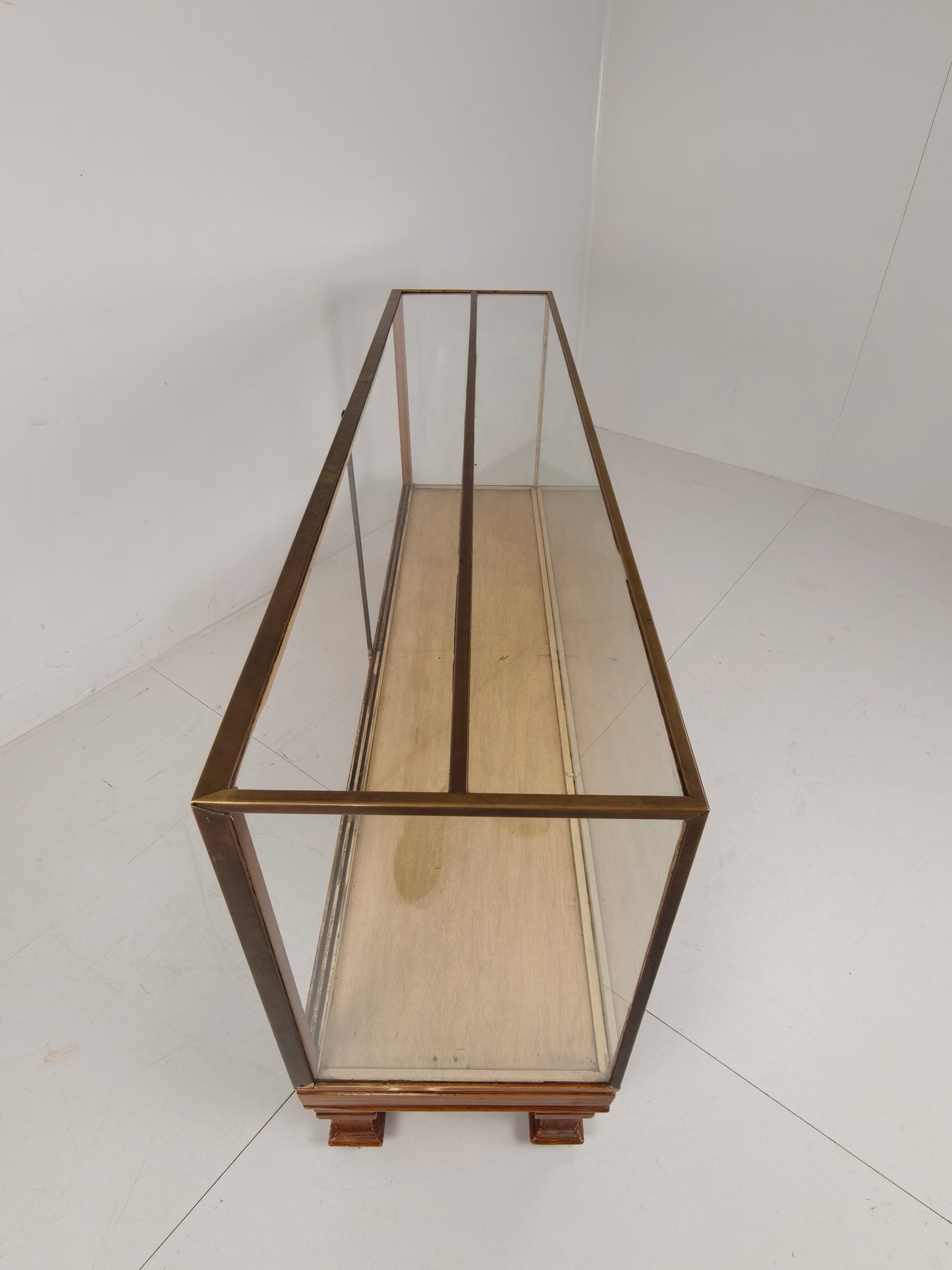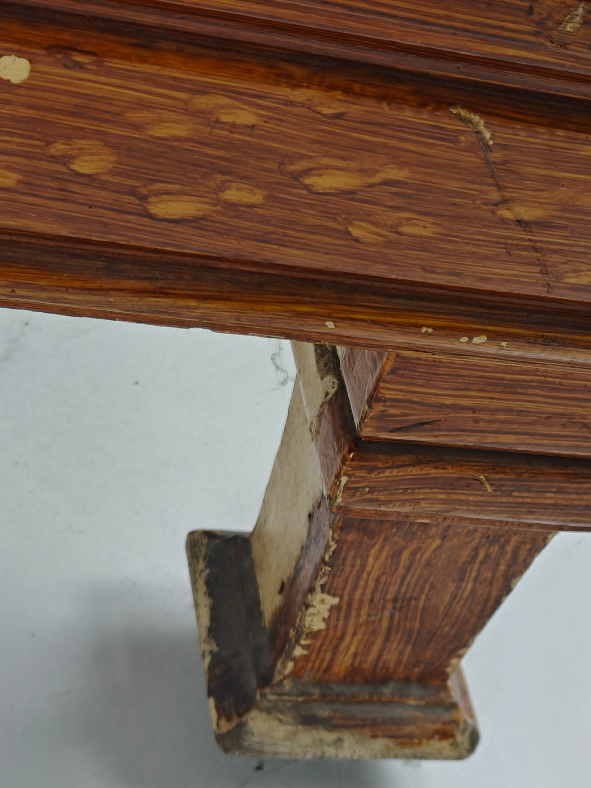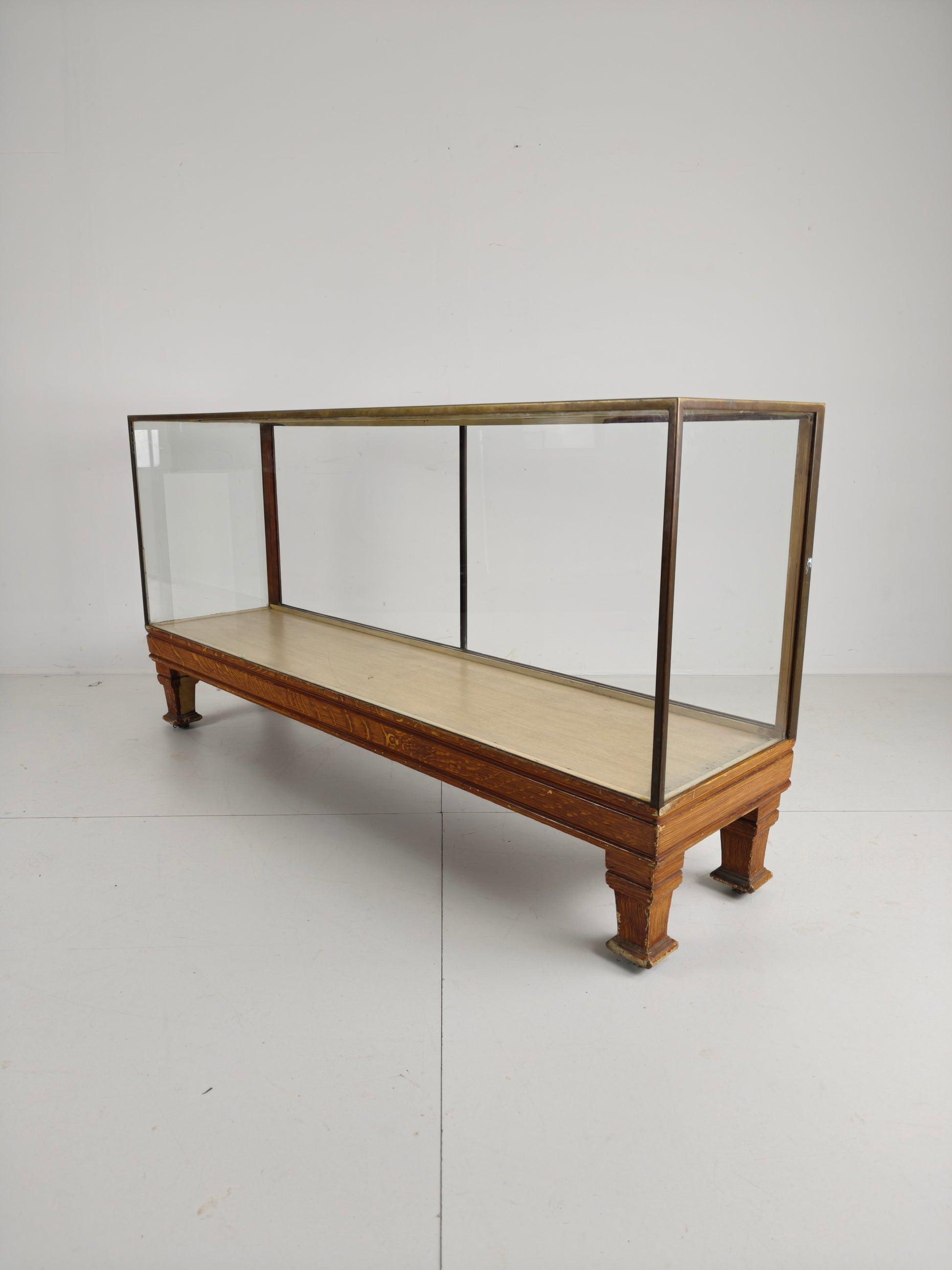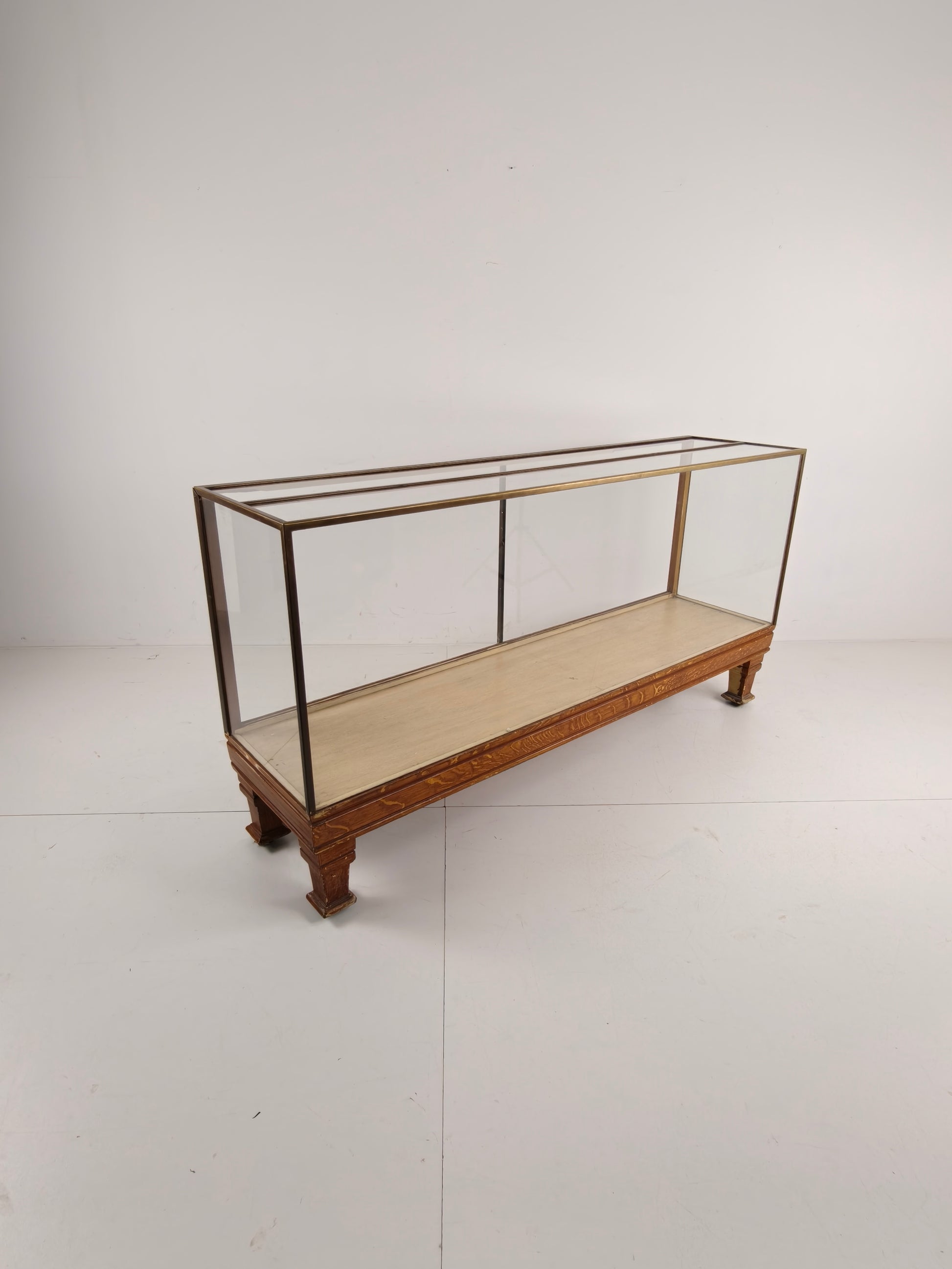 The counter is in antique condition, with some visible signs of wear and tear, as shown in the photos. Notably, it no longer has its original sliding doors, adding to its vintage character.