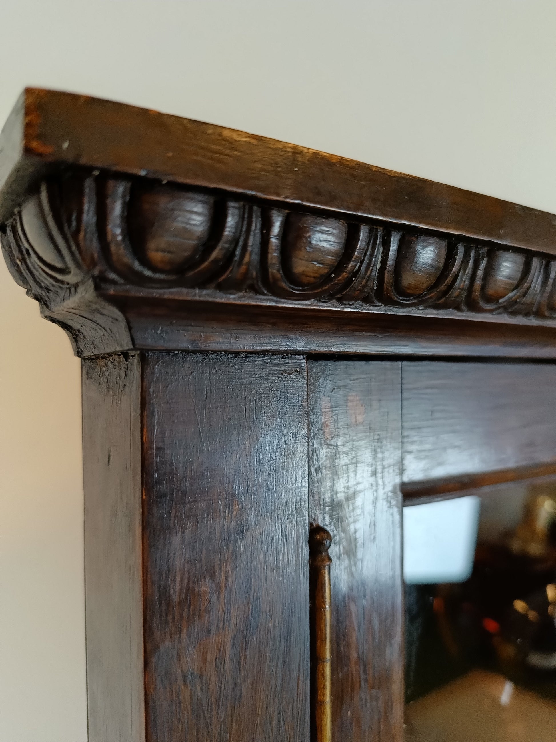 This antique English corner cabinet dates back to the early 1900s and is an example of traditional craftsmanship!