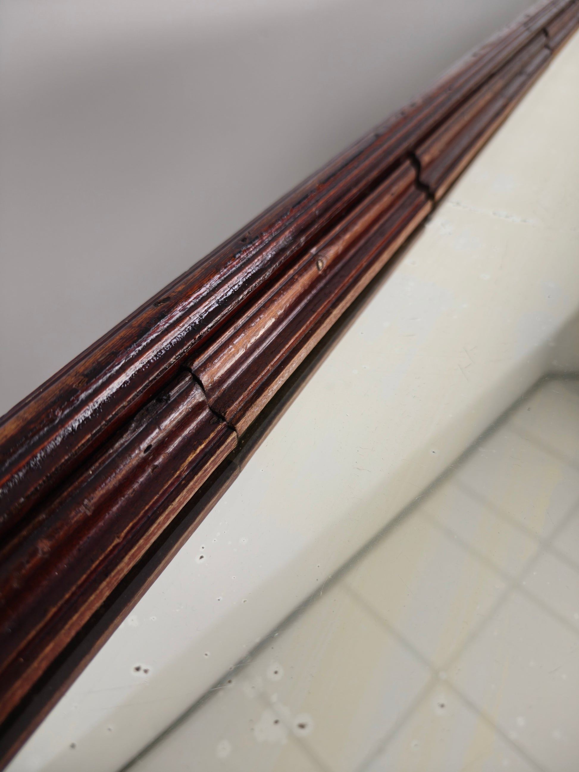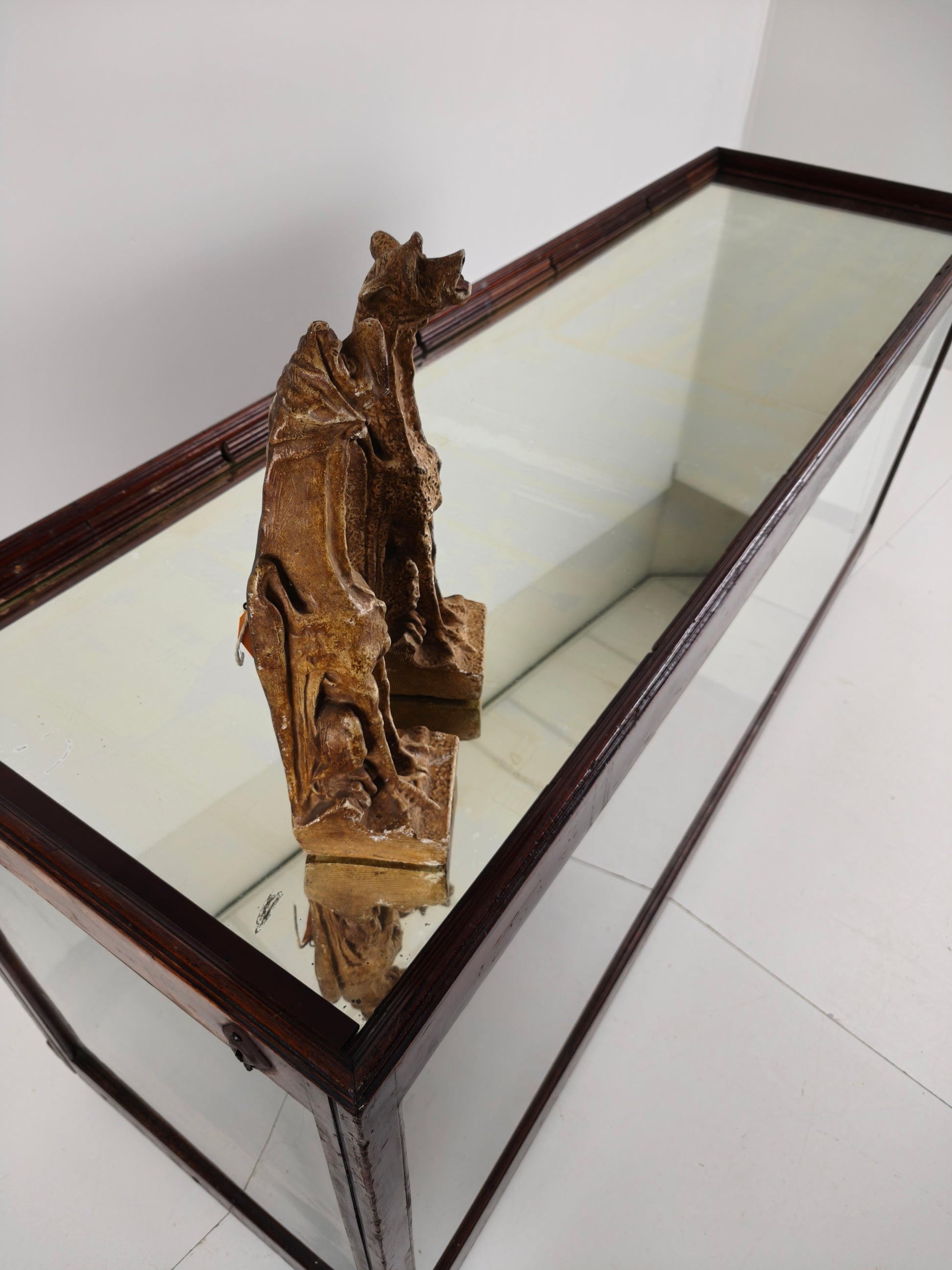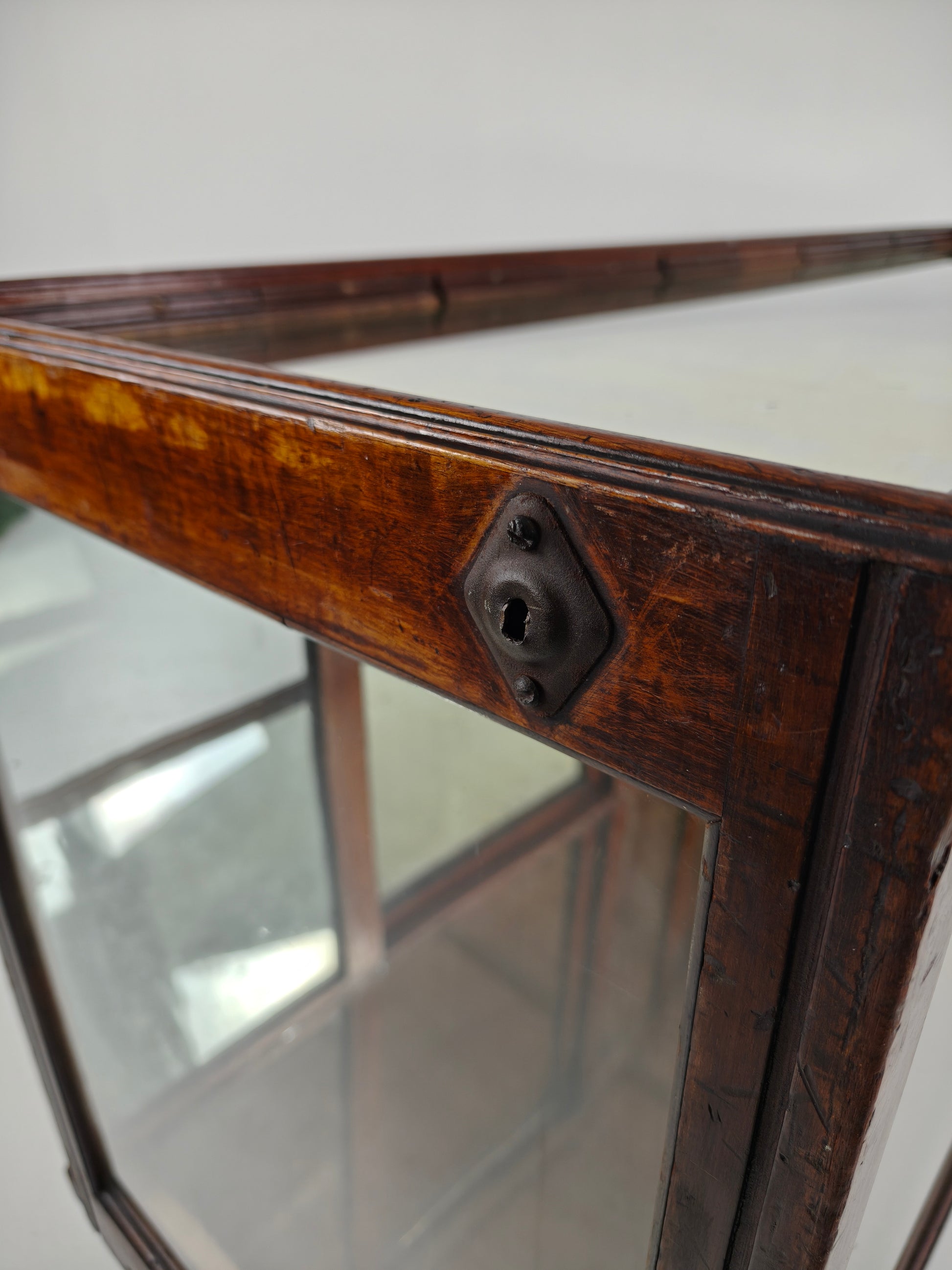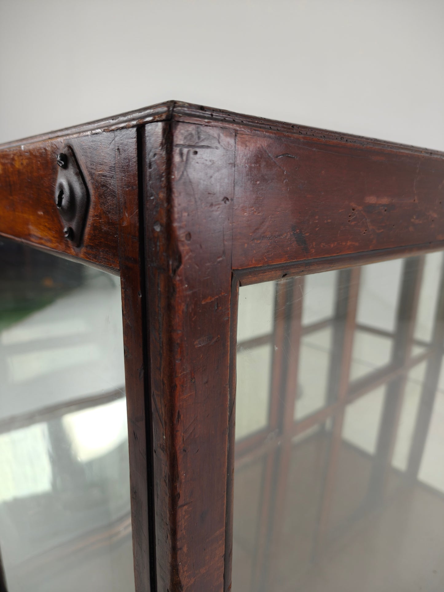 This beautiful antique English shop counter, dating from around 1920, offers a unique combination of elegance and authenticity. It features original antique mirror glass on the top section, and the back and base show lovely natural wear from age.
