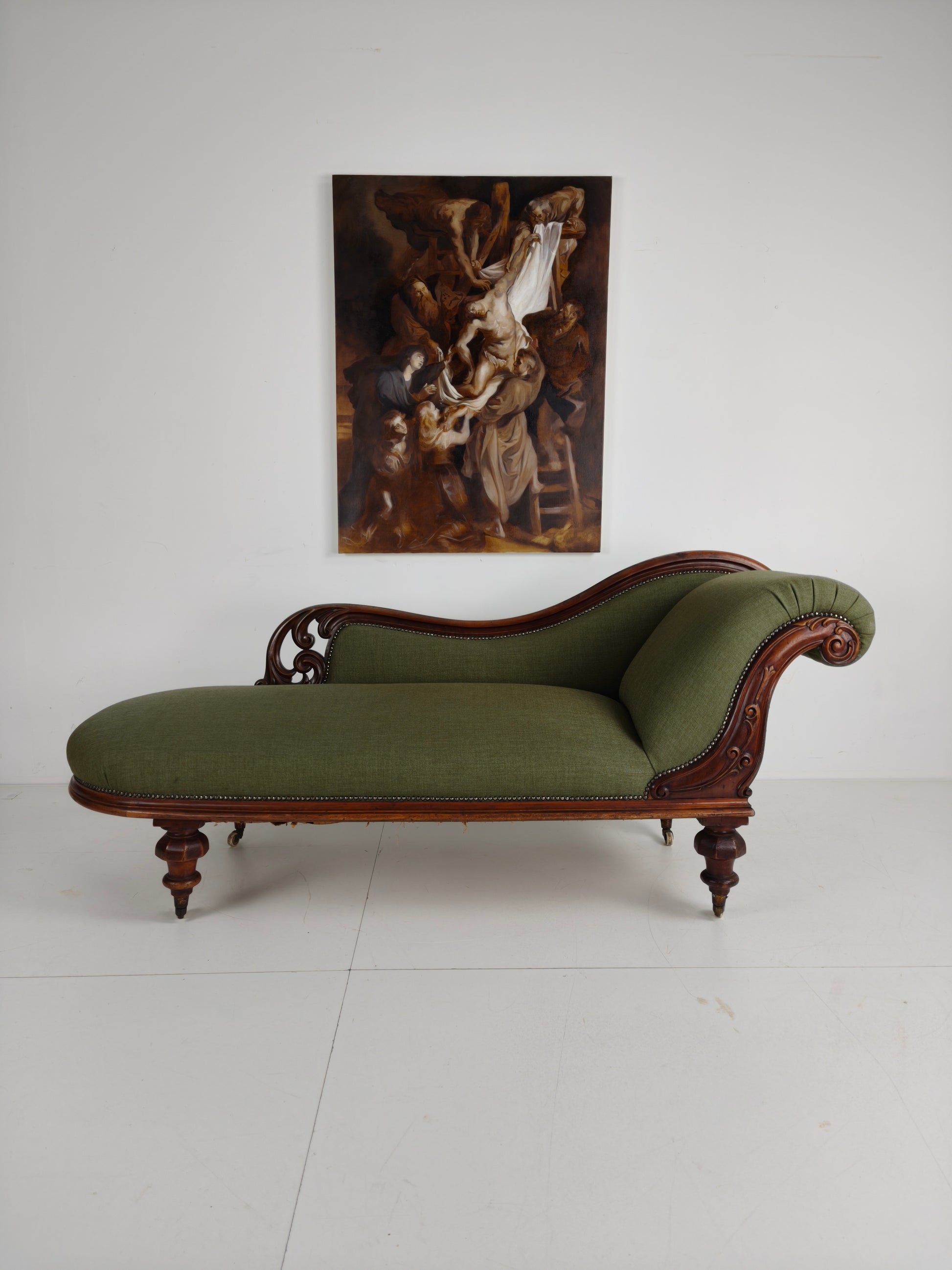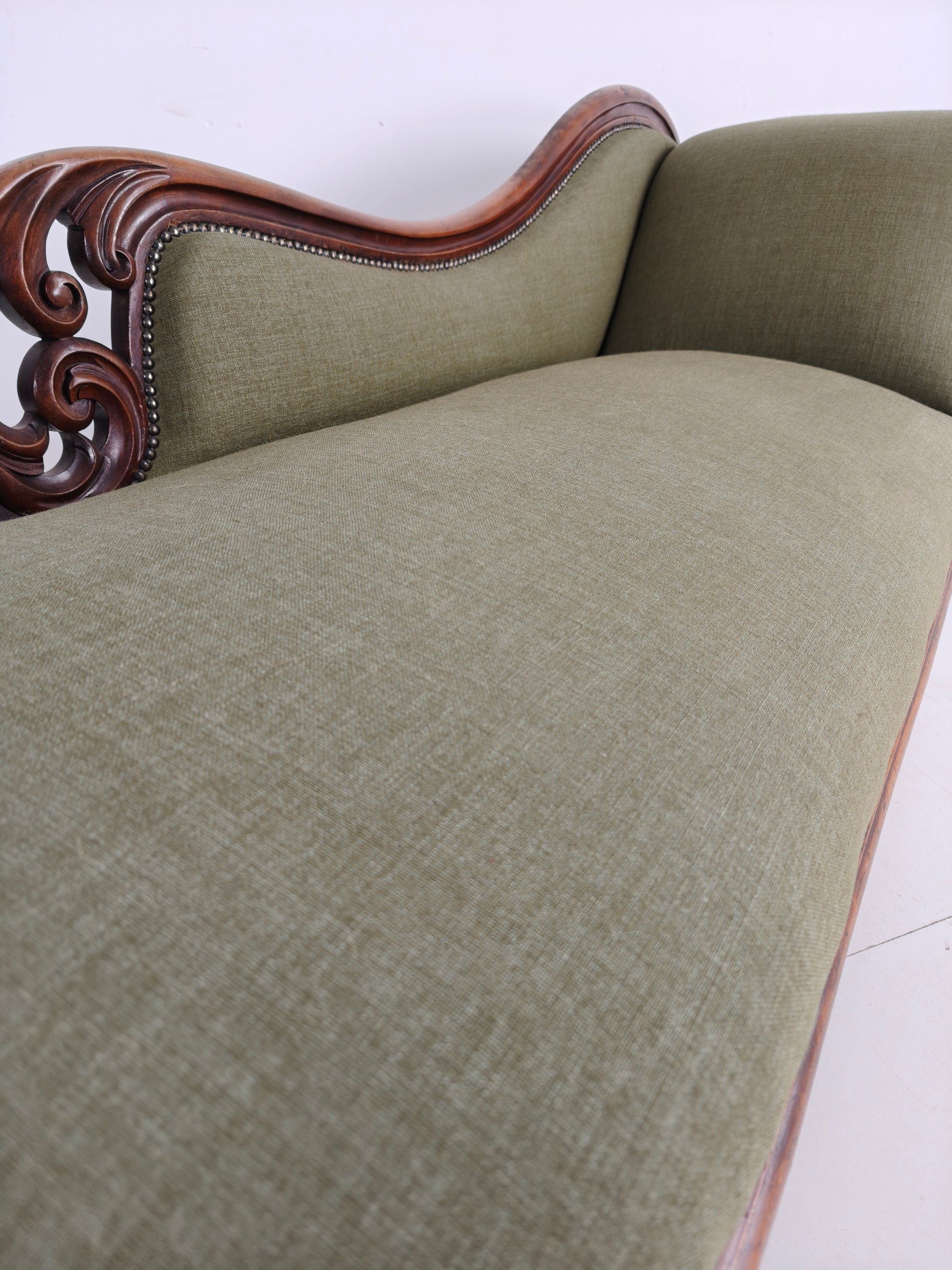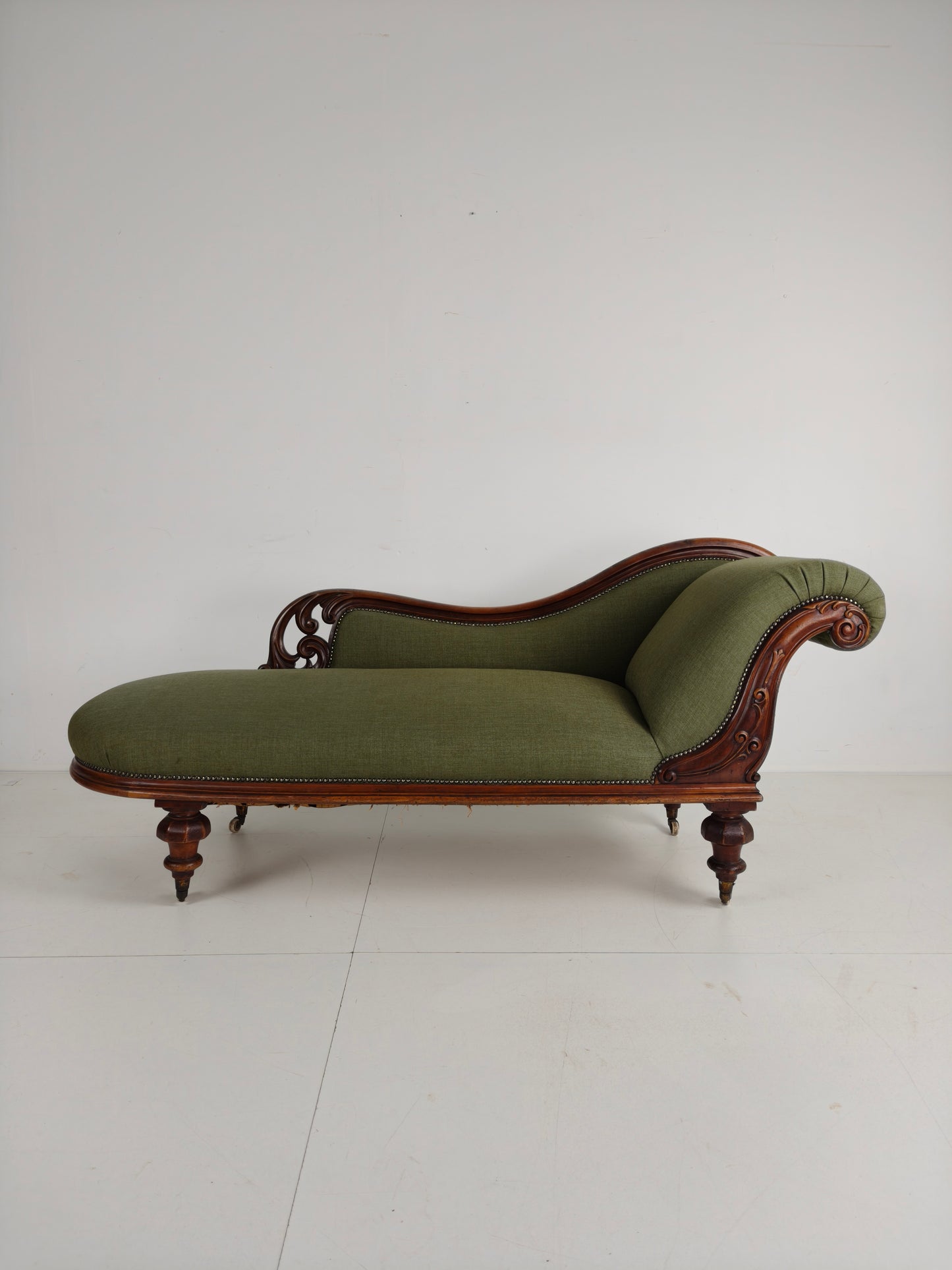 Antique English Victorian Chaise Lounge - Made of Mahogany, Beautifully Upholstered