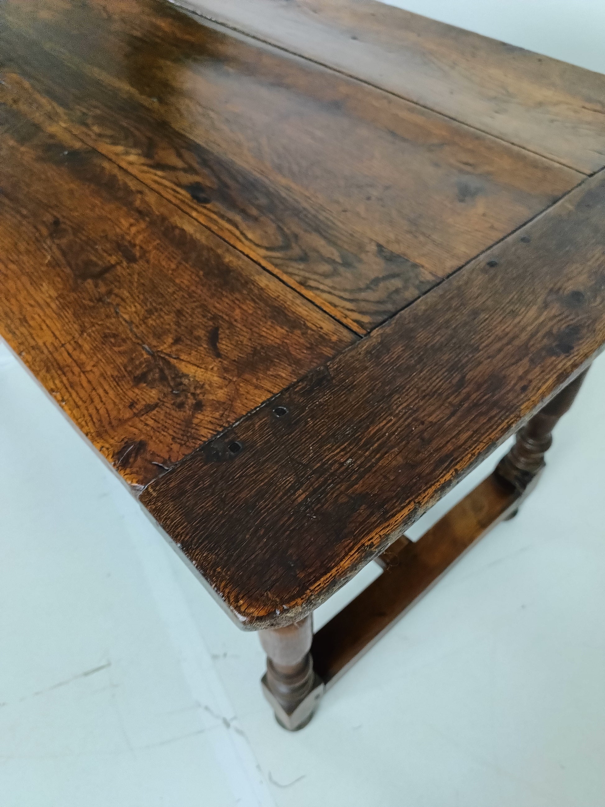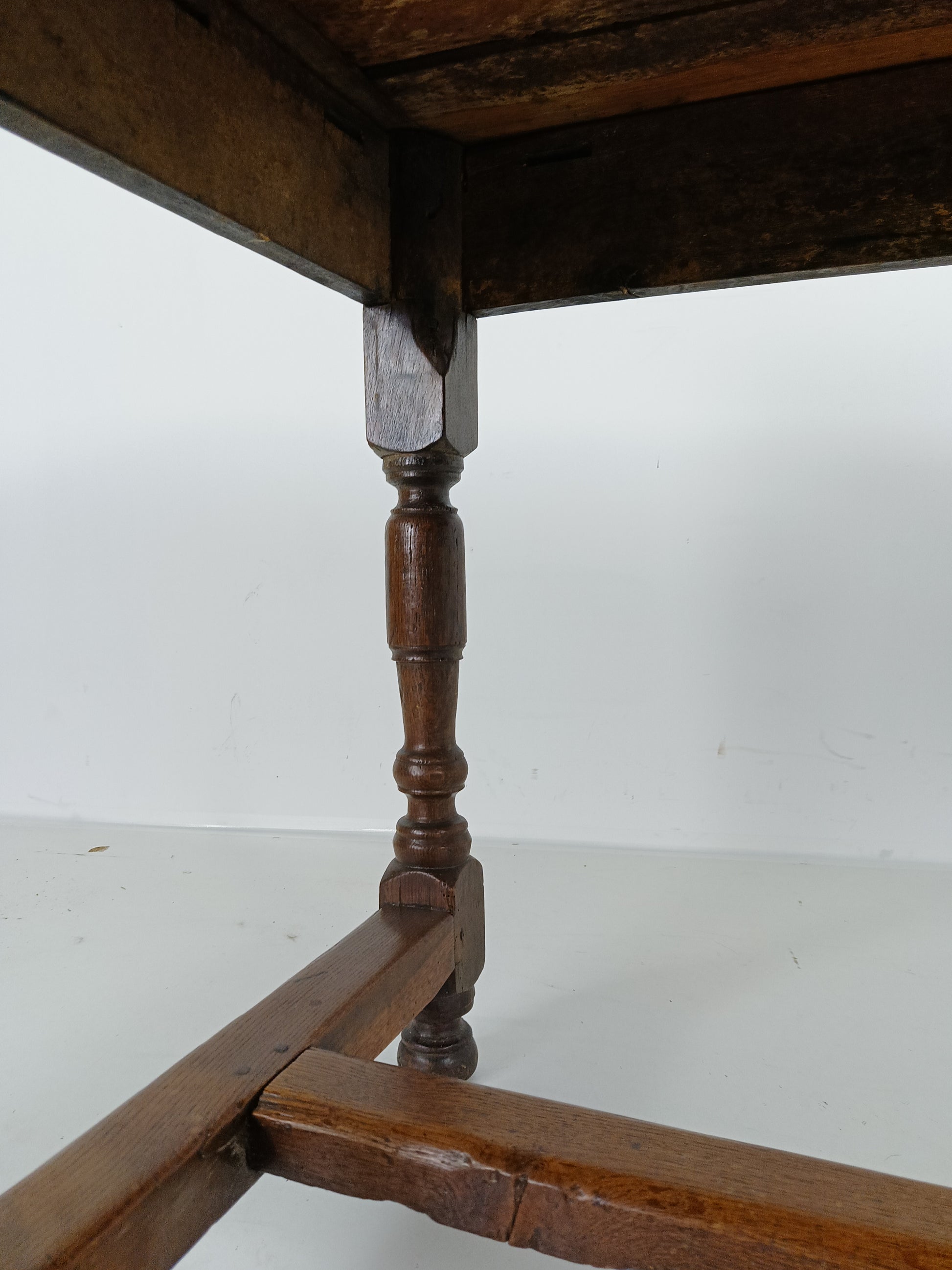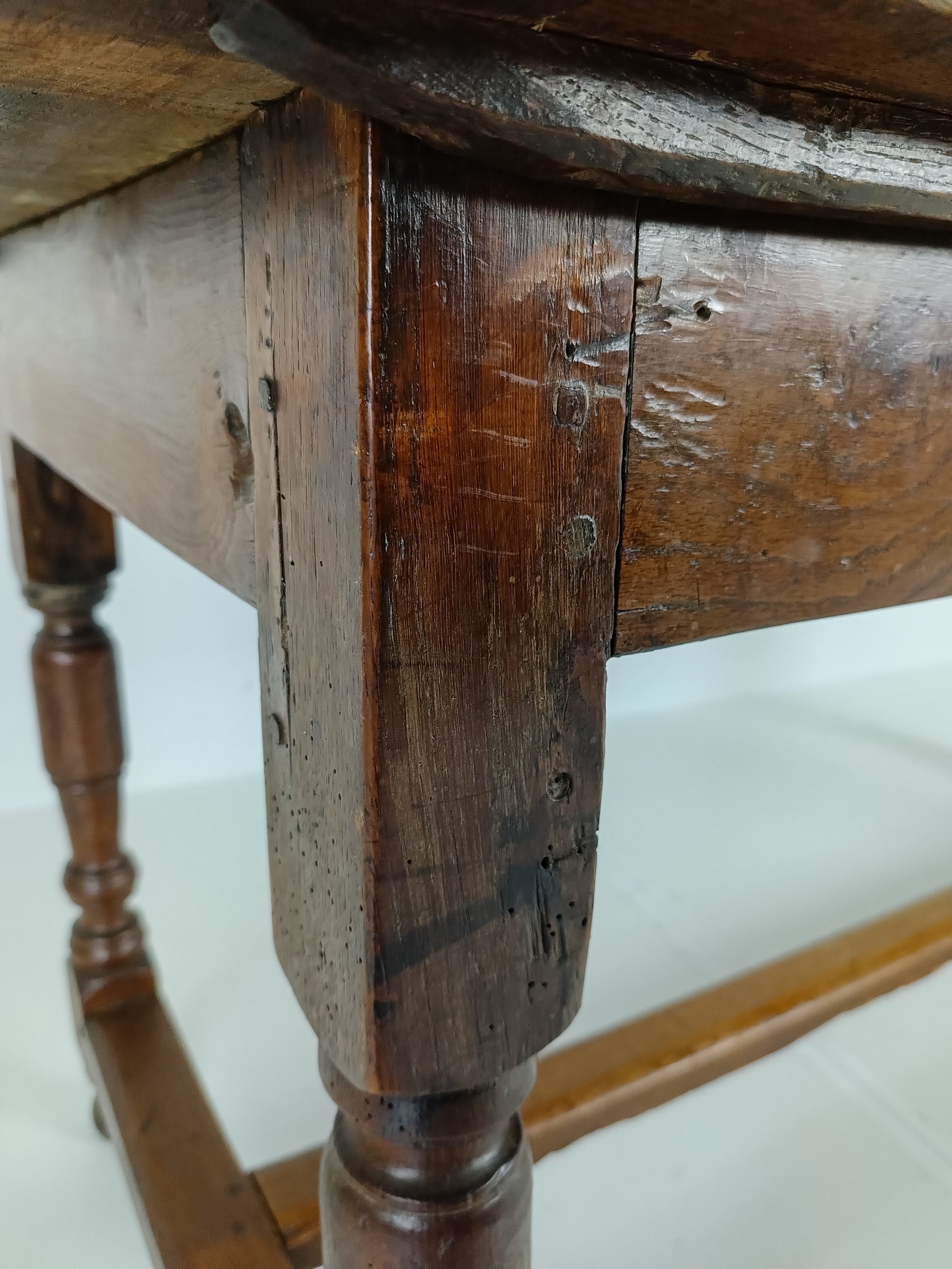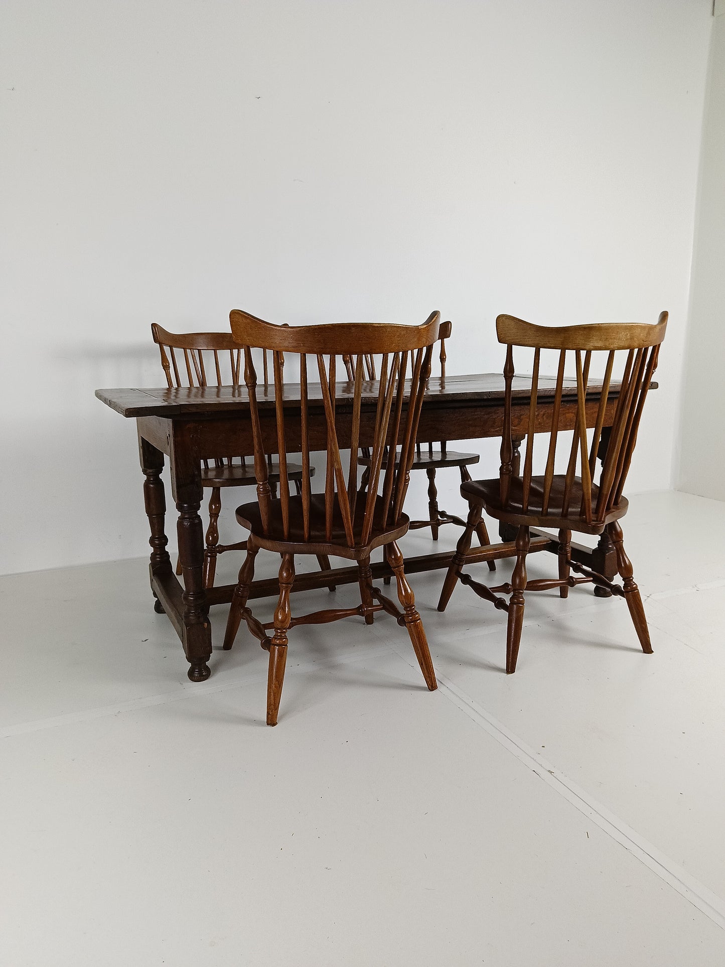 A early 19th century antique French dining table is a beautiful example of craftsmanship. Made from durable oak, Stand on barley legs aesthetic appeal, and connection to the past. Has signs of wear consistant with age and use.