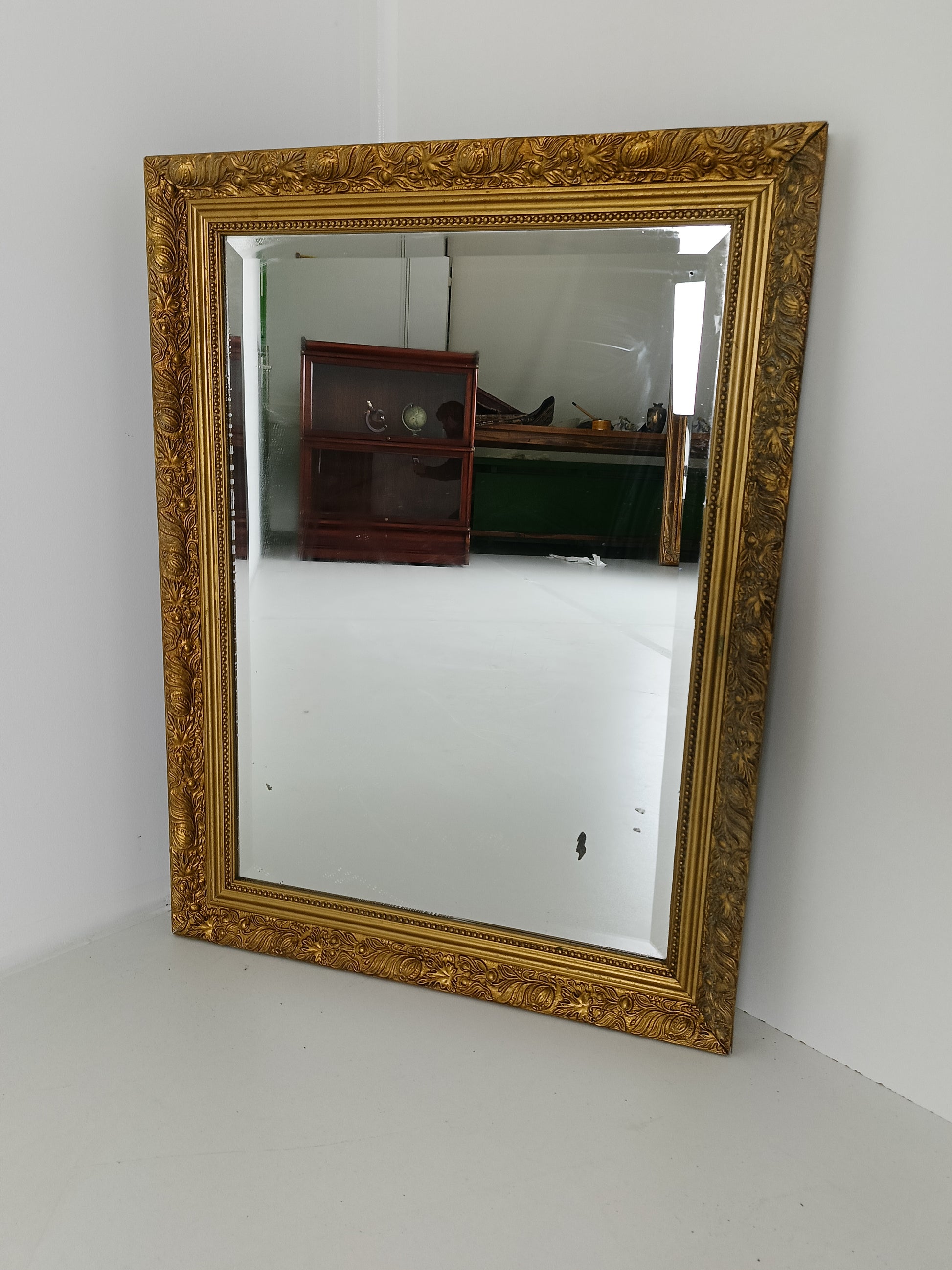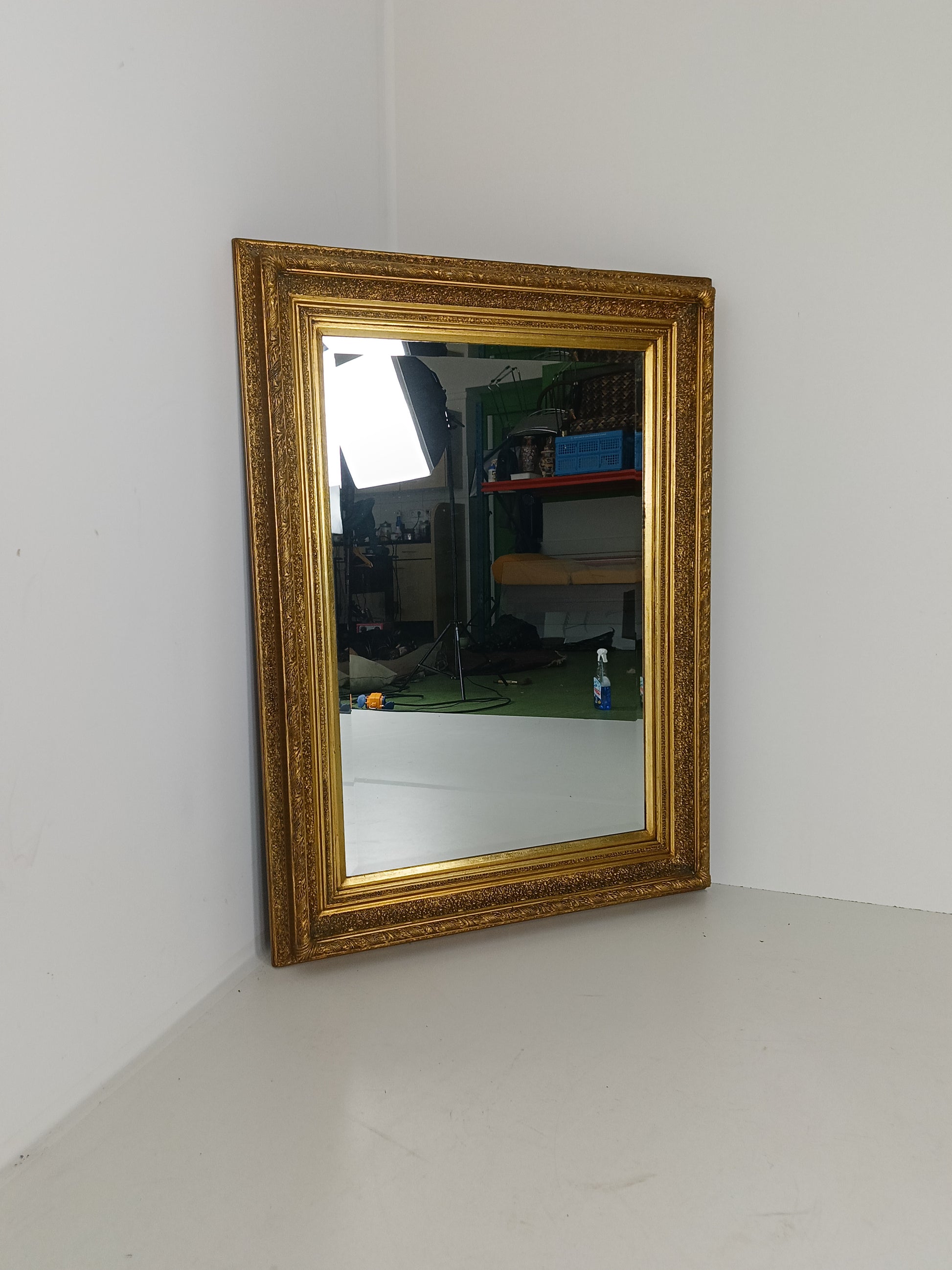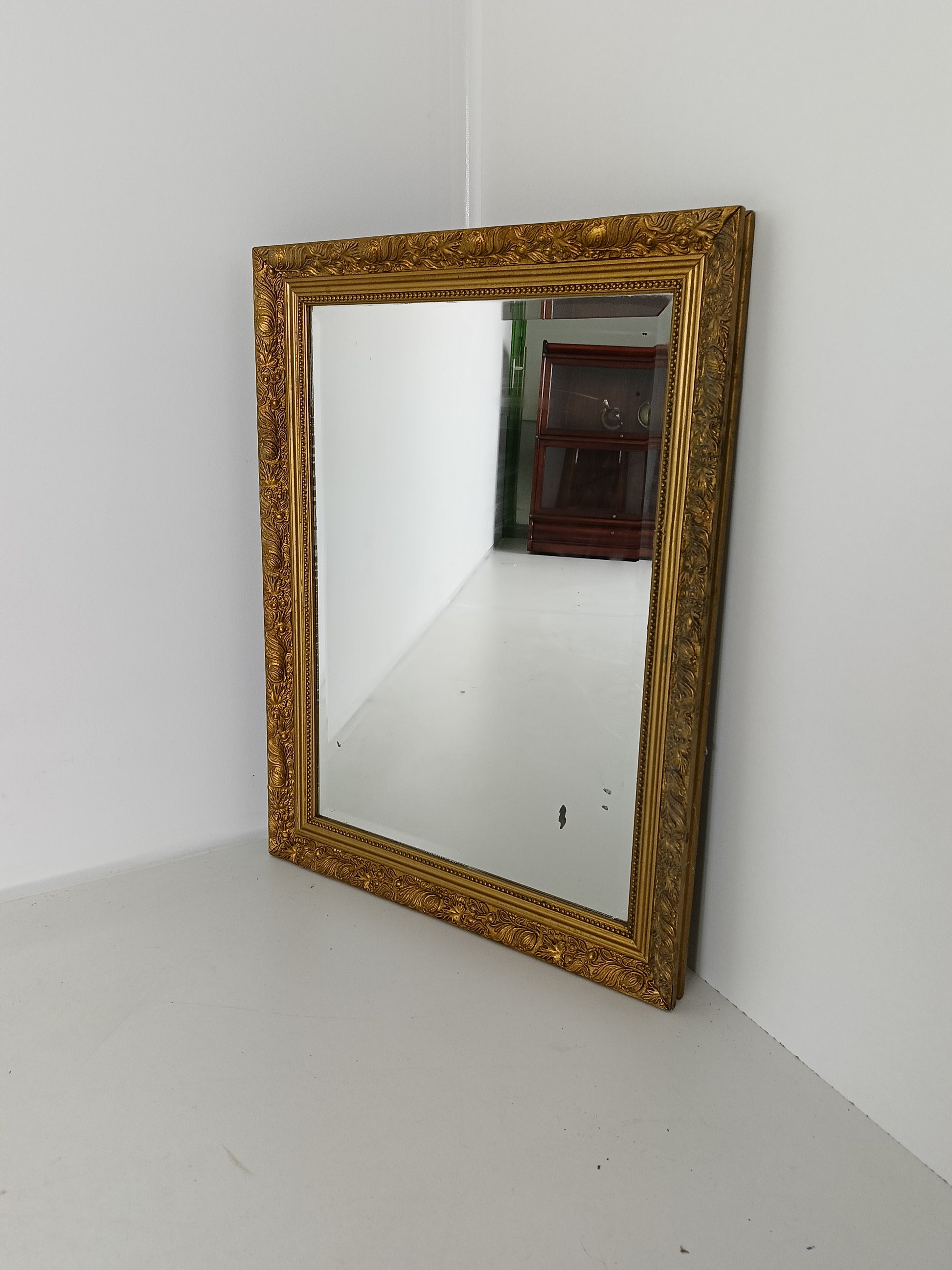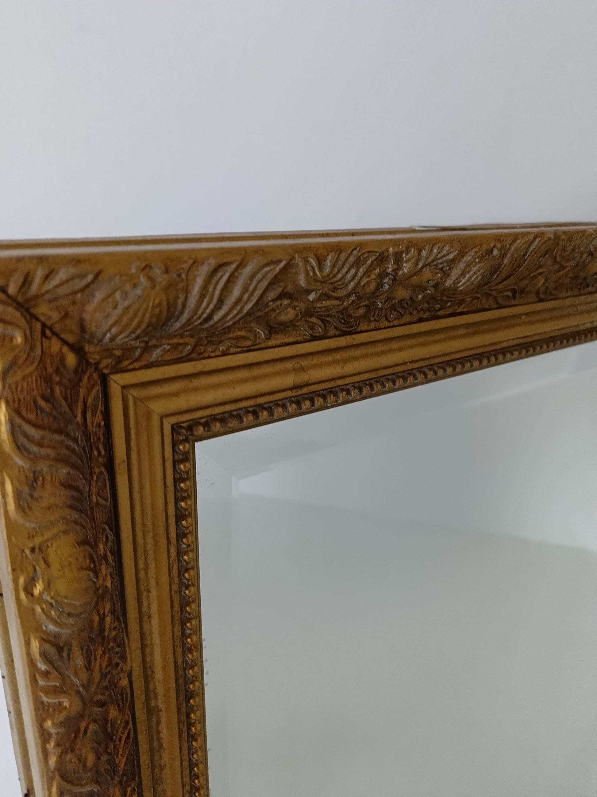 This french mirror radiates timeless elegance with its intricately crafted frame and beautifully aged patina. Its vintage charm and reflective surface make it a striking centerpiece, perfect for adding character and sophistication to any space. Has signs of wear consistant with age and use.