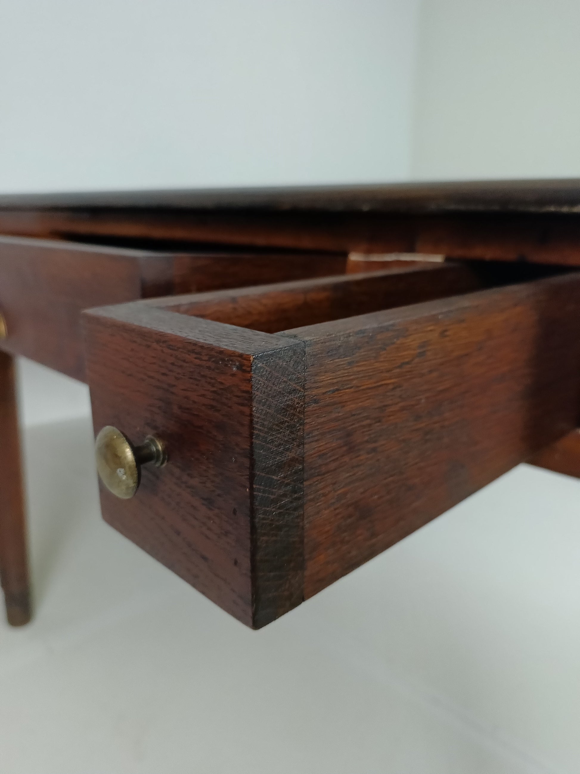 The larger drawers were intended for paperwork, making this table both functional and historically significant. It features a total of 8 drawers and stands on six sturdy legs, showcasing timeless craftsmanship and durability.