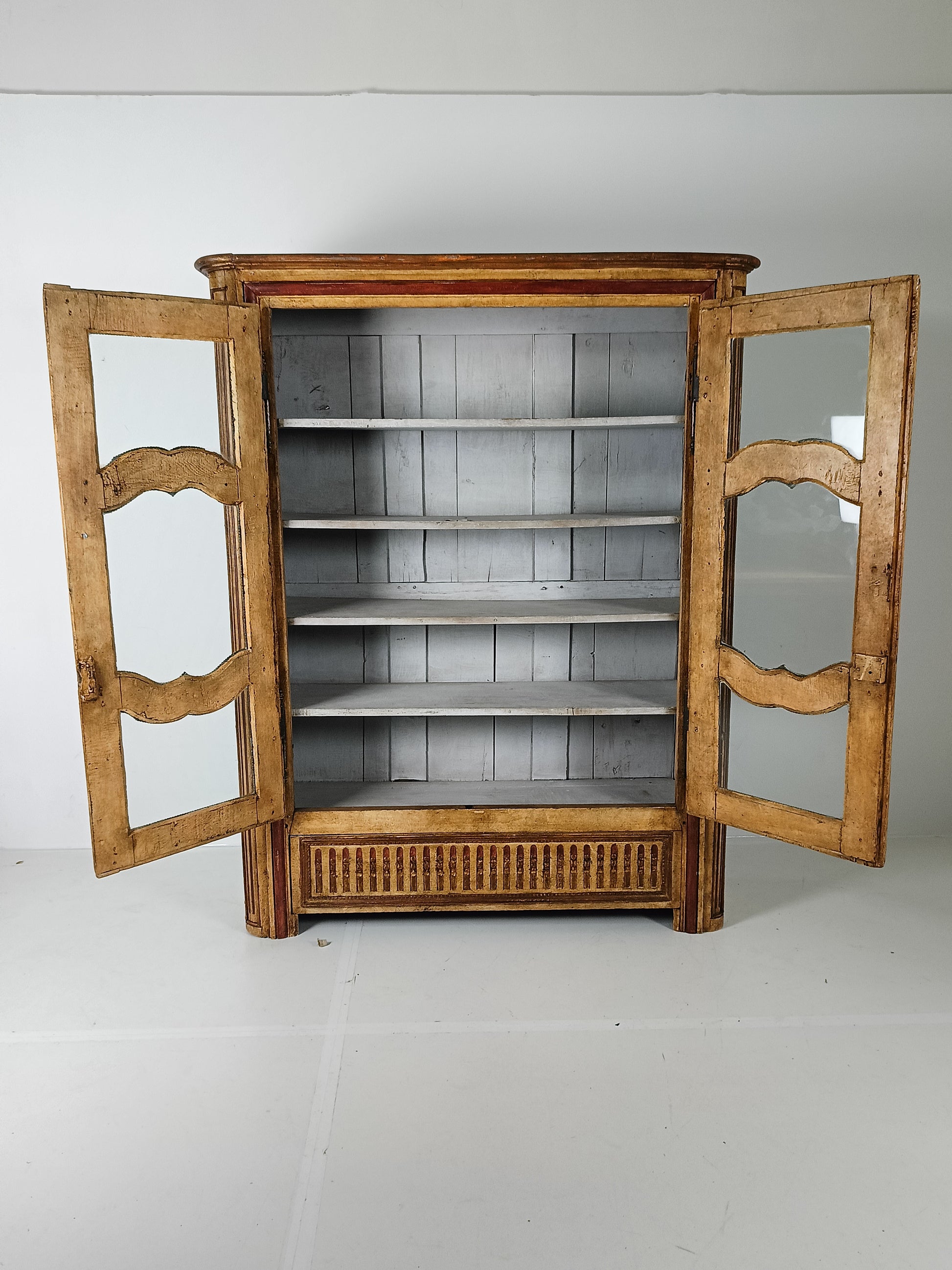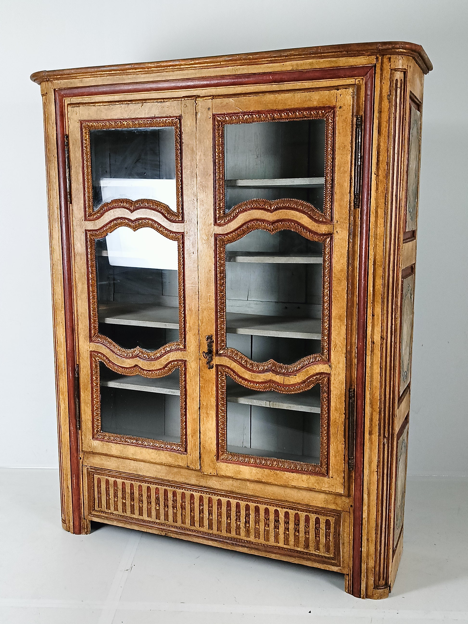 This exquisite antique painted display cabinet showcases timeless craftsmanship and delicate artistry. Featuring intricately detailed floral motifs, the cabinet's weathered wood and soft, faded colors enhance its vintage charm. Perfect for showcasing cherished heirlooms or treasured collectibles, its elegant design blends classic beauty with functional display space, making it a captivating addition to any room. The sides show different detailed chinoiserie painted panels. Contains labels featured in pictures.