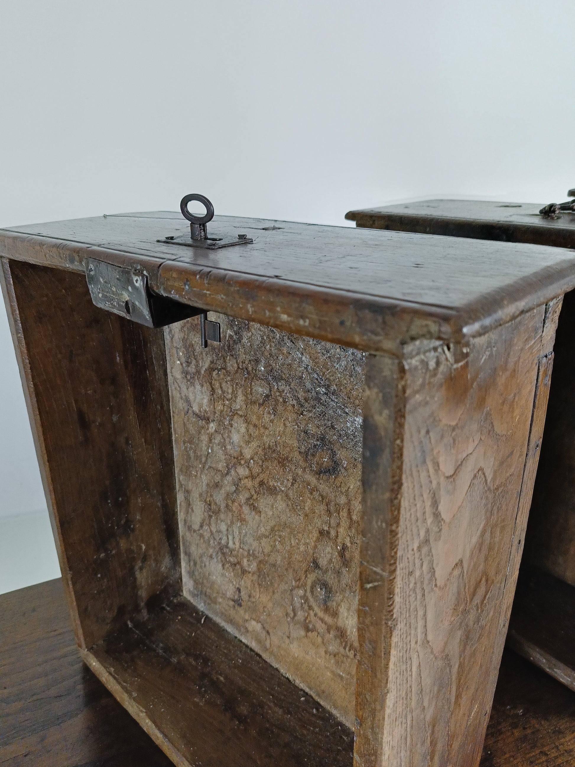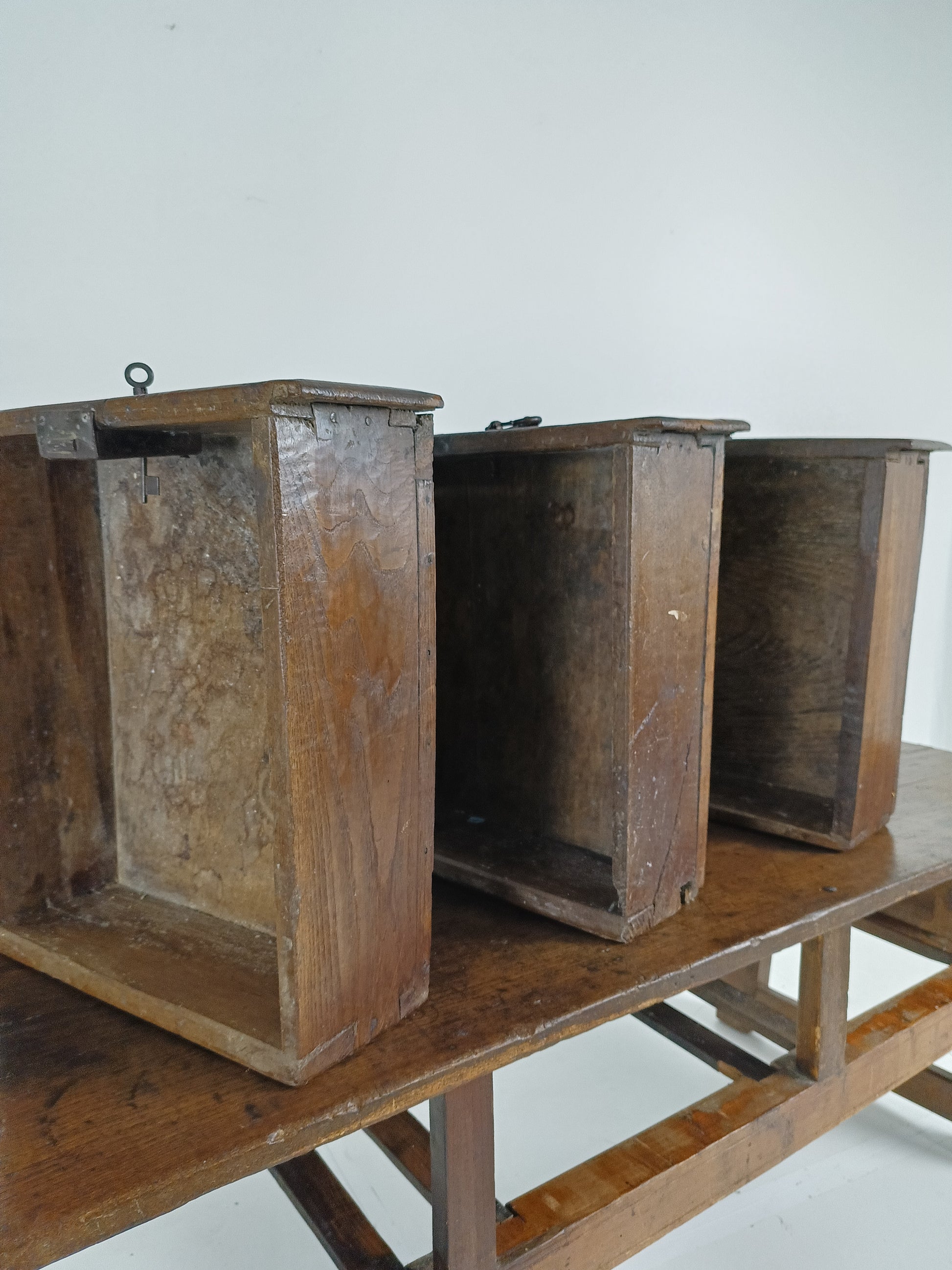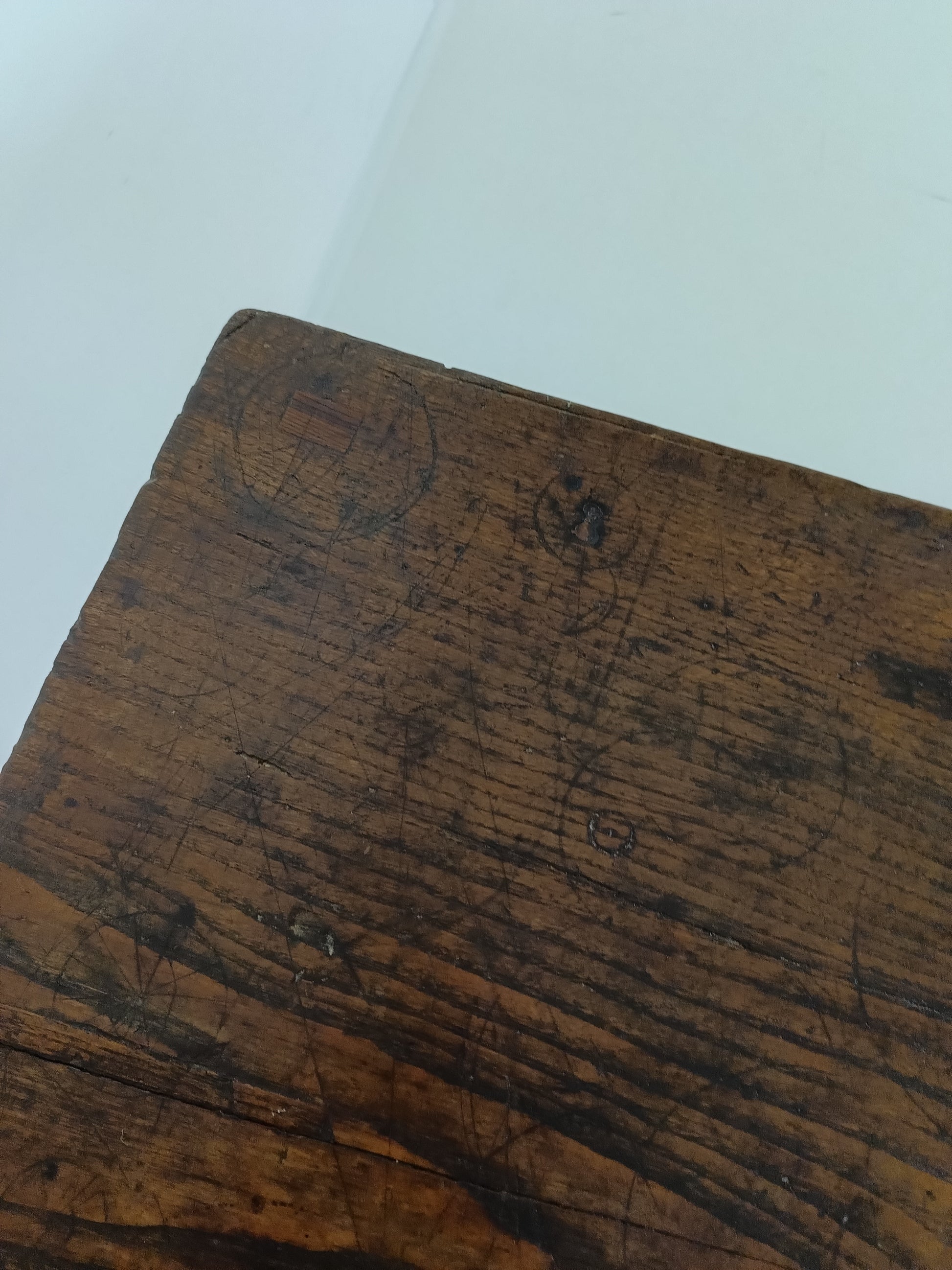 Antique Spanish coffee table with three drawers and a stunning, thick solid wood top. Practical and stylish, made from solid chestnut wood around the 18th century. The wooden top has a gorgeous patina and a beautifully aged appearance.