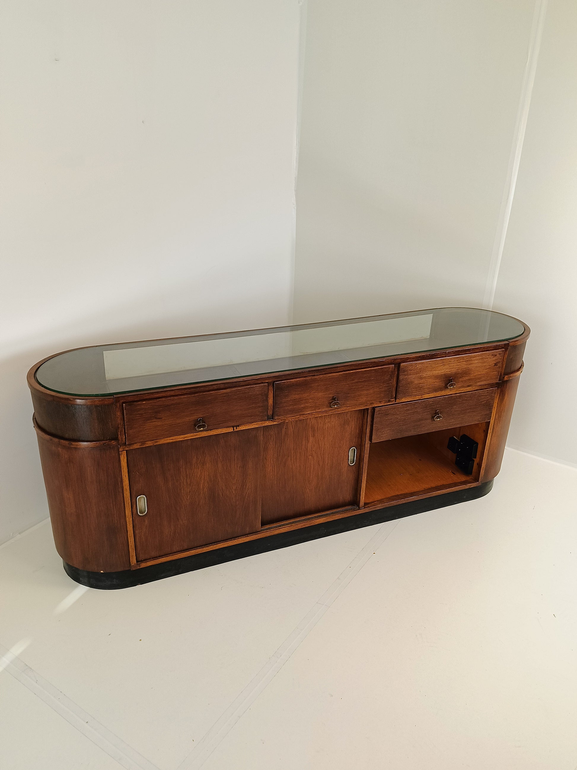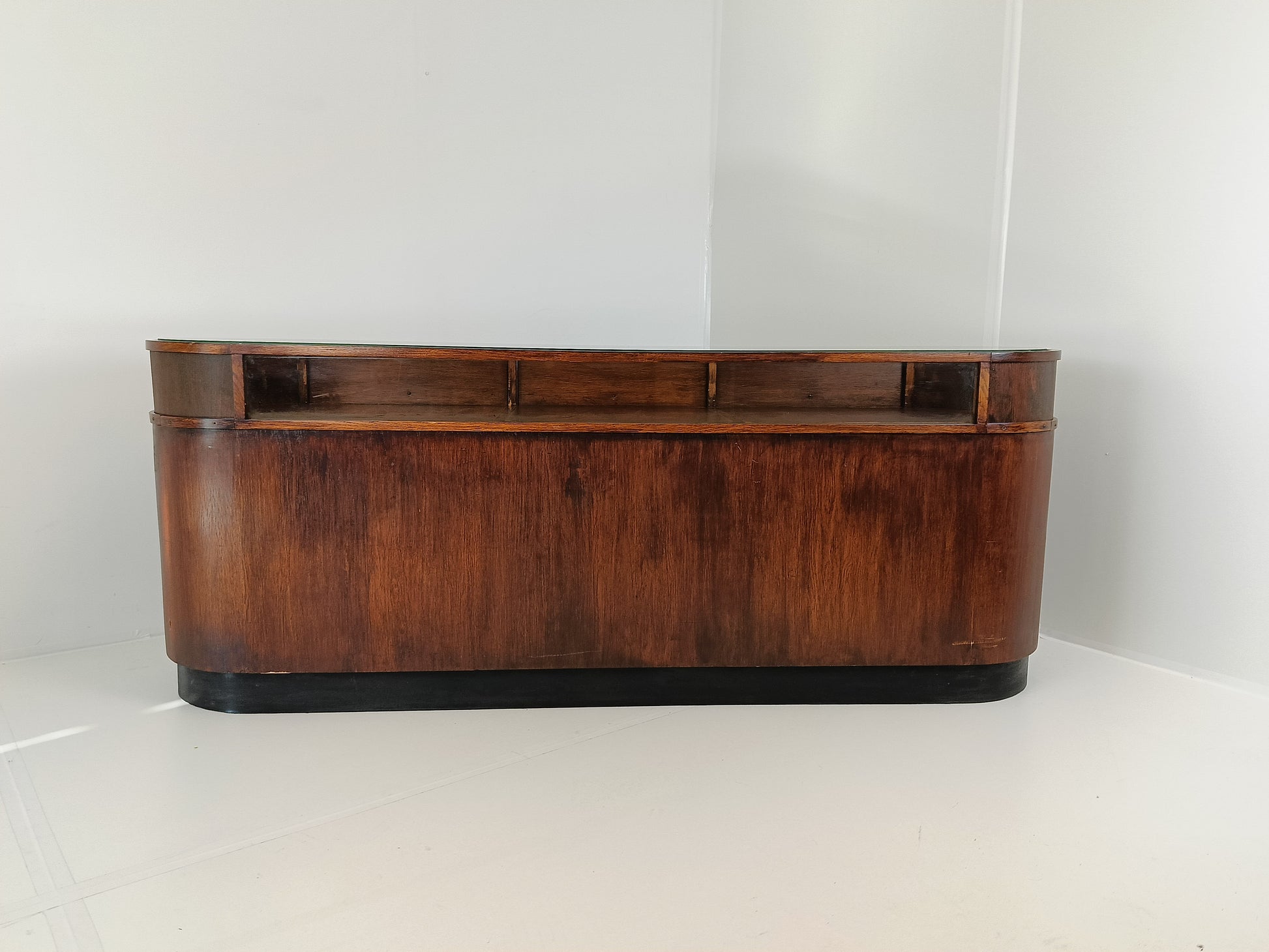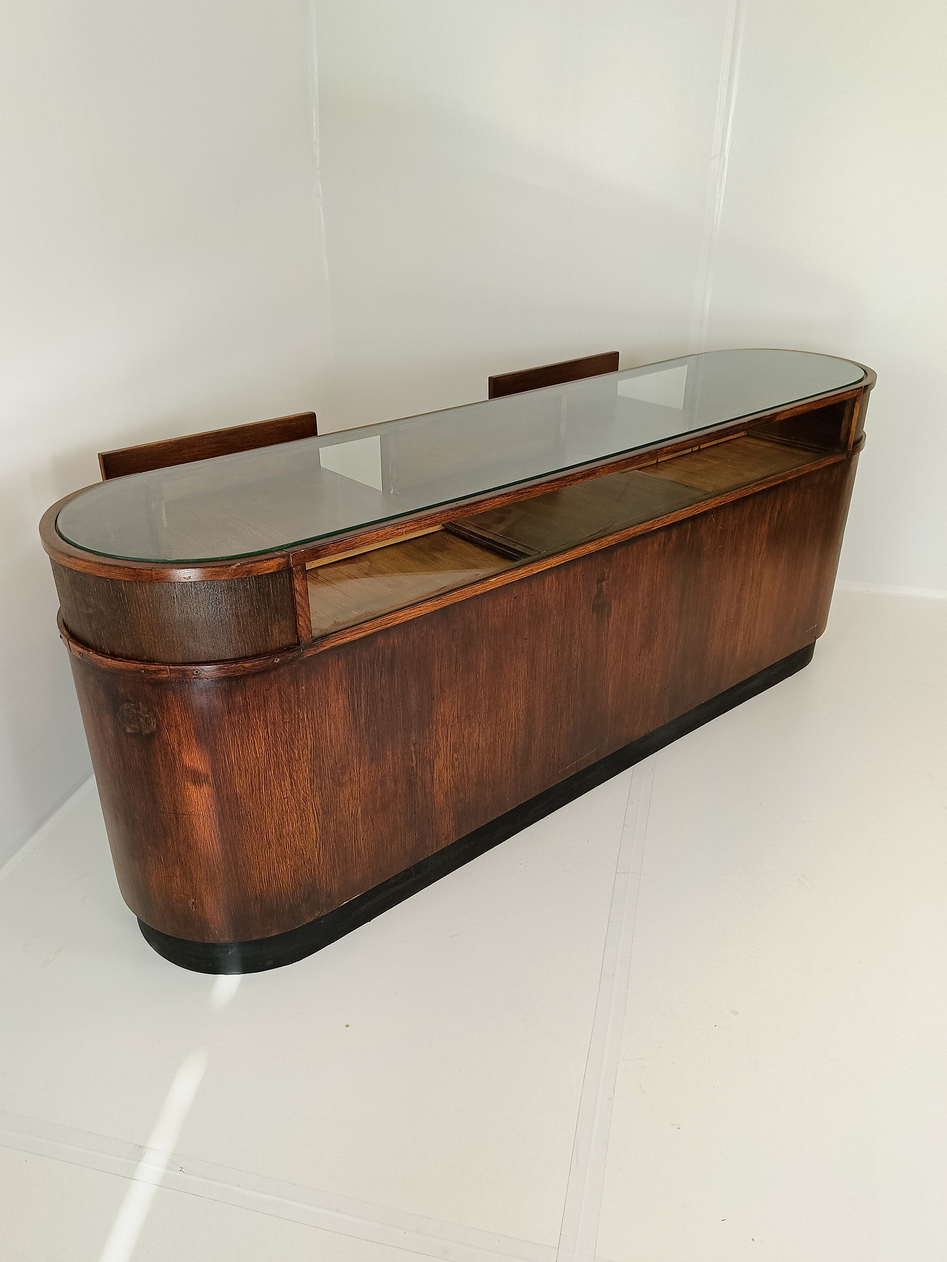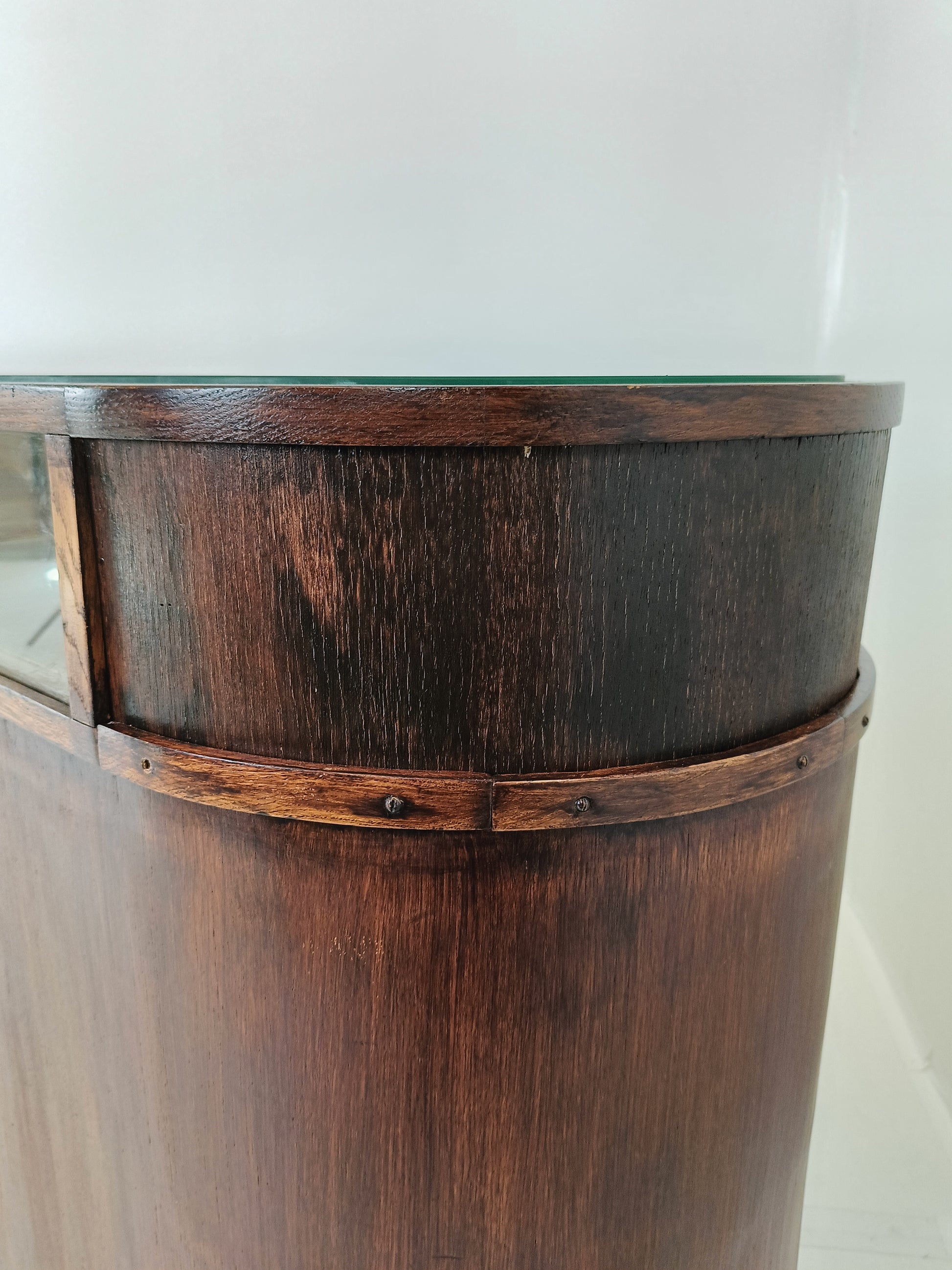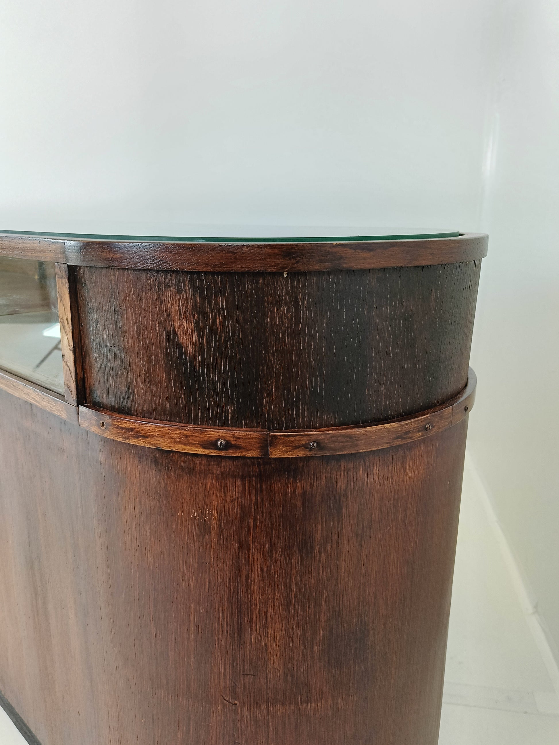 Step into the elegance of yesteryear with our exquisite Art Deco shop display counter. Crafted with meticulous attention to detail, this stunning piece exudes sophistication and charm. Its sleek lines and geometric patterns effortlessly capture the essence of the Art Deco era, making it a focal point in any space.