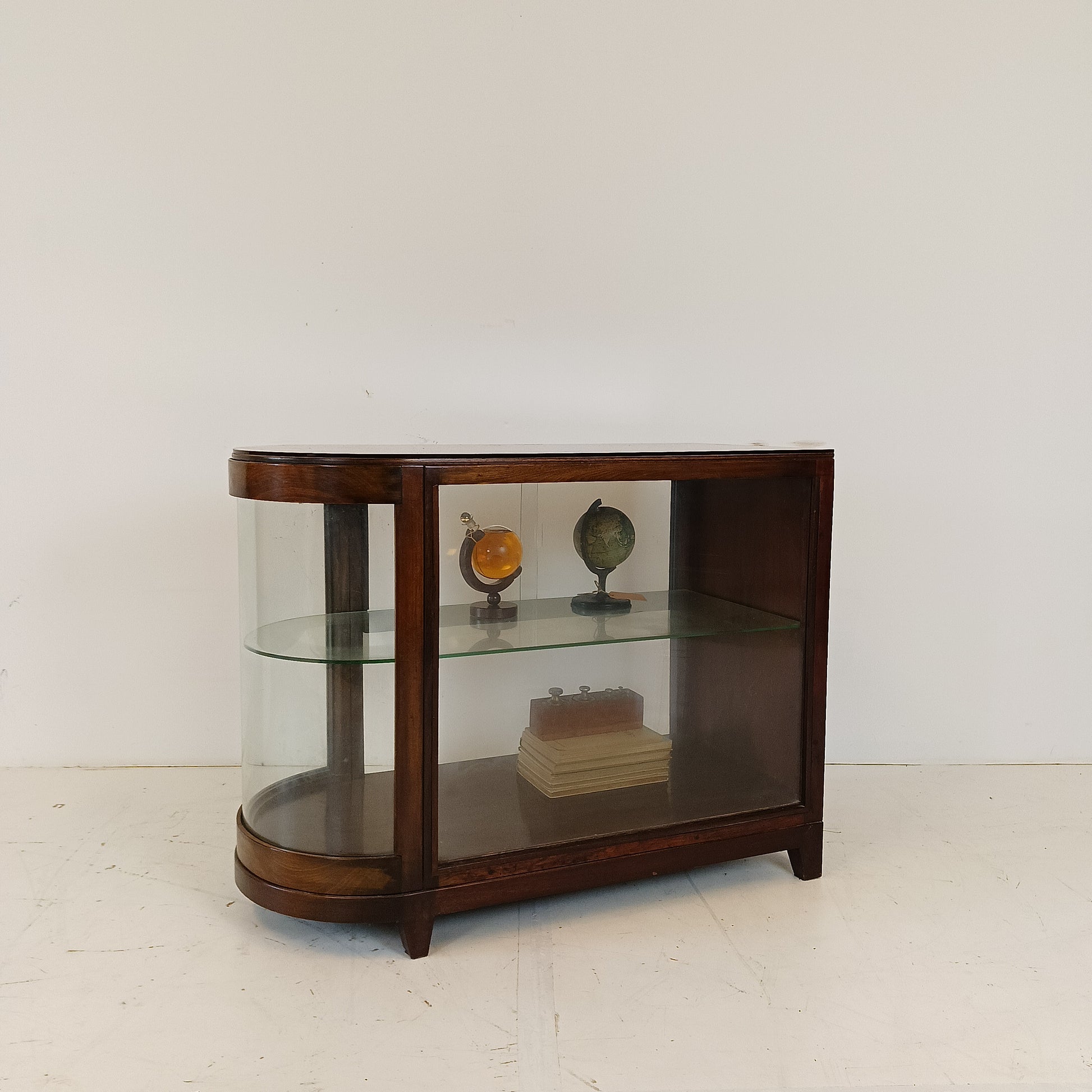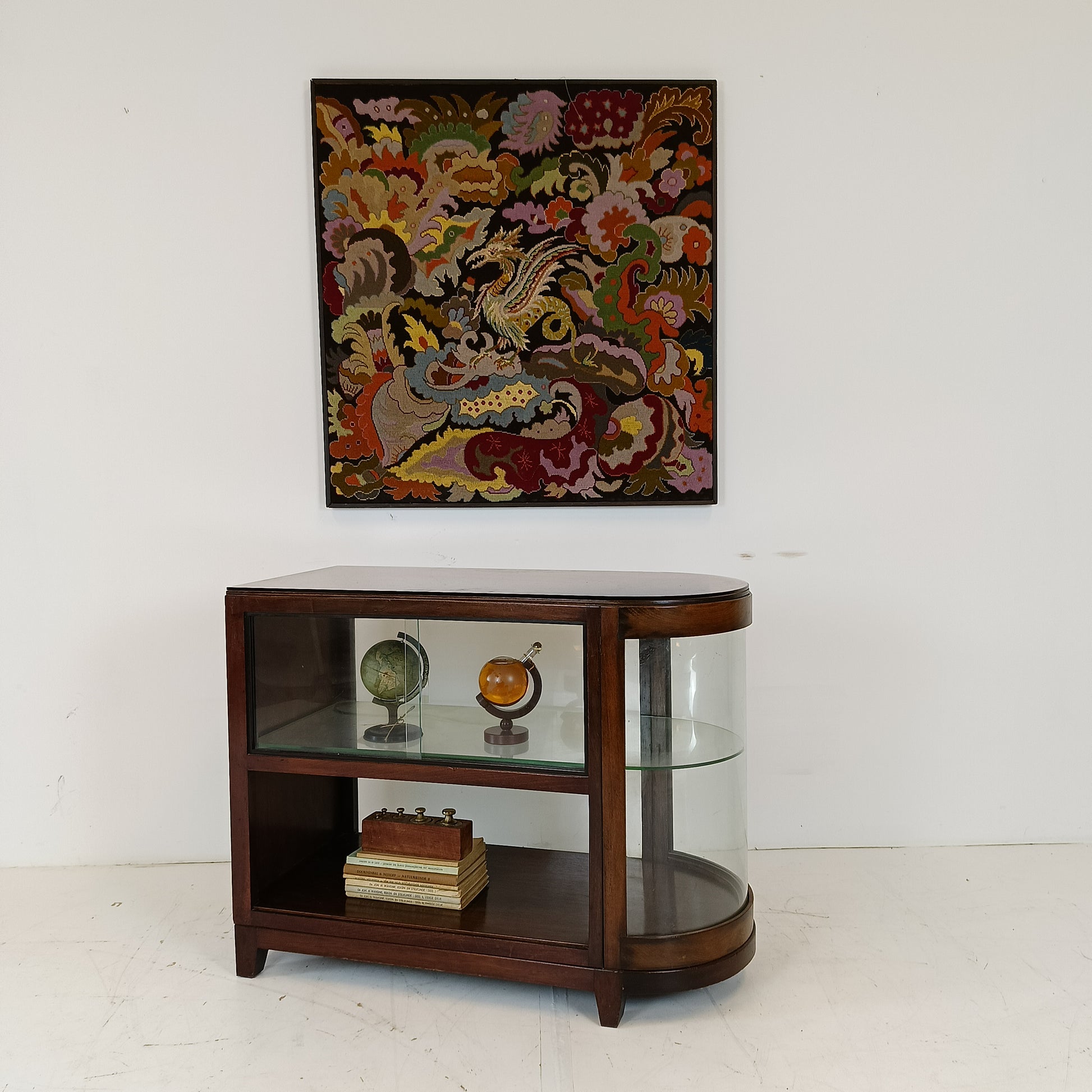 An art deco cabinet, very decorative. Contains old glass. Made of oak wood. Circa 1920