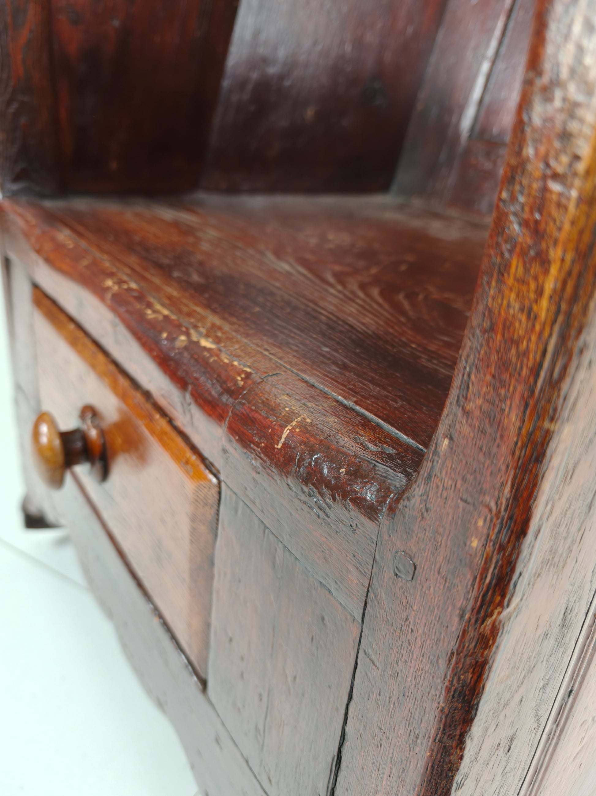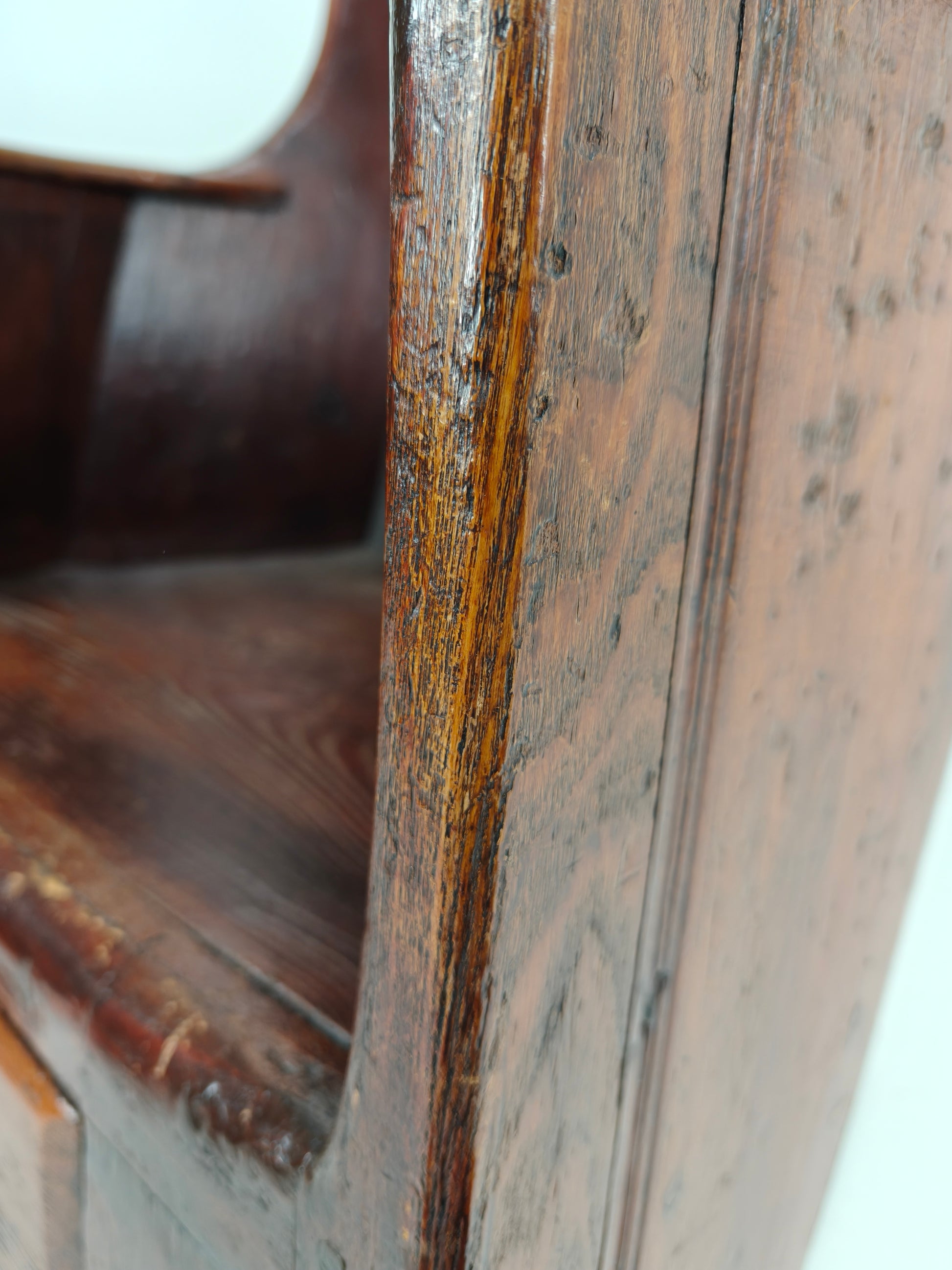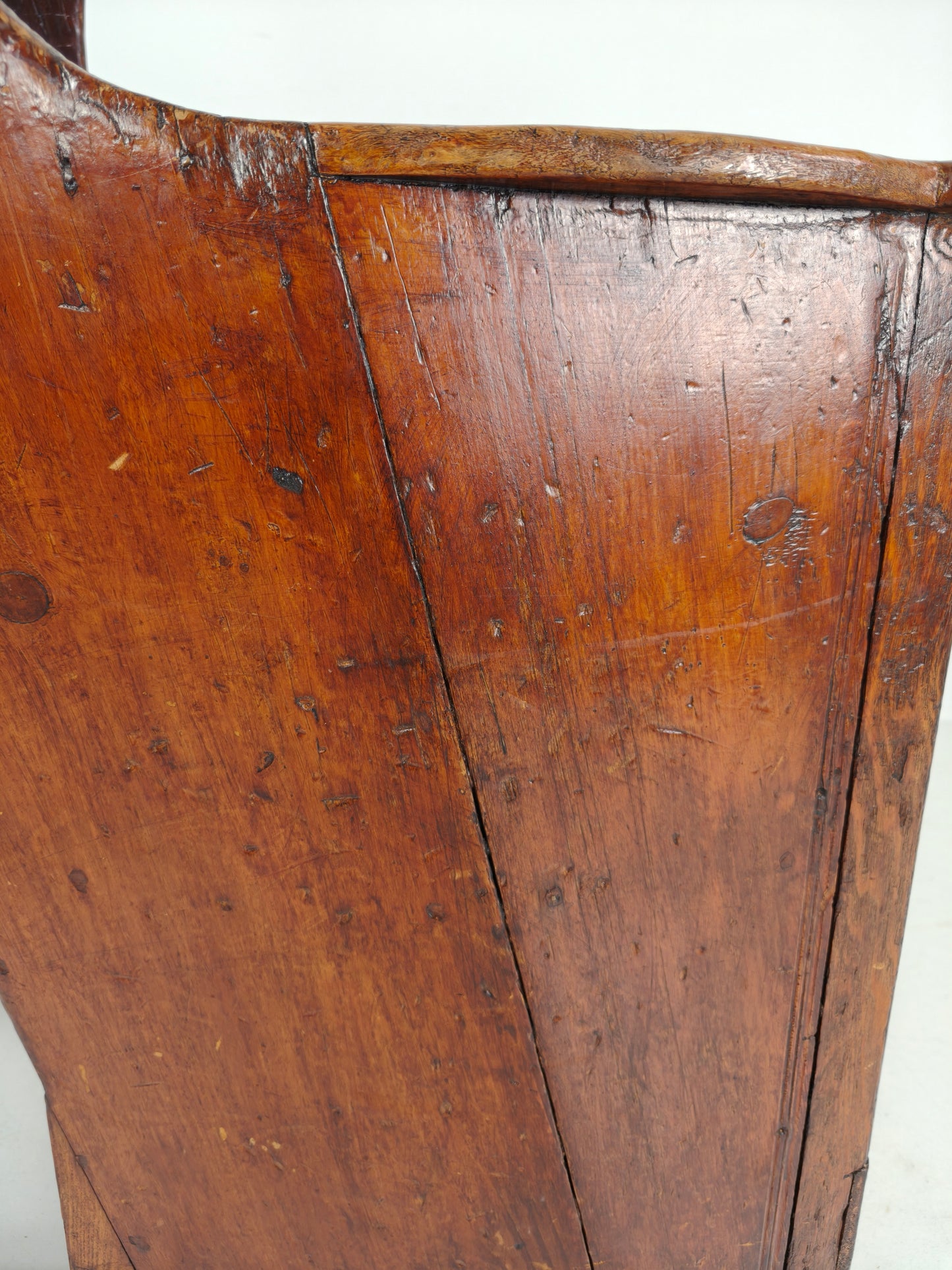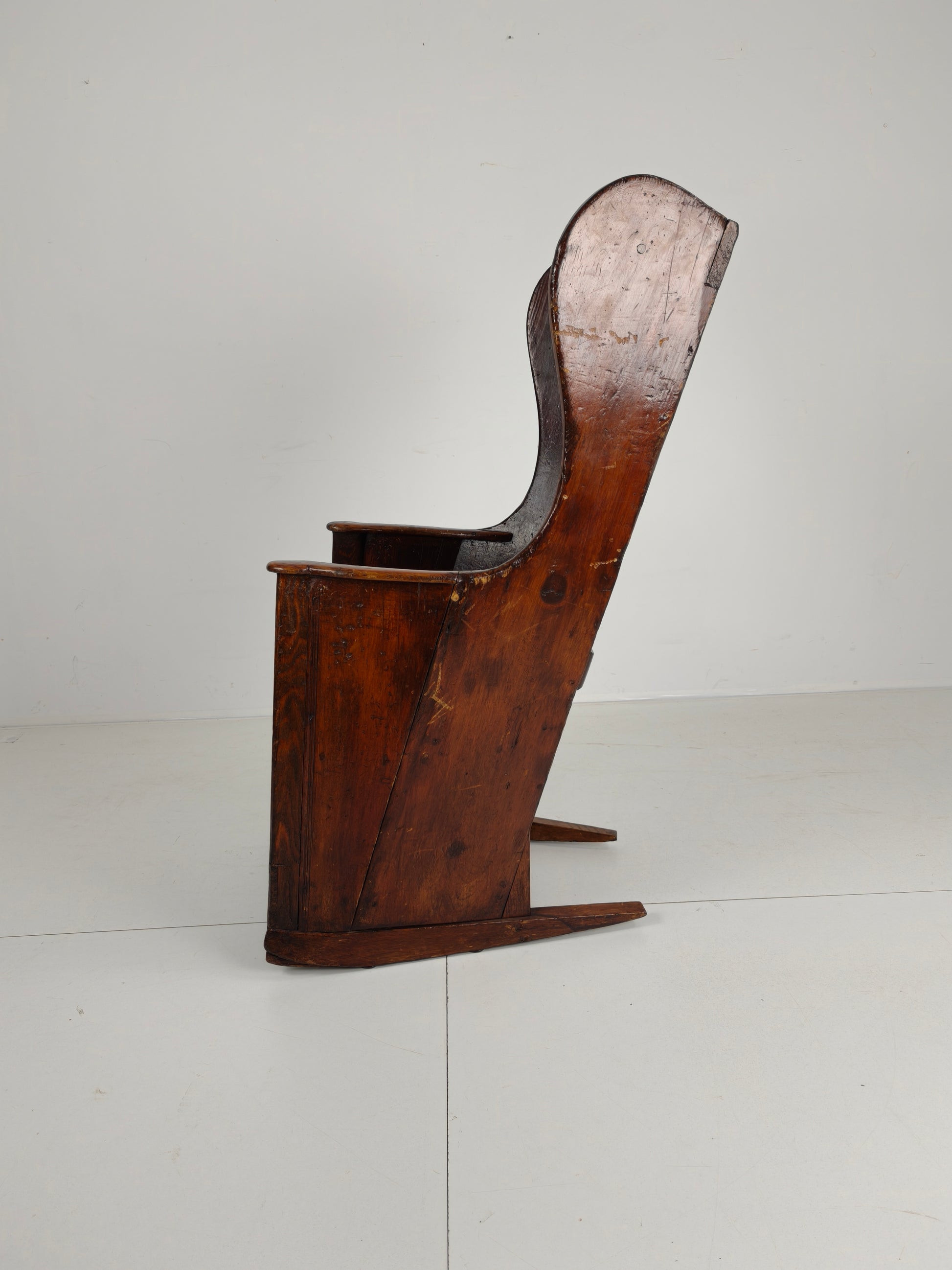 This exquisite lambing chair from the 18th century boasts a comfortable seat and charming appearance, with a lovely natural patina. Made of pine, it has been well-preserved and retains its classic appeal.