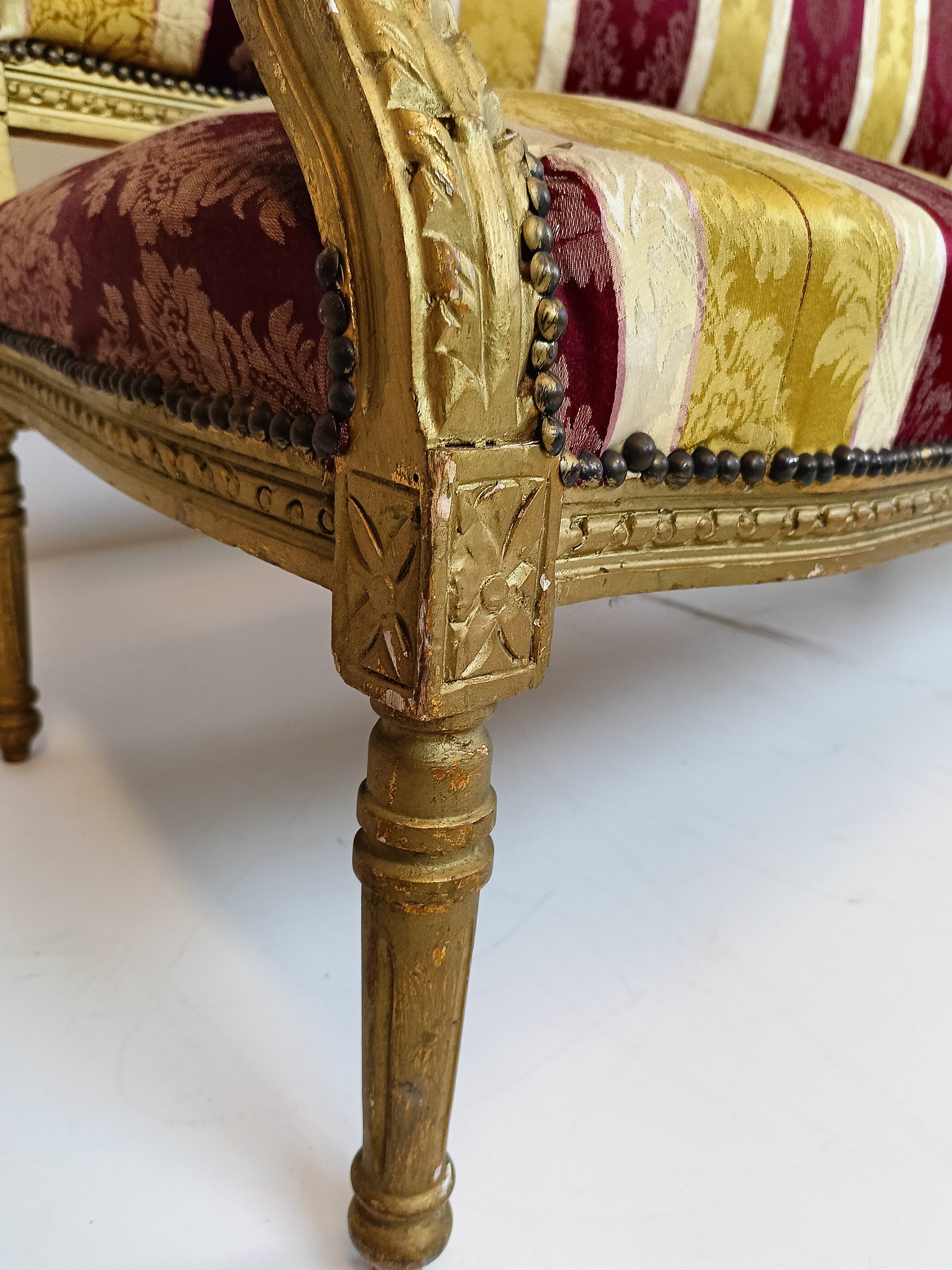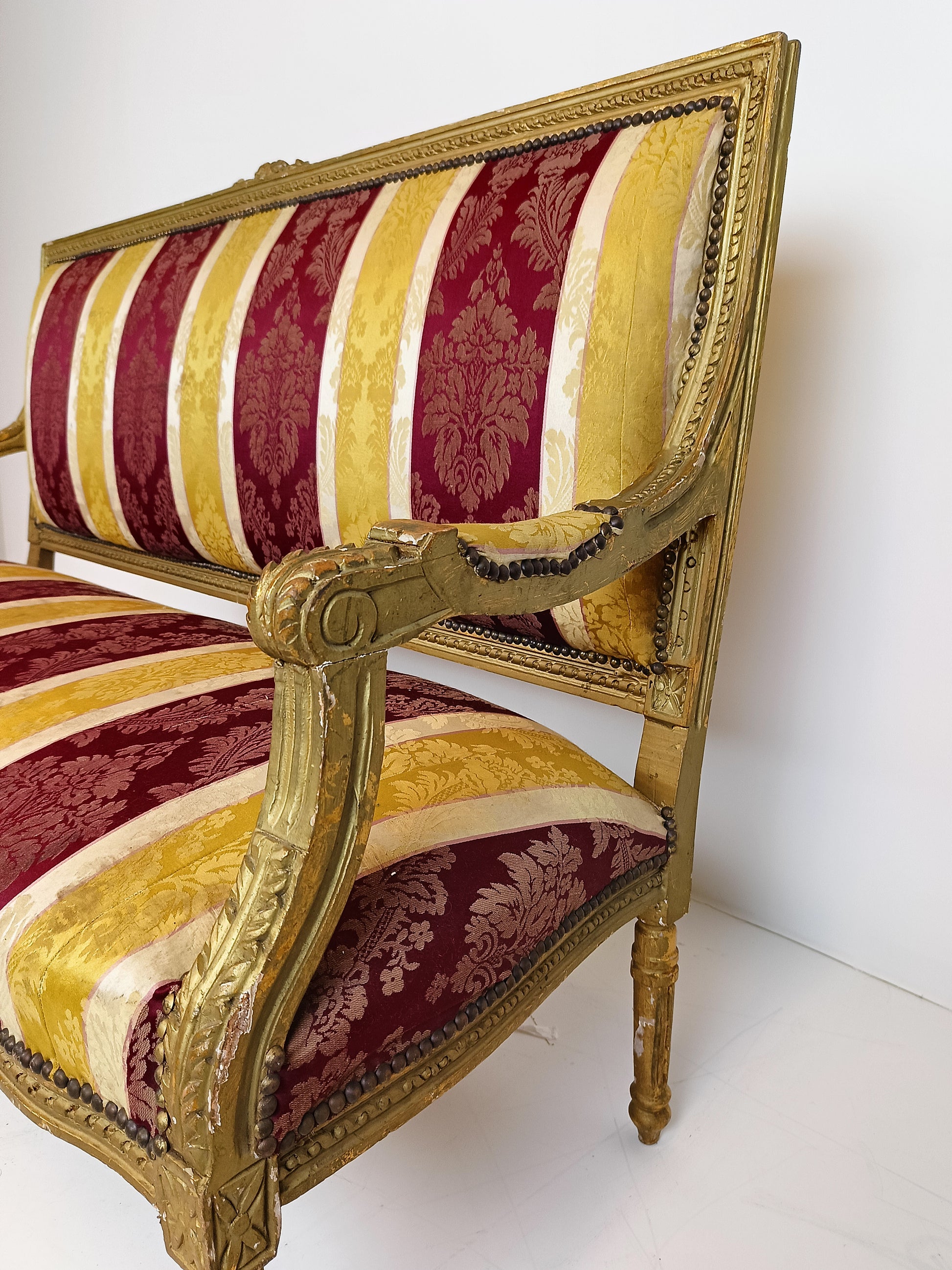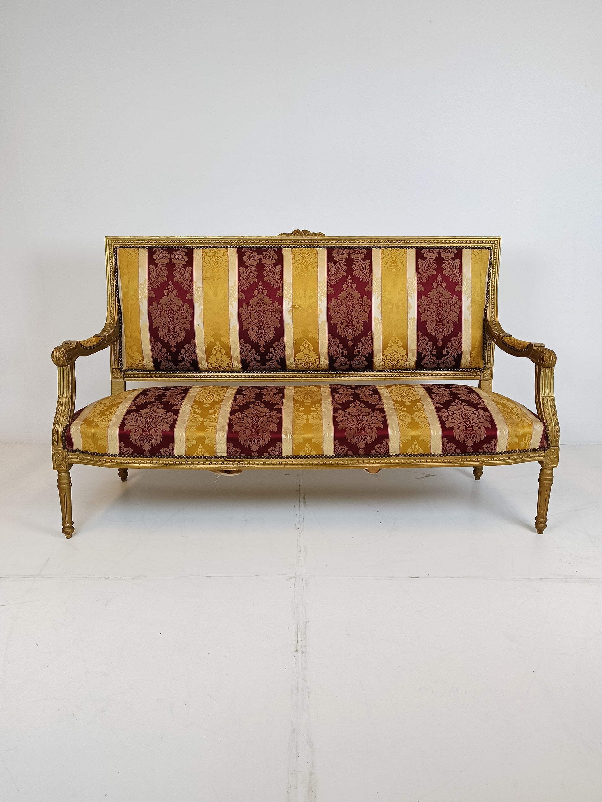 Beautiful Elegant Gilded Wooden 2-Seater Sofa In Louis XVI Style