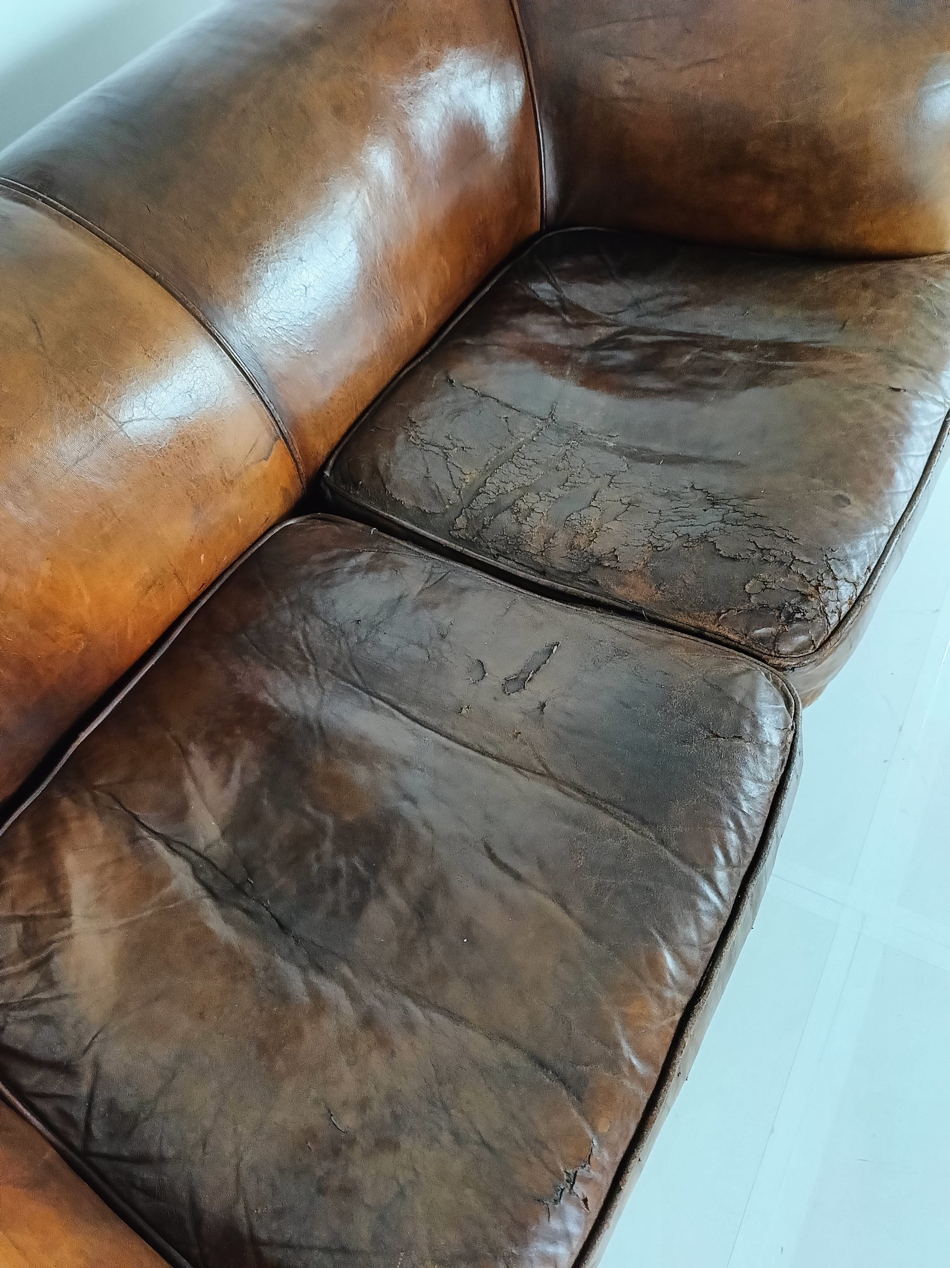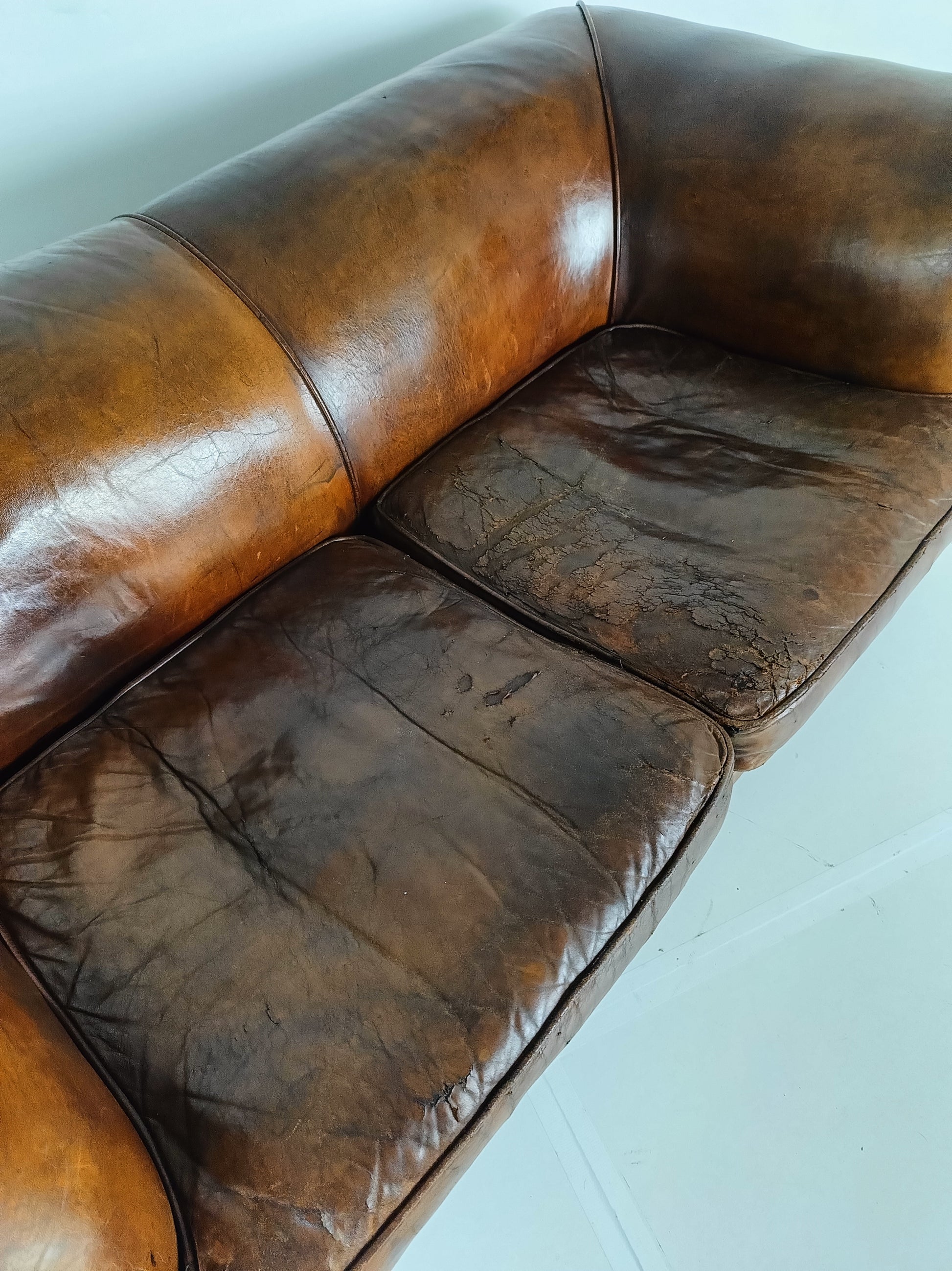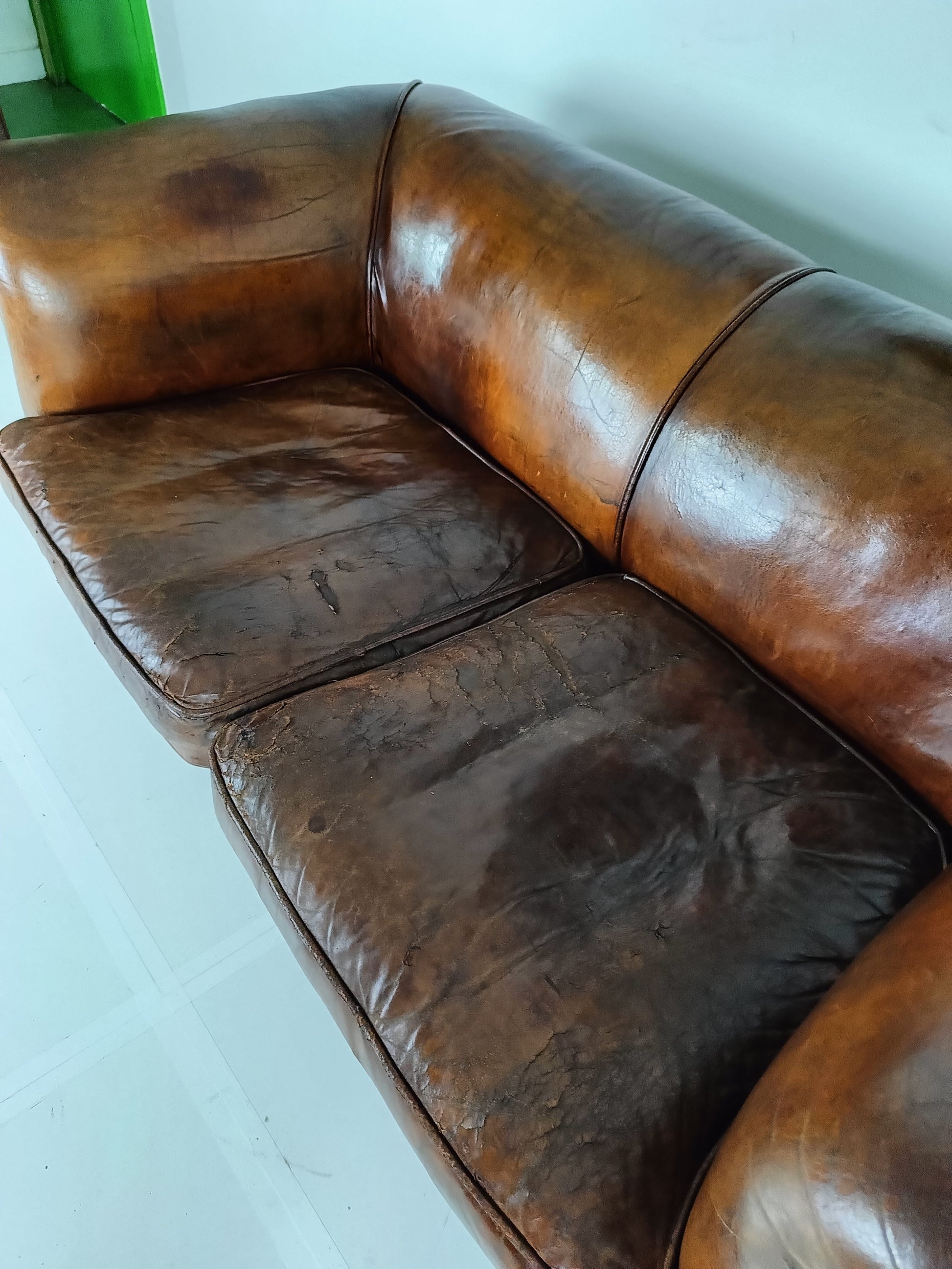 Beautiful Antique Patina Sheep Leather Sofa