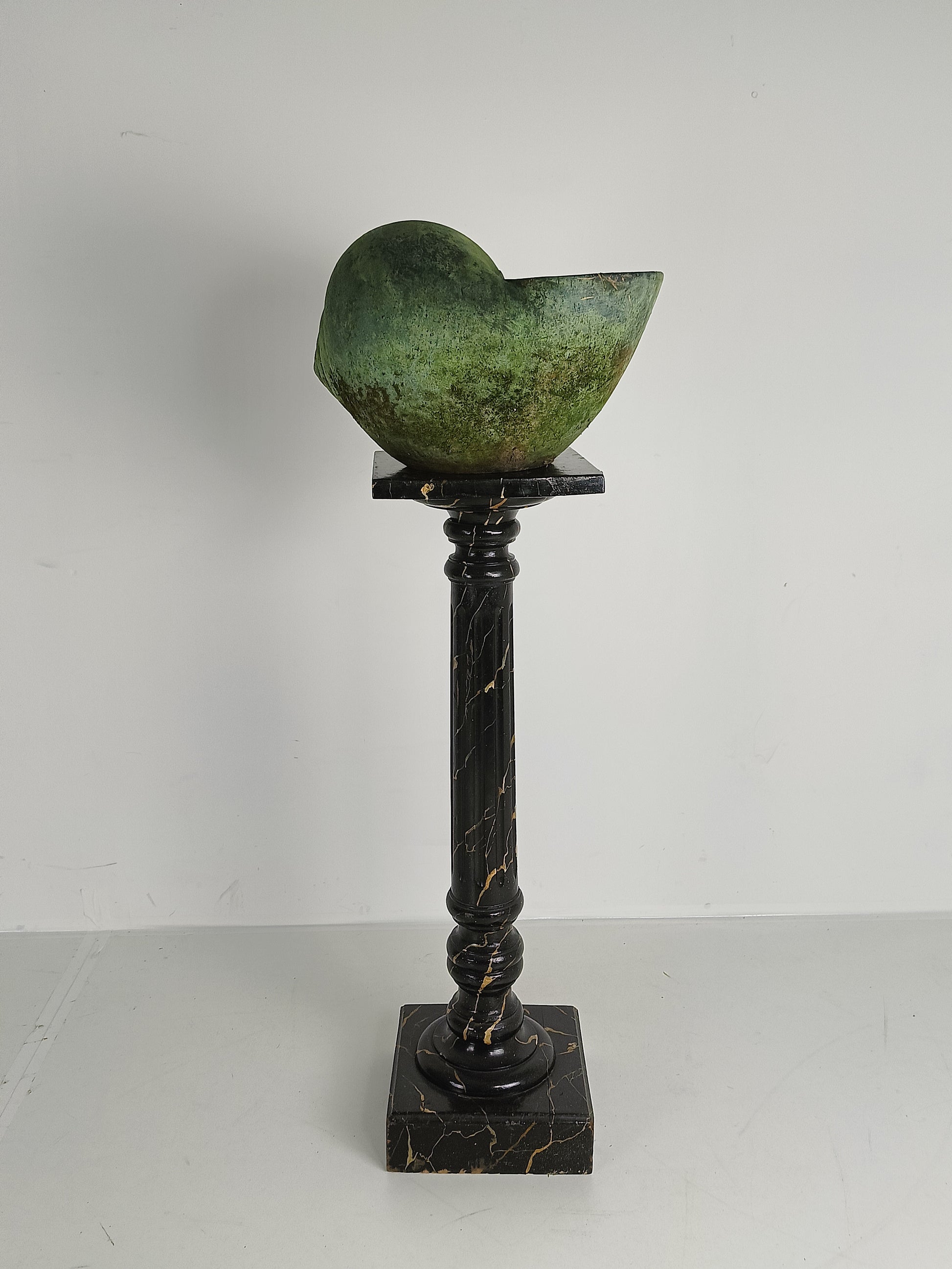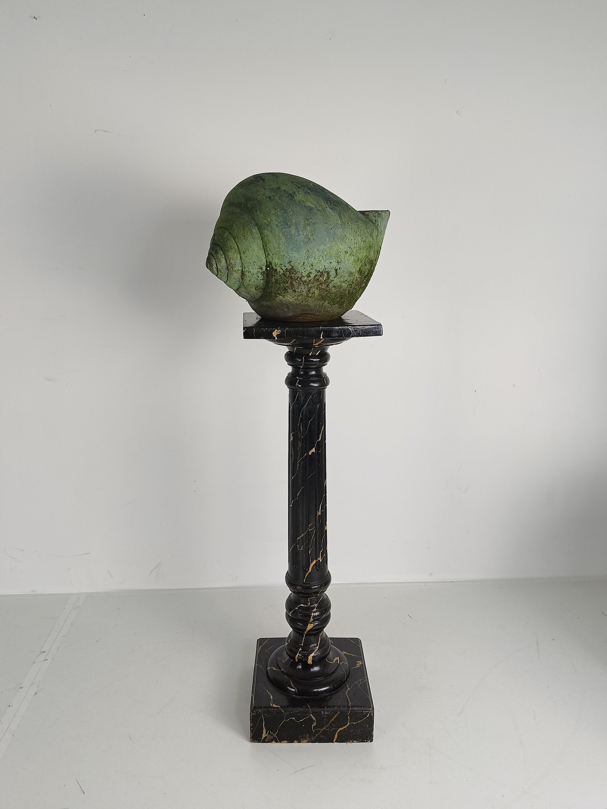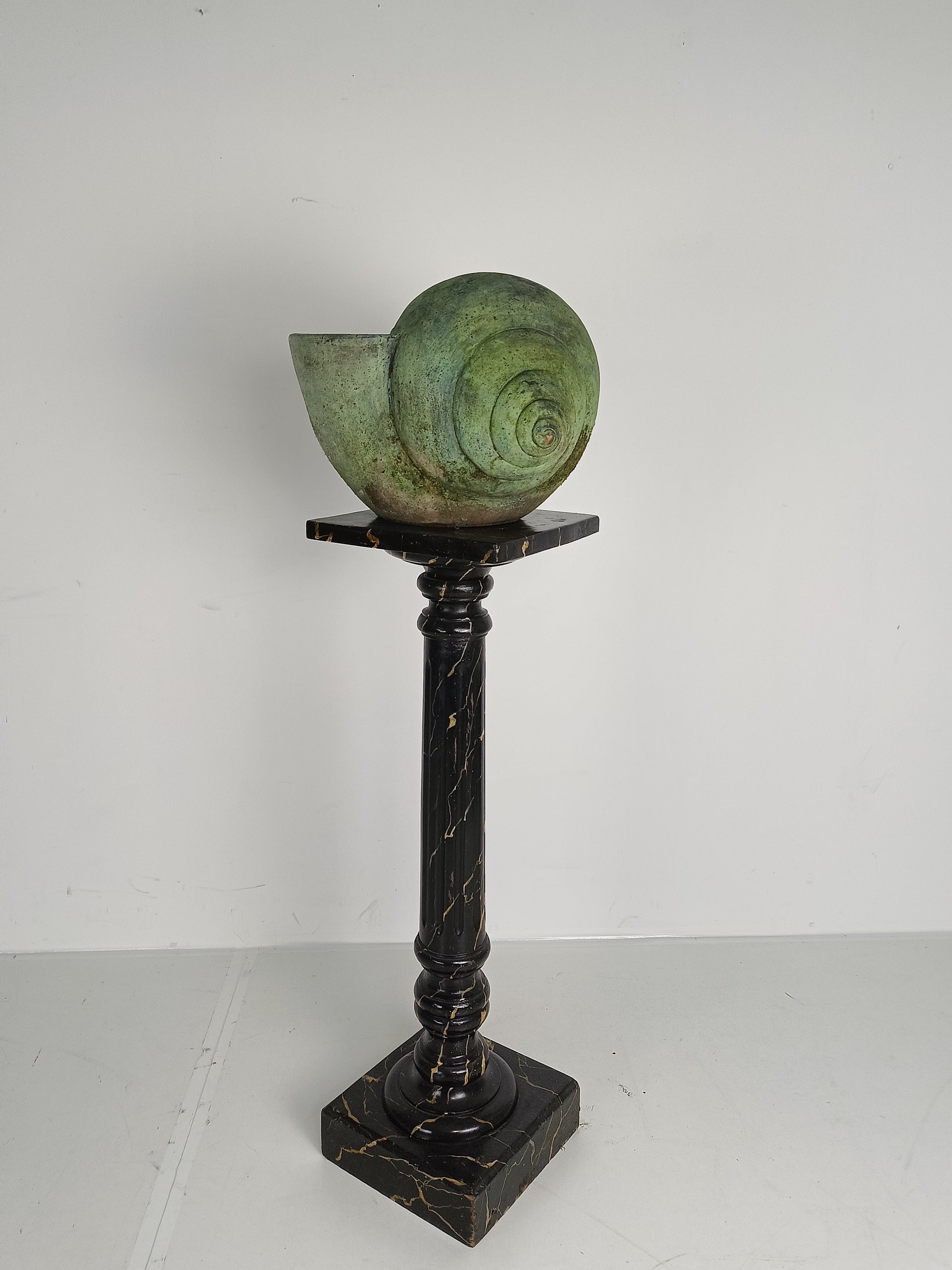 This stunning terracotta cochlea showcases a remarkable patina that enhances its earthy, aged charm. A unique, decorative piece, it embodies timeless craftsmanship and adds a touch of rustic elegance to any space.