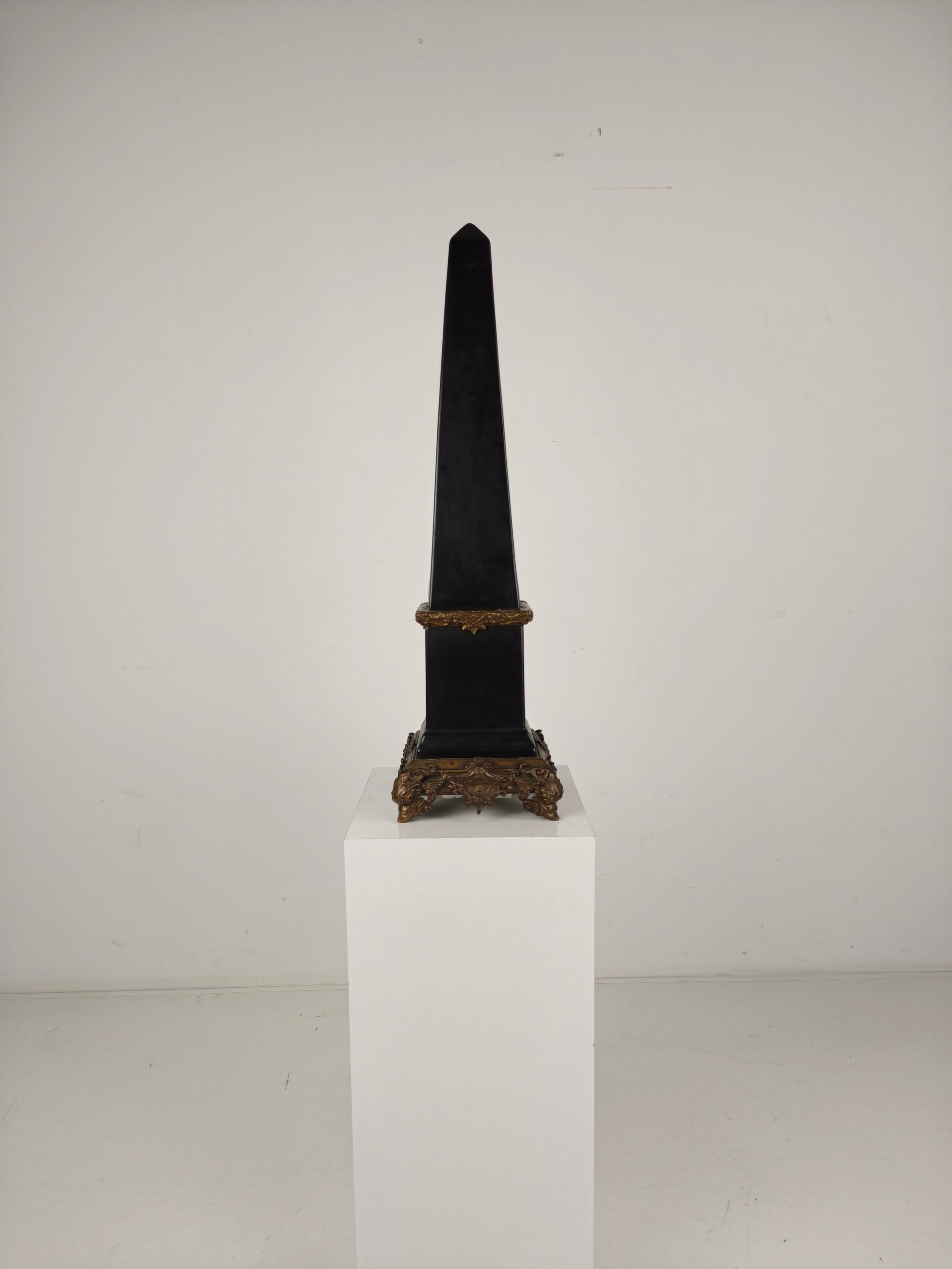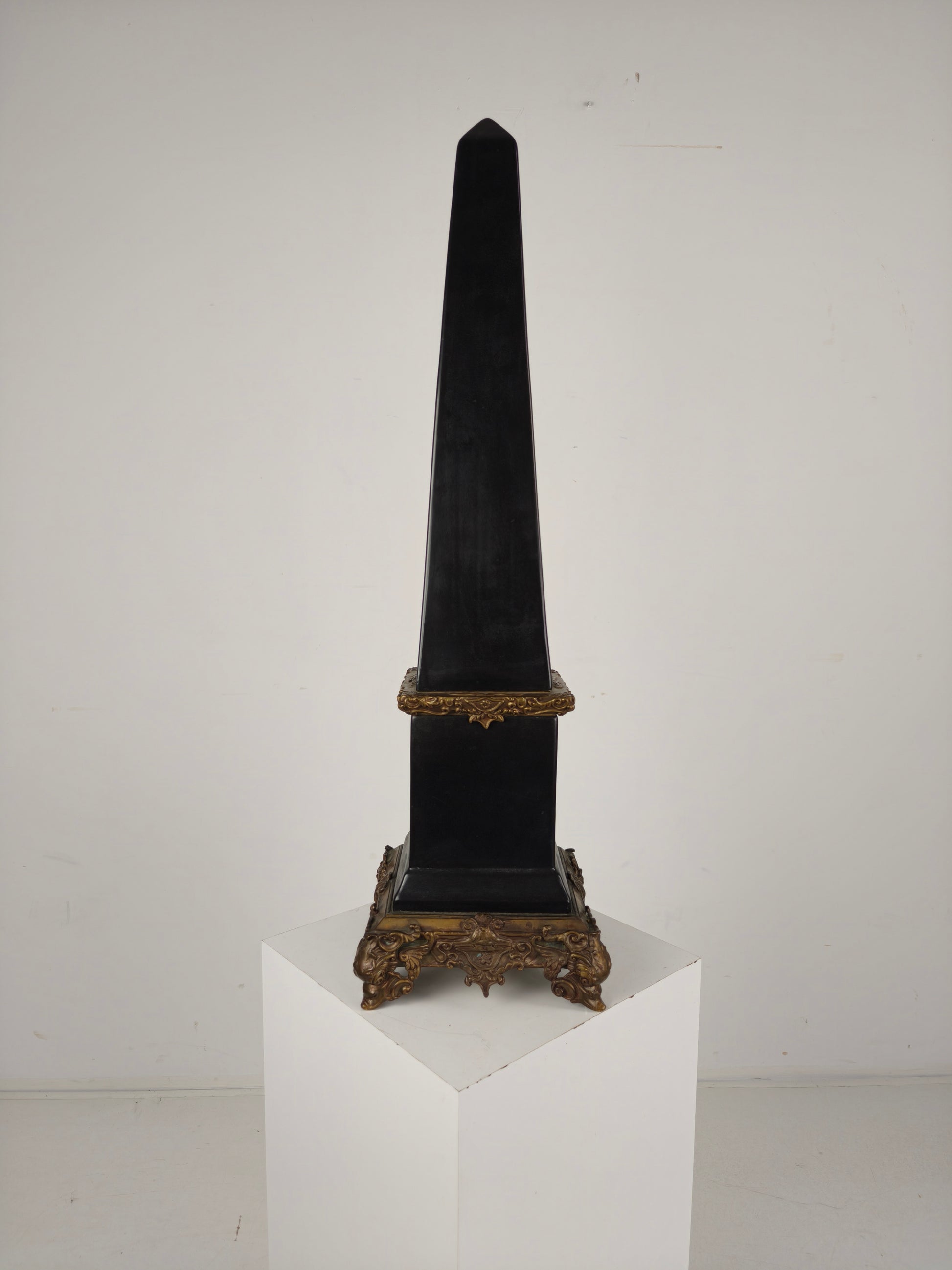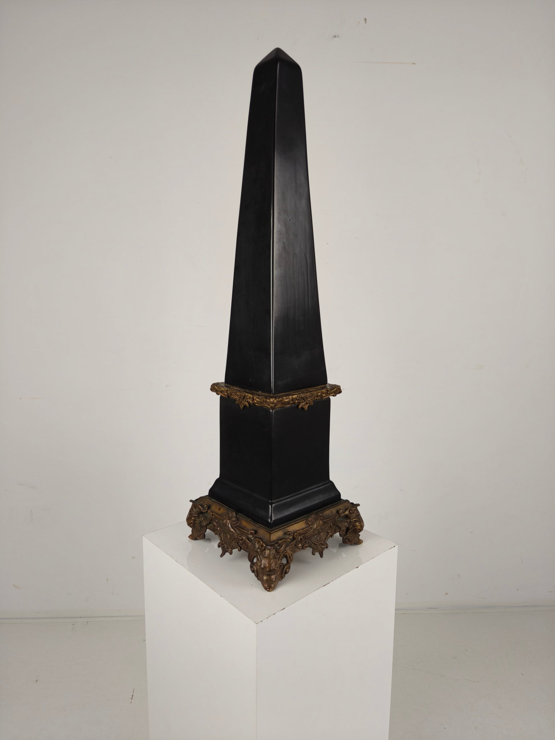 Black Porcelain Obelisk with Bronze Ornaments