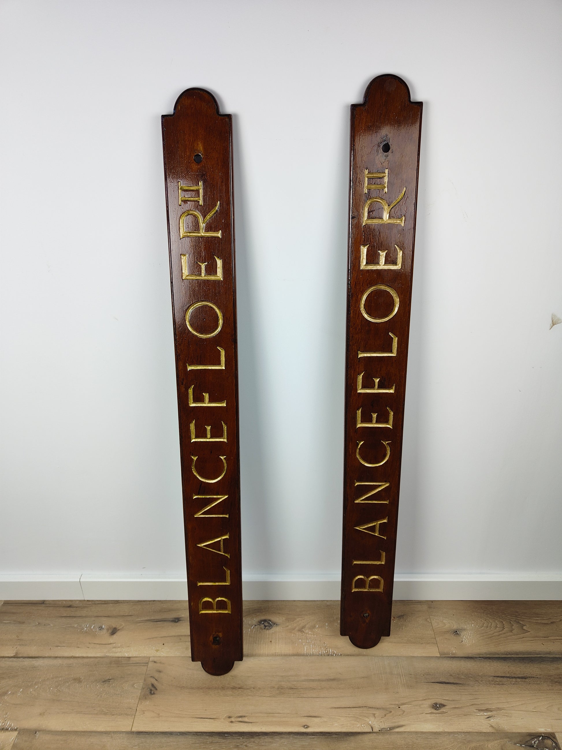 These " Blanceflower II " mahogany signs come from a ship. The signs date from around 1950. Nice for the wall or for your boat