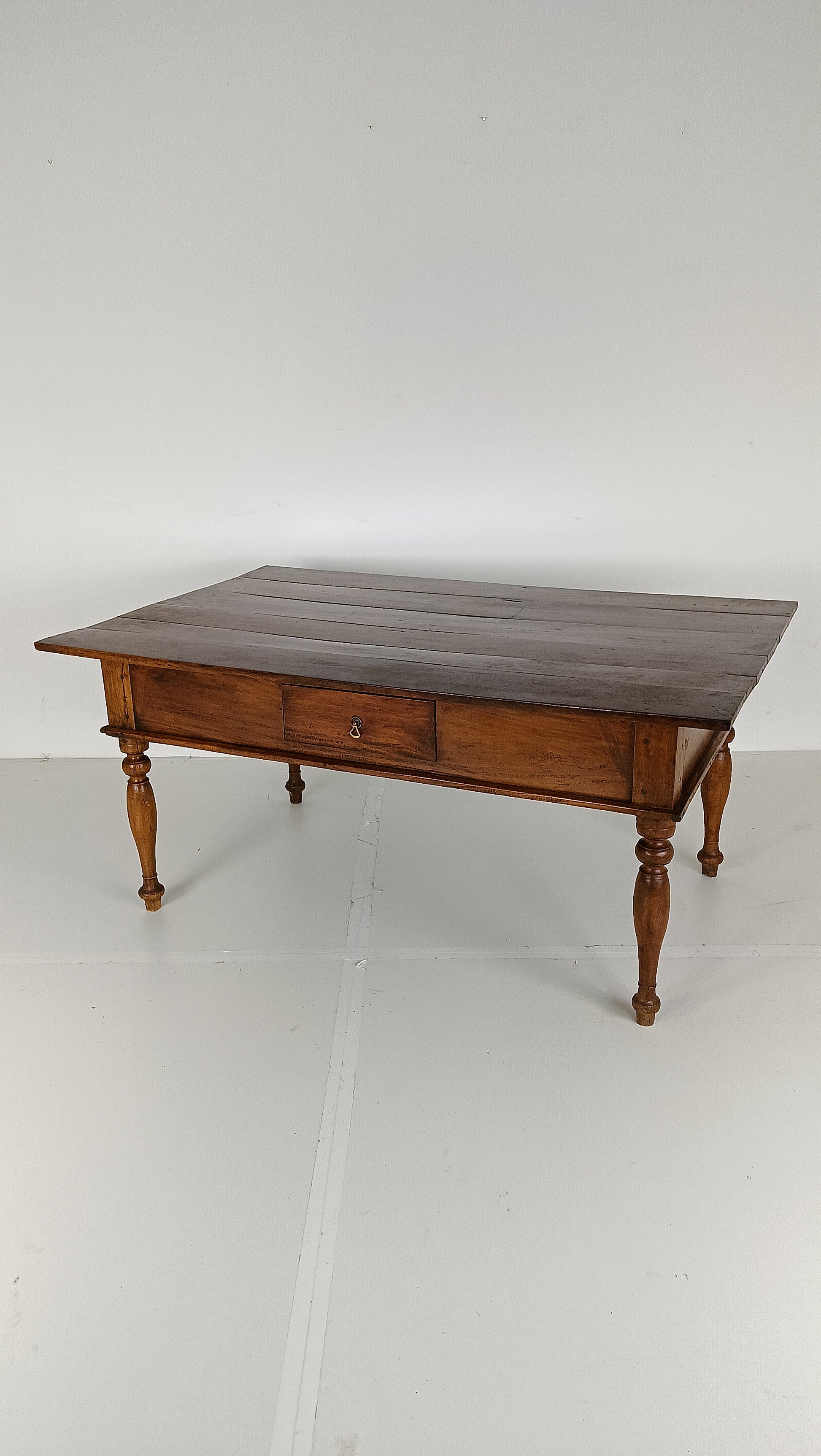 This antique coffee table exudes timeless charm with its rich wood finish and elegant craftsmanship. Featuring a single drawer, it offers a perfect blend of functionality and style. The drawer, adorned with a vintage handle, provides convenient storage for small essentials, while the table's sturdy legs and intricate details make it a striking centerpiece for any living room. Its aged patina and classic design are sure to add a touch of history to your home decor. Has signs of wear and patina consistant with age and use.