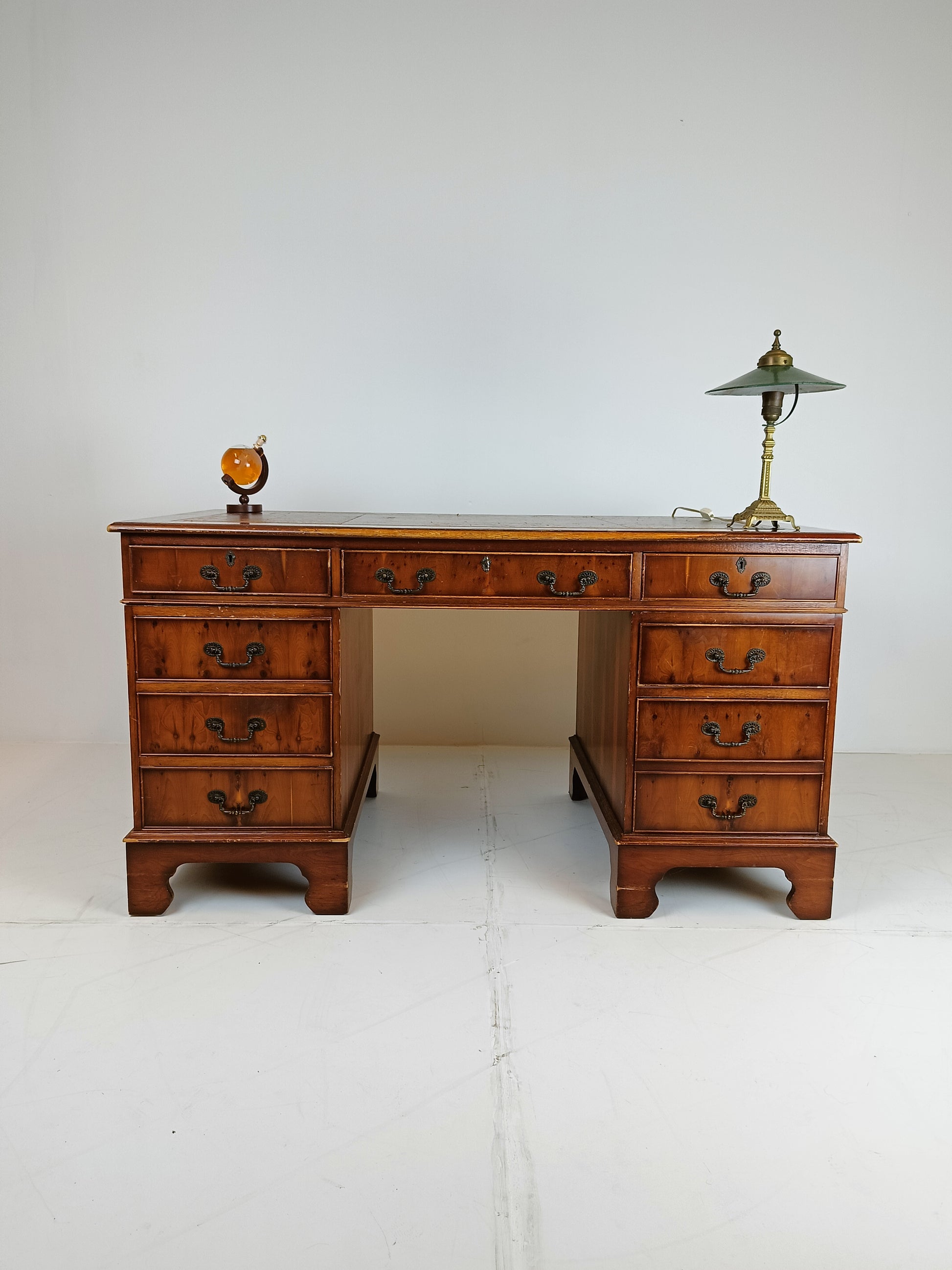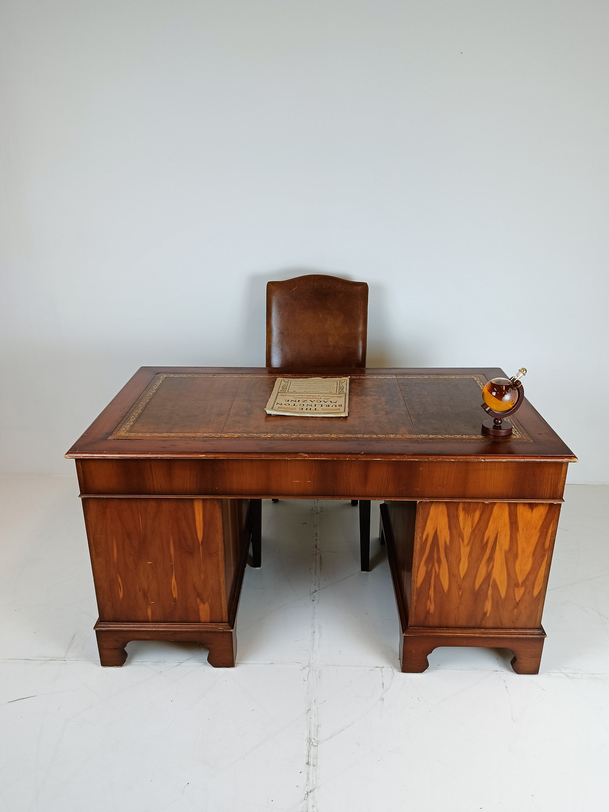 beautiful English chesterfield desk with beautiful details with leather inlaid top is still in neat condition with use traces