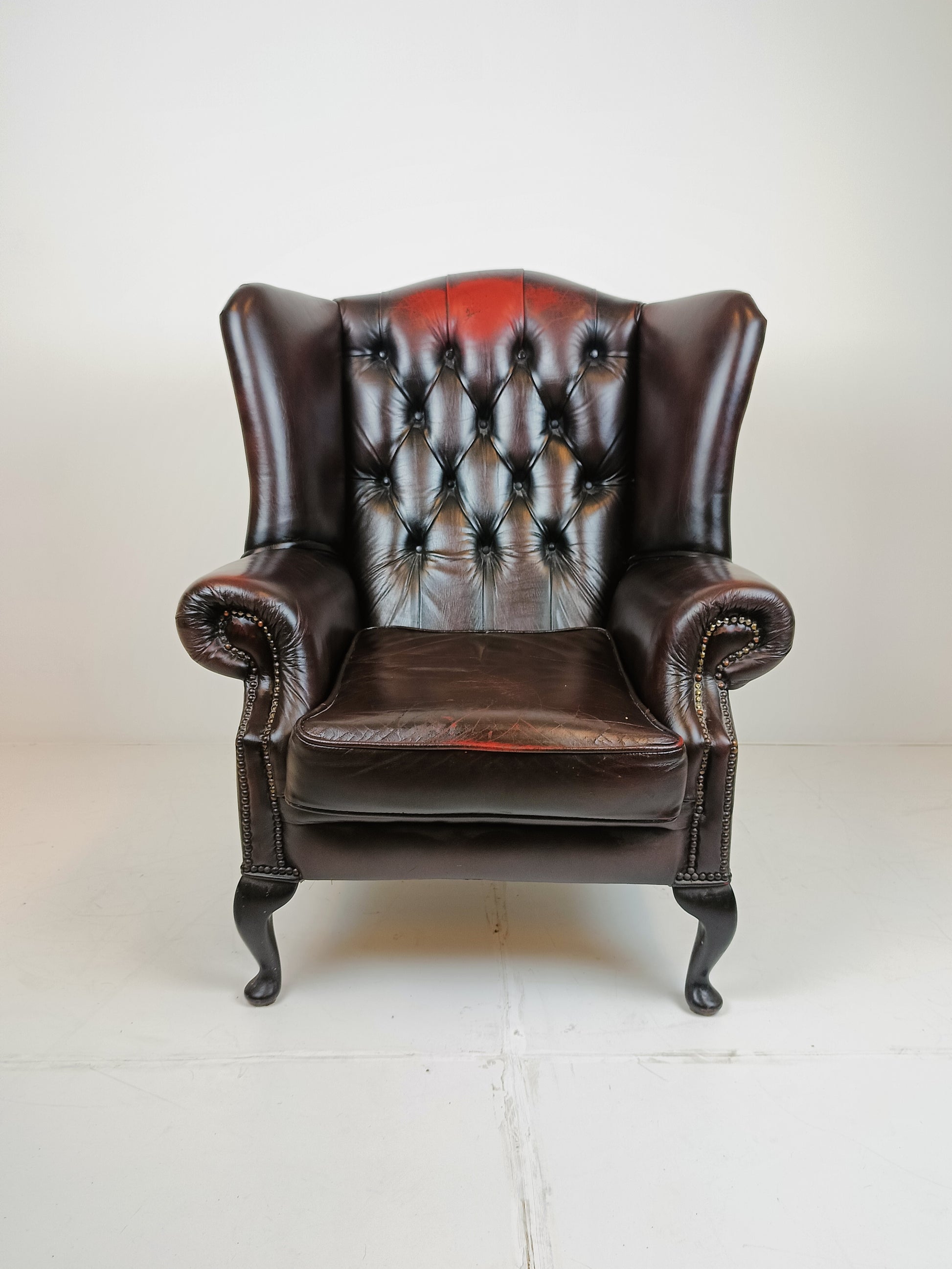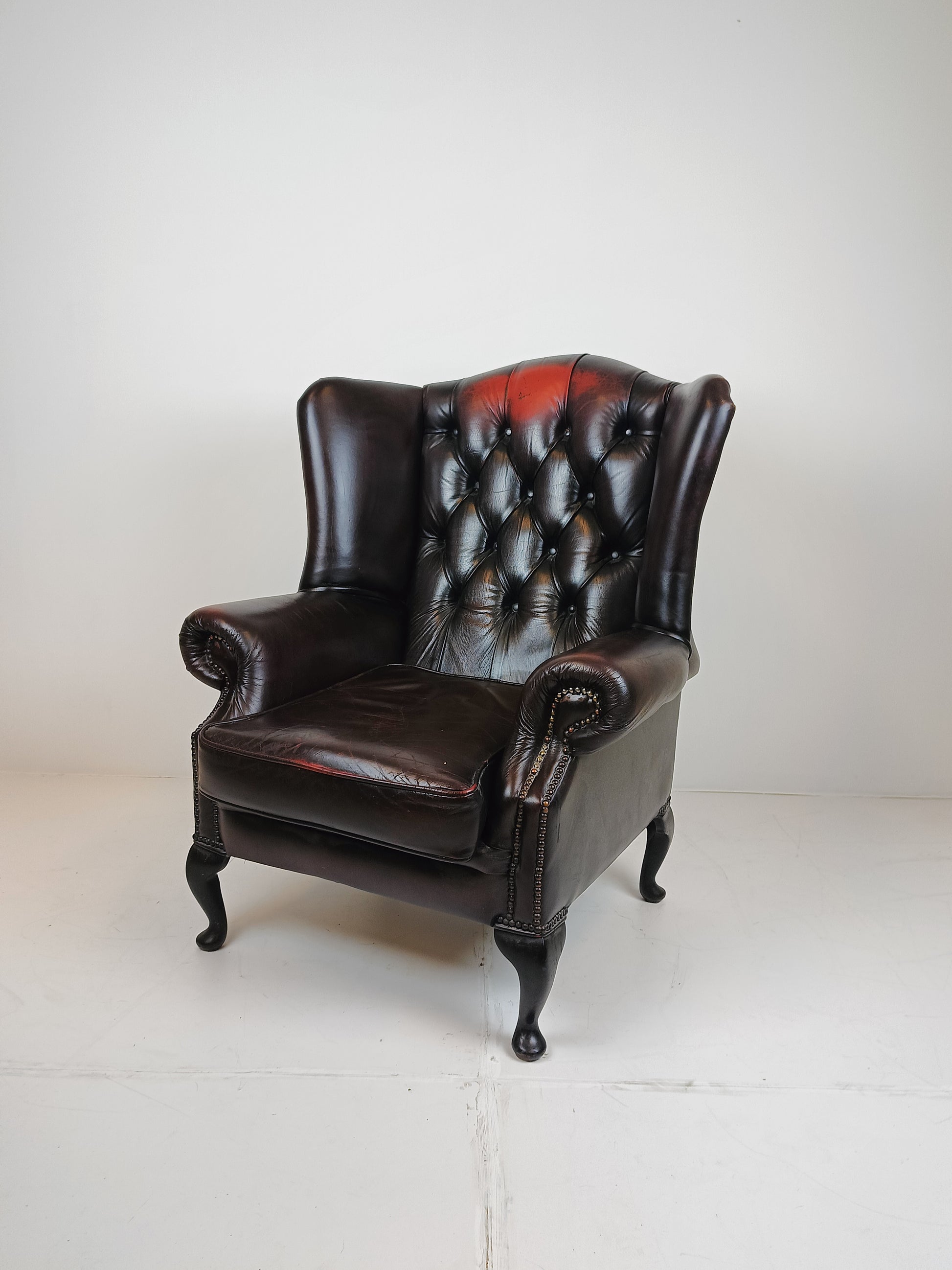 original English Chesterfield ear armchair genuine leather