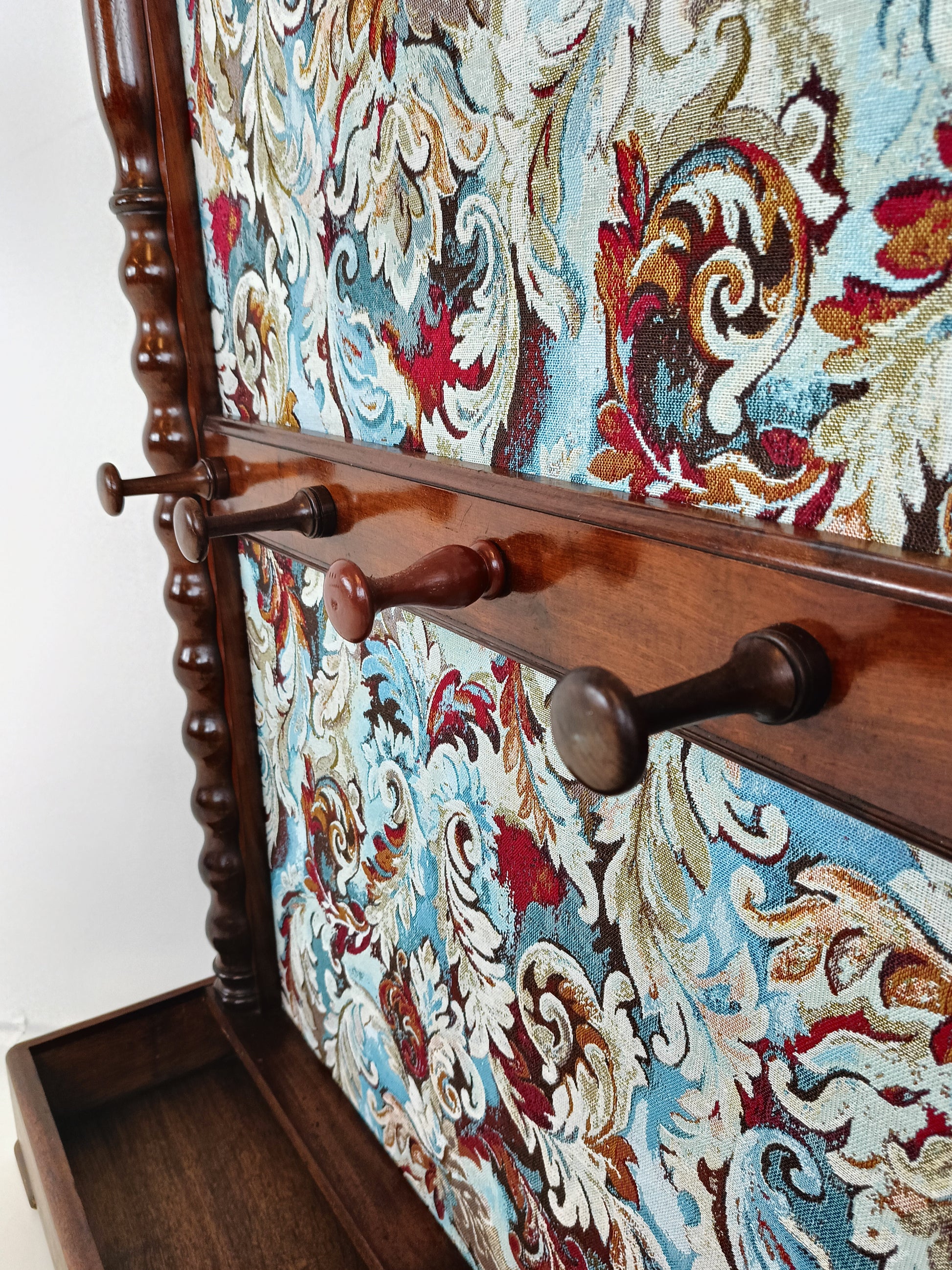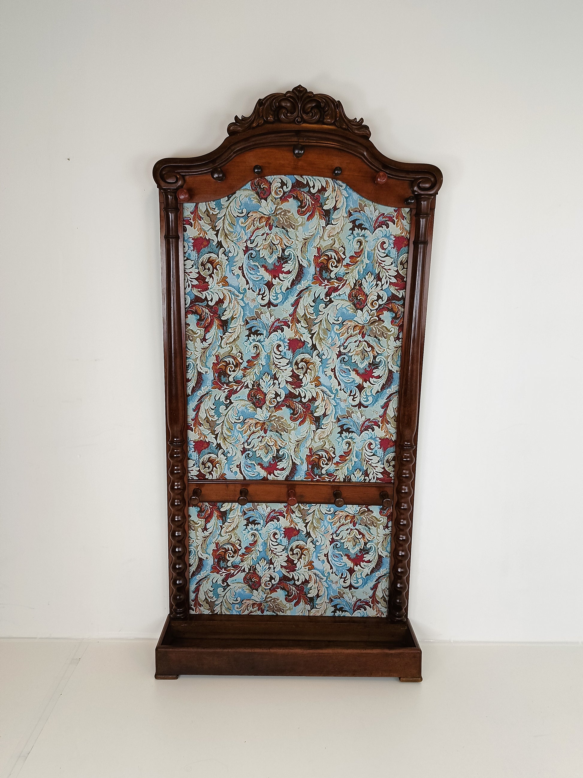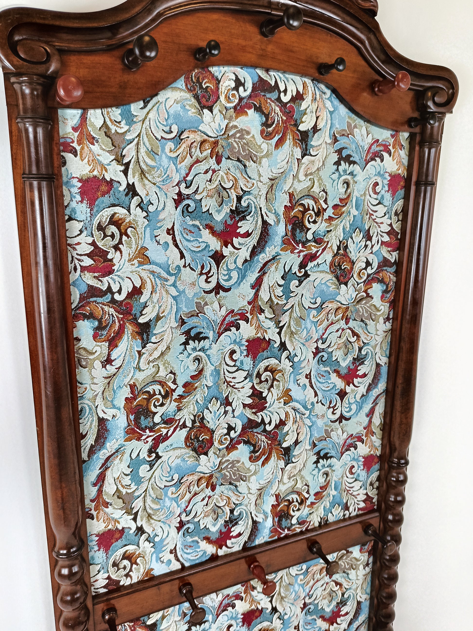 What truly sets this coat rack apart is its notorious fabric back, reminiscent of grand estates and opulent parlors. The luxurious fabric backdrop not only adds visual interest but also provides a soft cushion for your coats and garments, ensuring they remain in pristine condition.