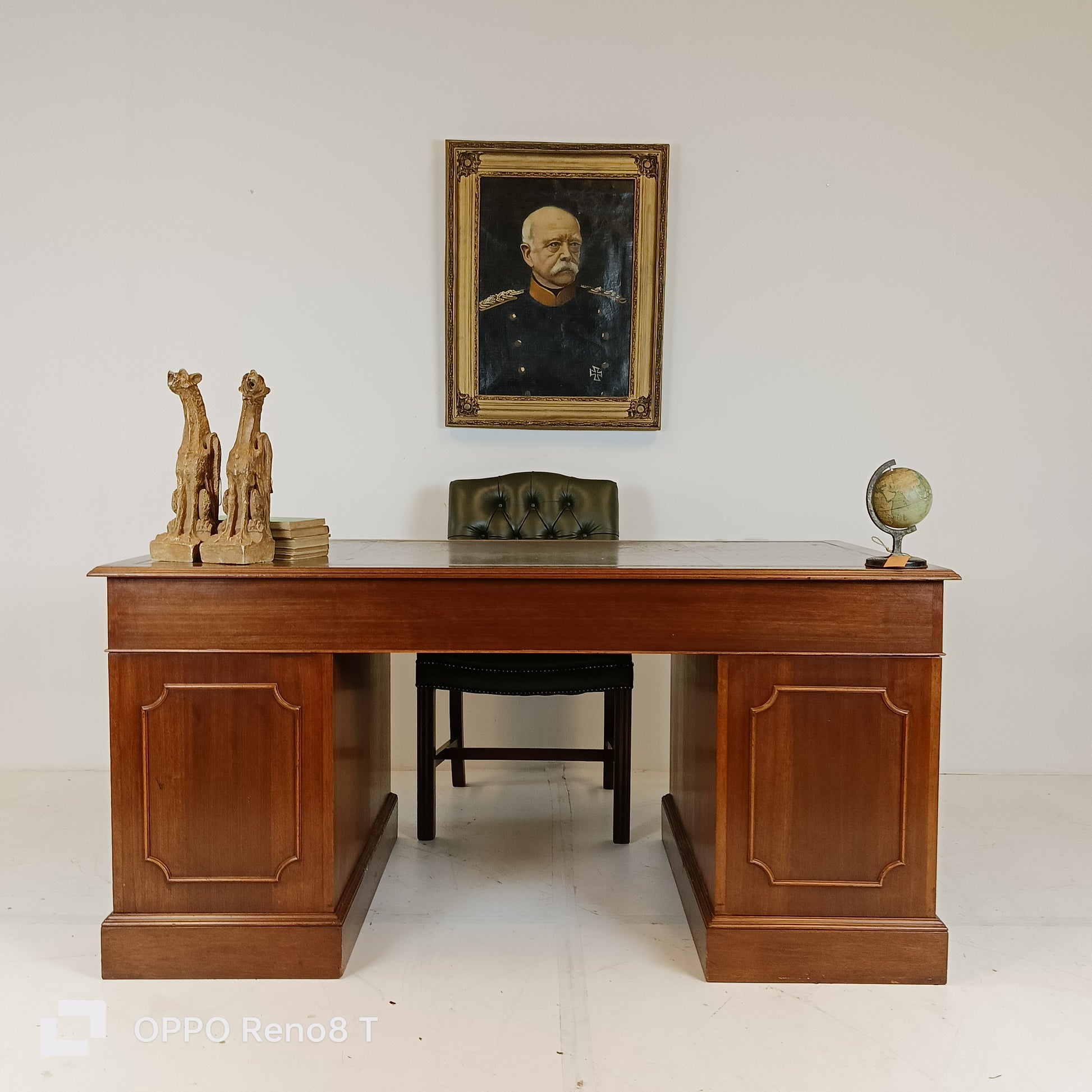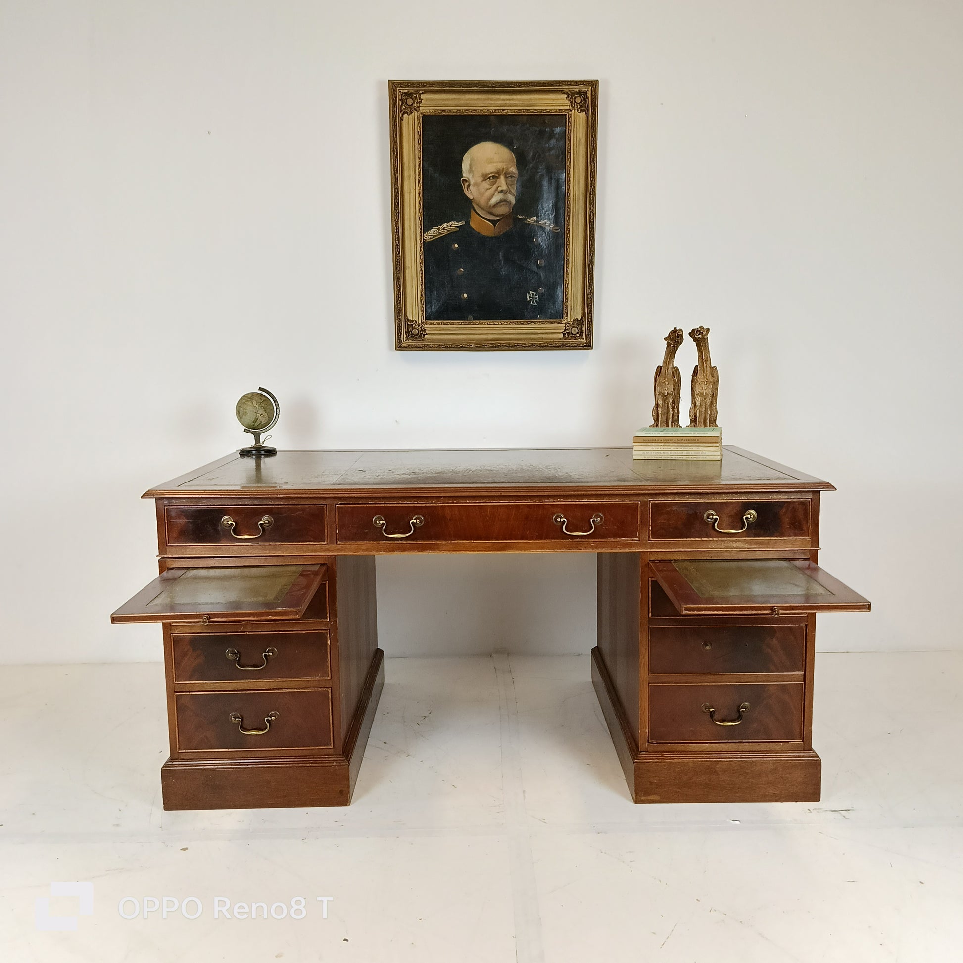 Classic English desk. Contains multiple drawers (nine) and has extendable blades on both sides.