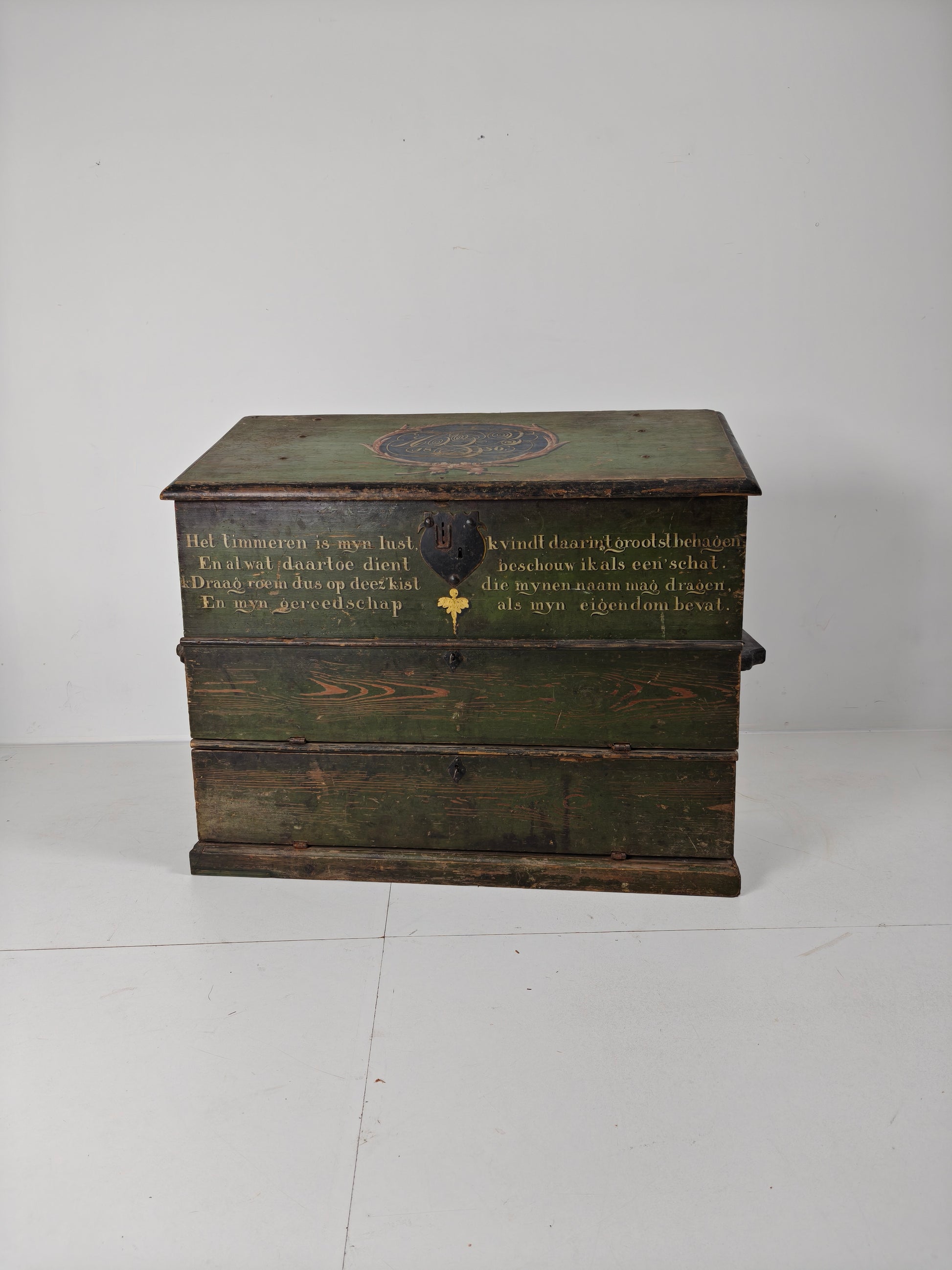 Dutch Hand-Painted Tool Chest | 1836 | Folk Art