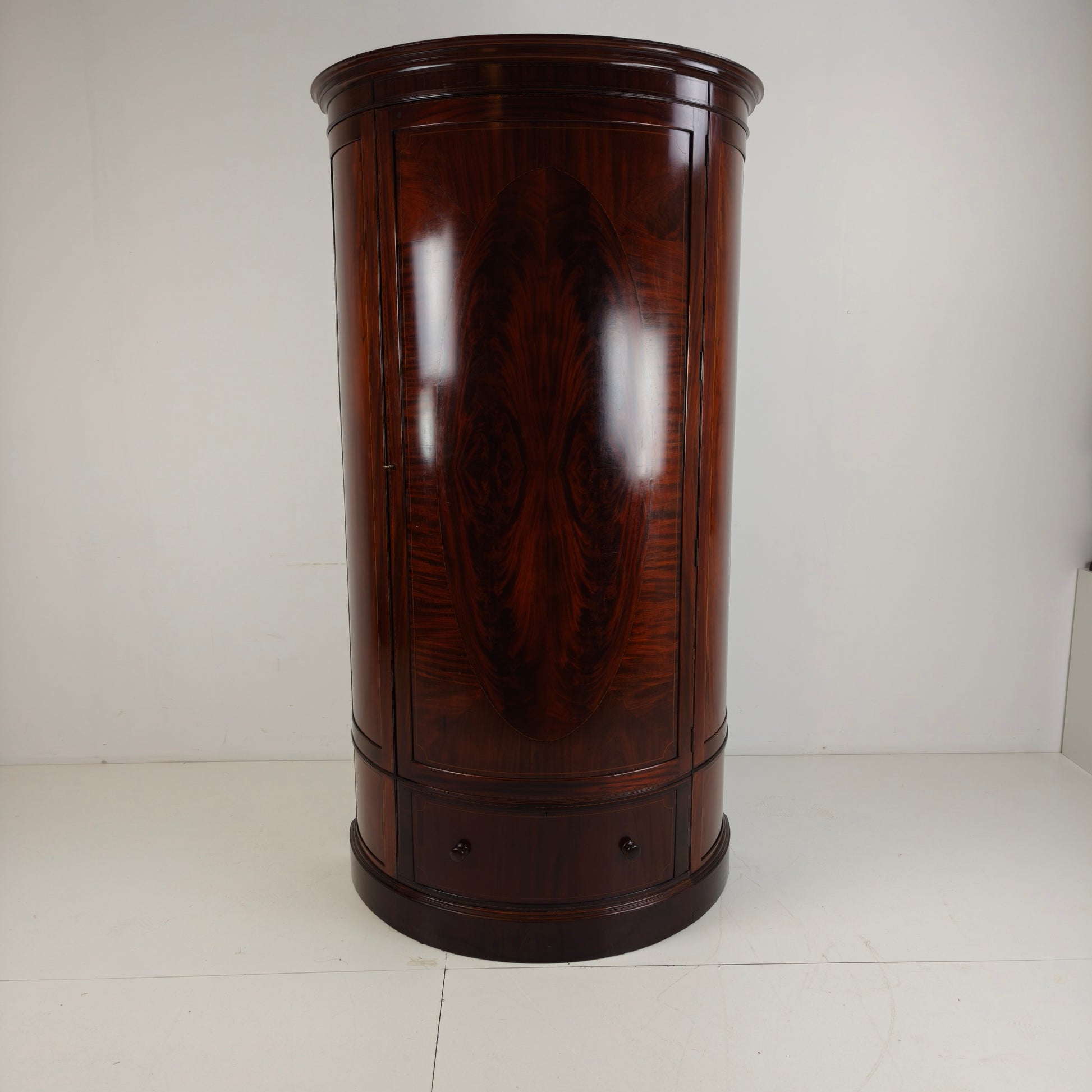 A fine Edwardian mahogany bow-fronted wardrobe by Maple & Co, dating from around 1910.