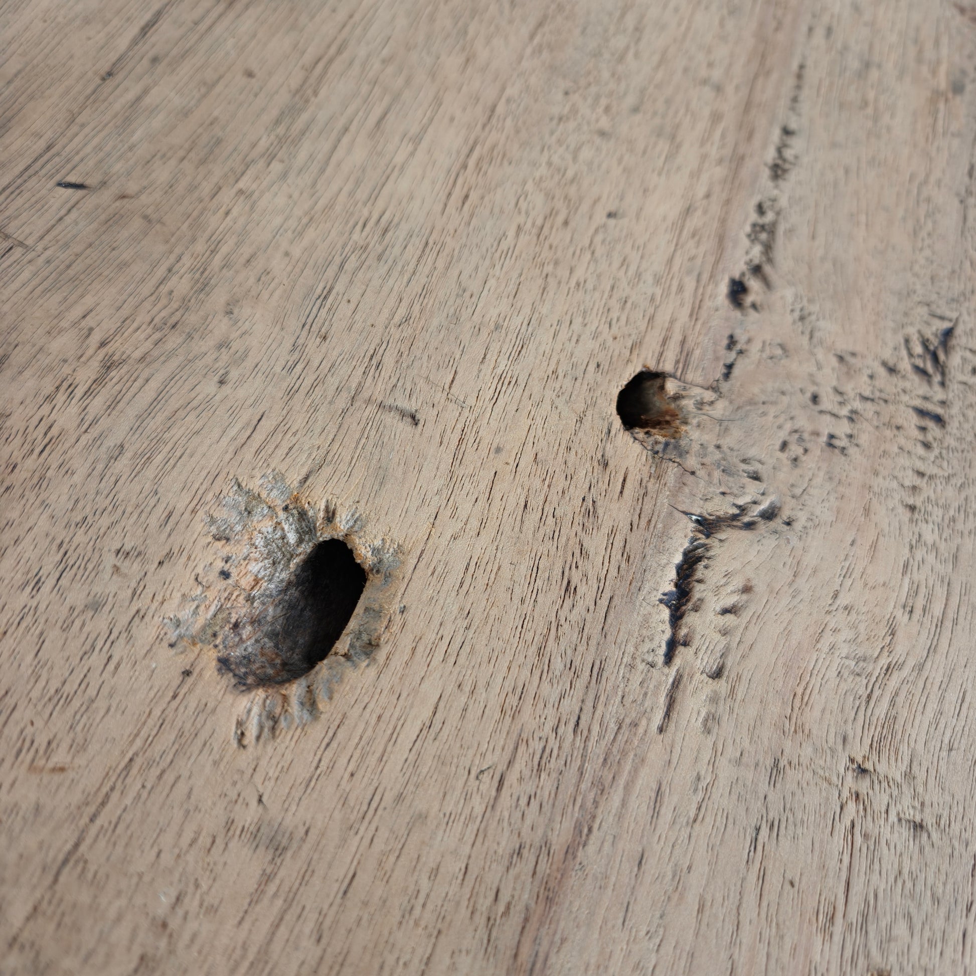 Solid oak with beautiful natural knots, one drawer, and a warm patina. Generous size (180 × 82 × 50 cm) – a timeless rustic centerpiece.