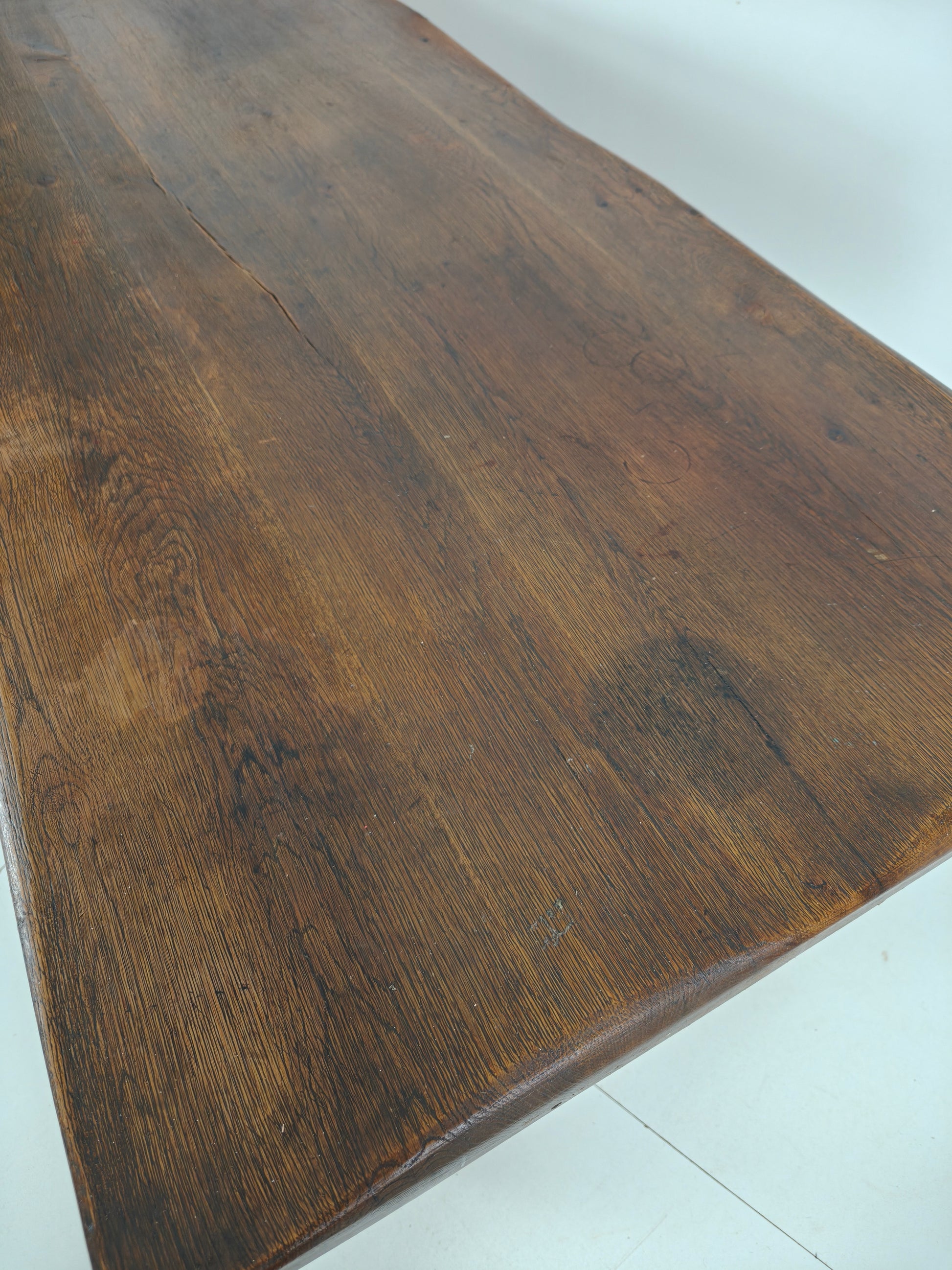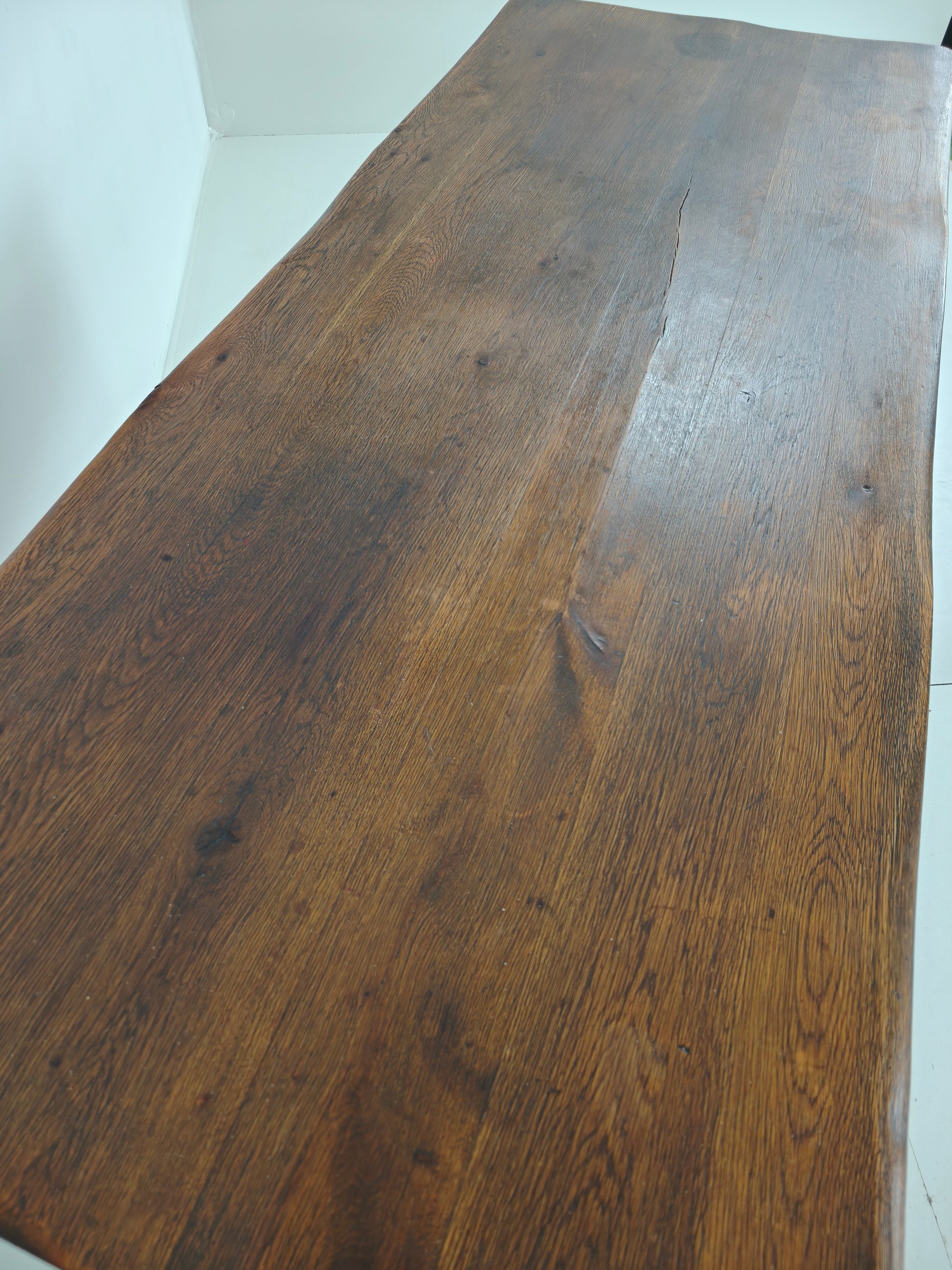 A sturdy and stylish piece that works perfectly as a dining table, kitchen table, or statement piece in any rustic or country interior. Has signs of wear consistant with age and use.