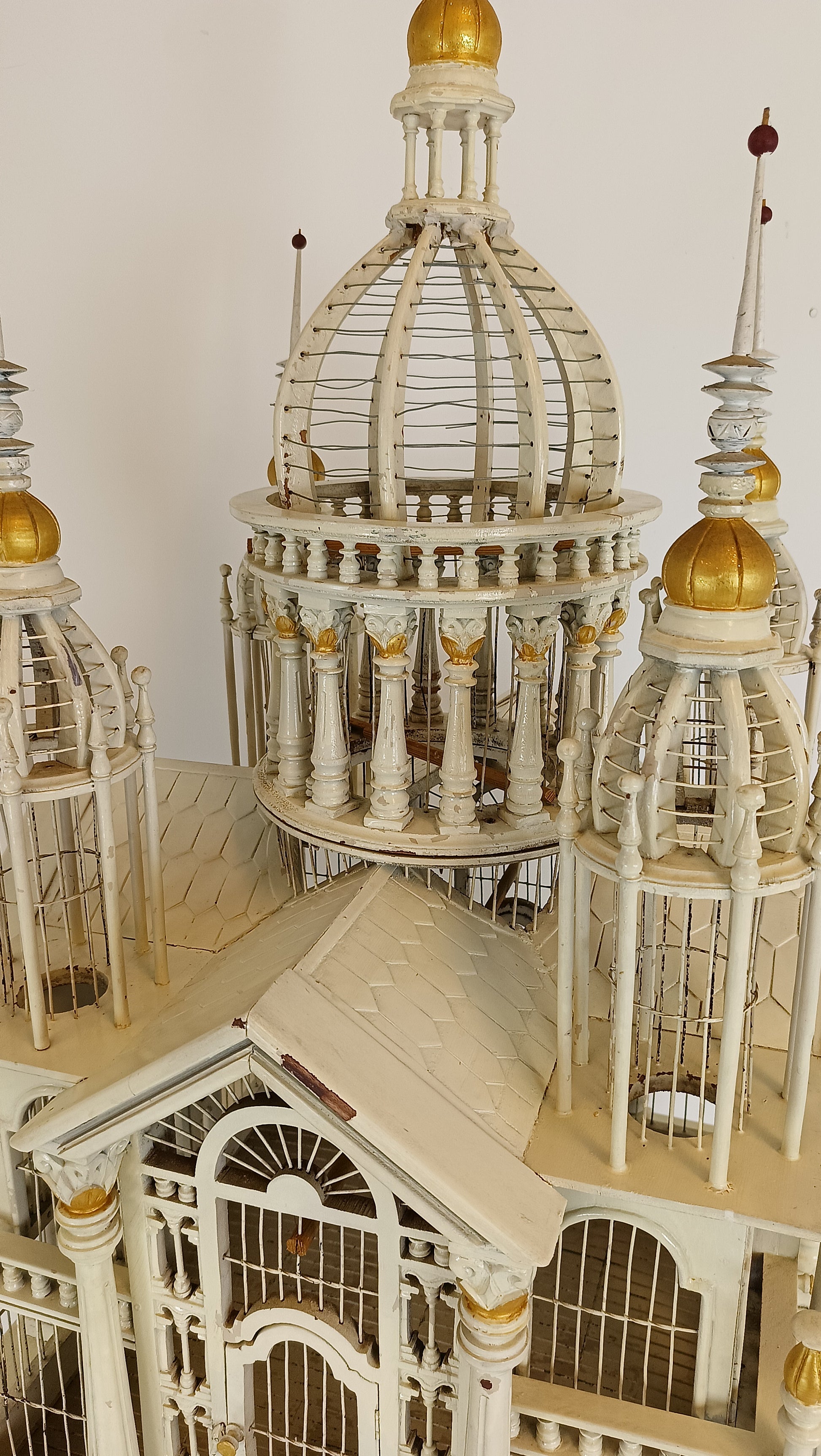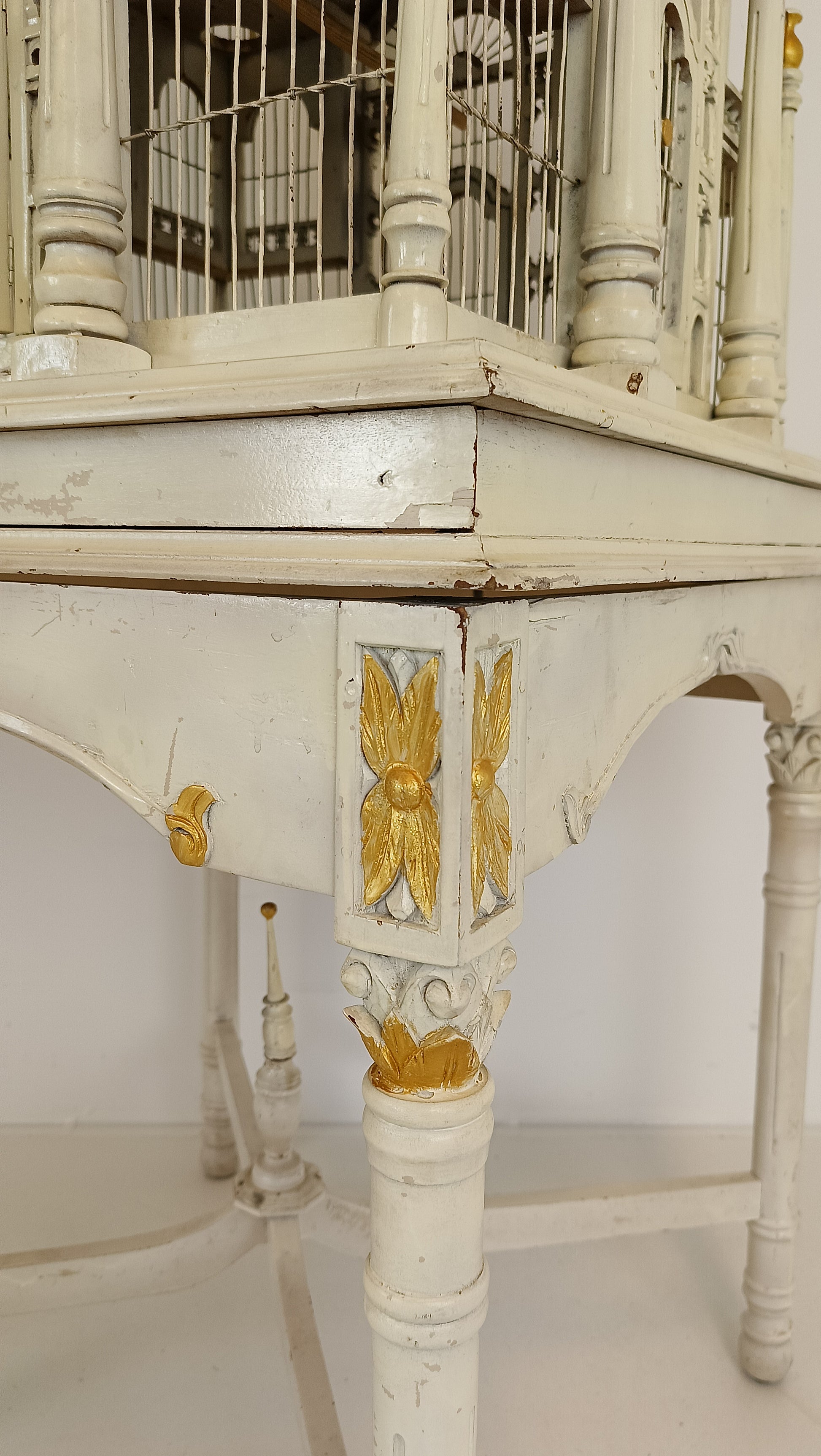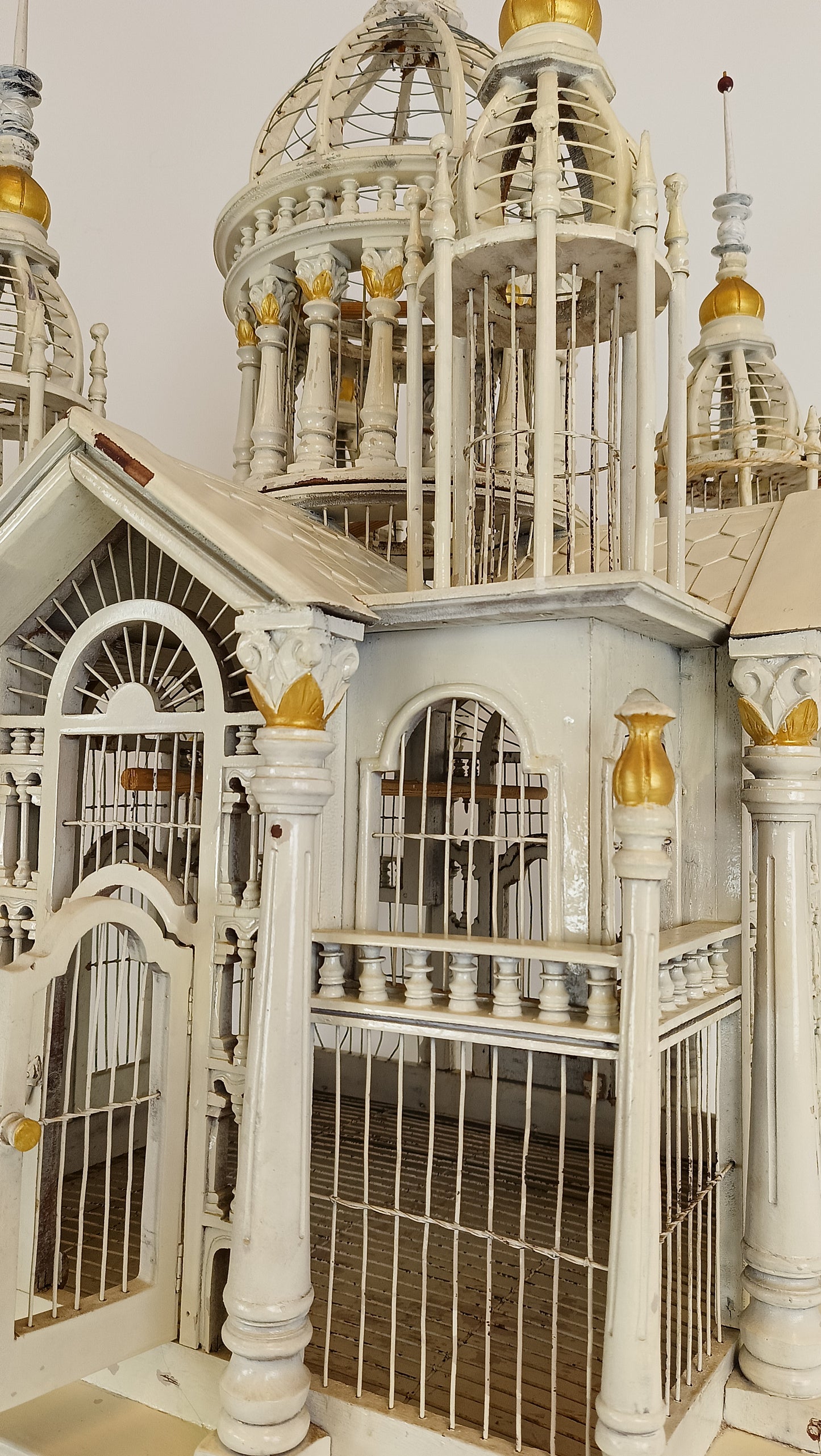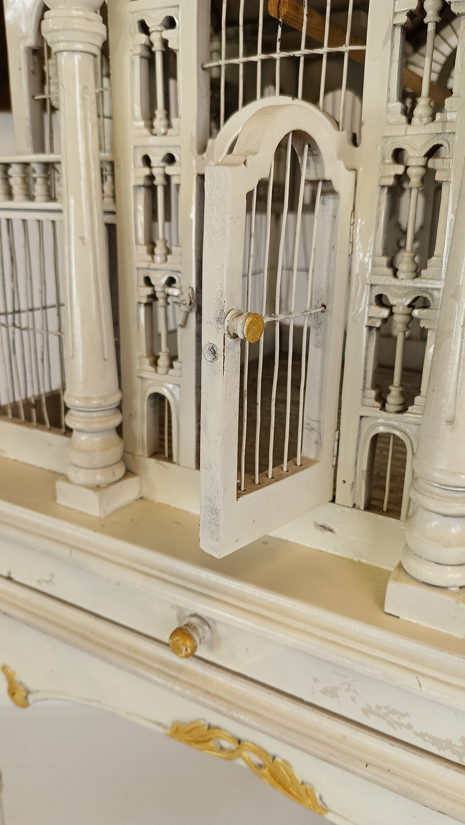 Introducing our exquisite Midcentury French Victorian Birdcage, a timeless piece that combines elegance and craftsmanship. This birdcage features intricate wrought iron detailing, reminiscent of the opulent Victorian era, while embracing the sleek lines and minimalist charm of midcentury design. Perfect for adding a touch of vintage to any home, this birdcage is not only a beautiful decorative item but also a functional haven for your feathered friends. Its durable construction ensures longevity. Elevate your decor with this stunning blend of history and style.