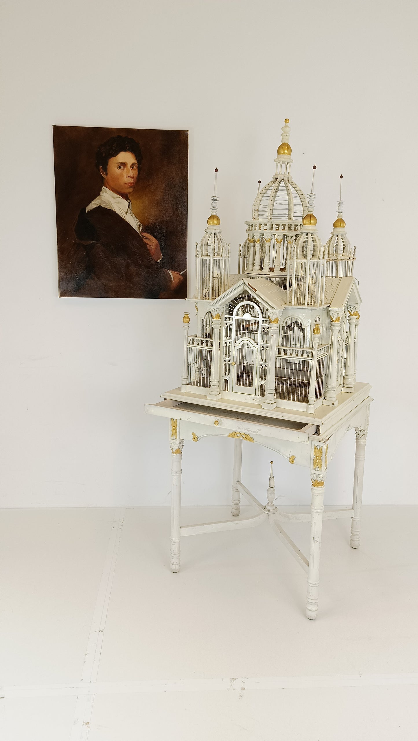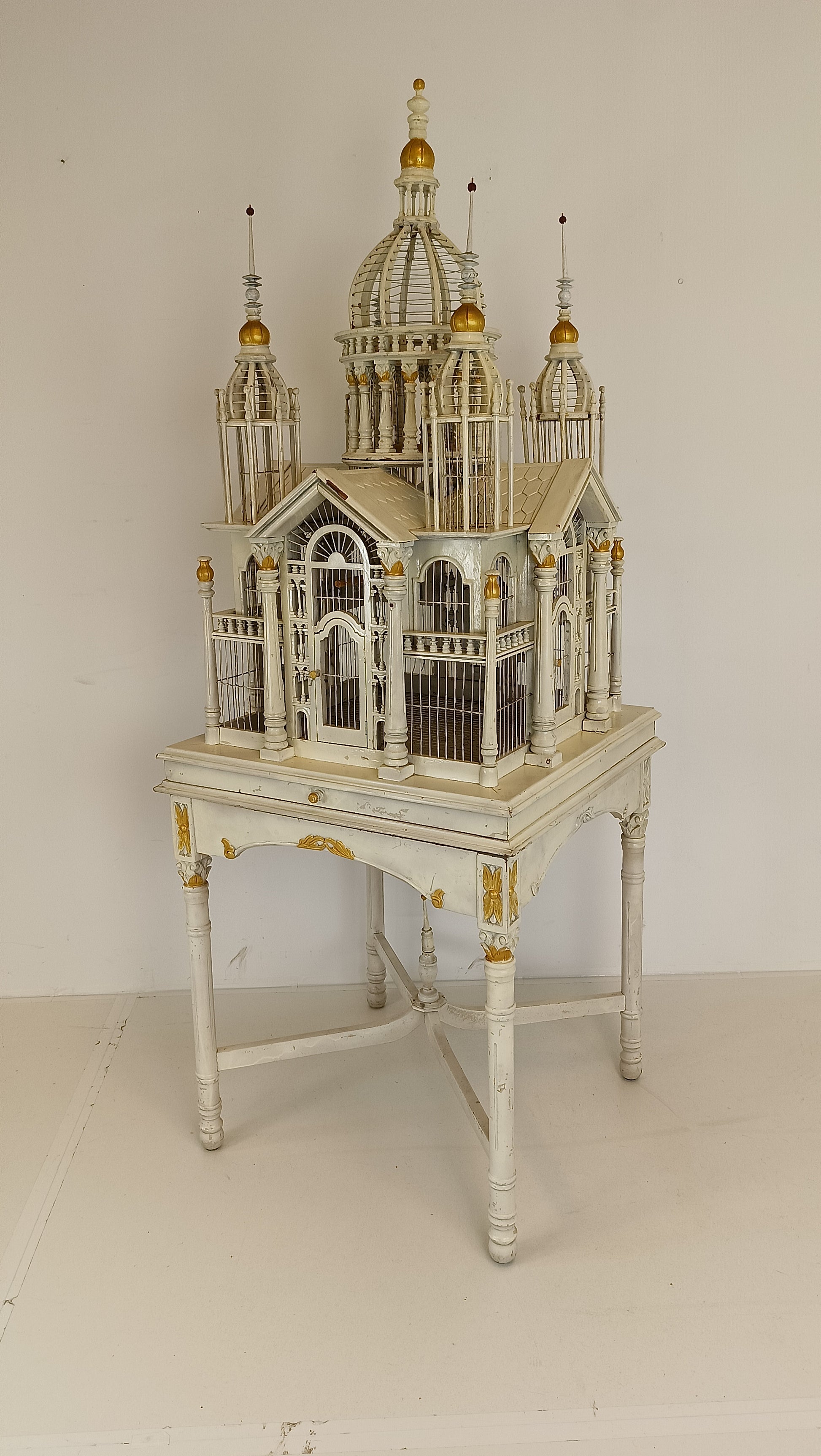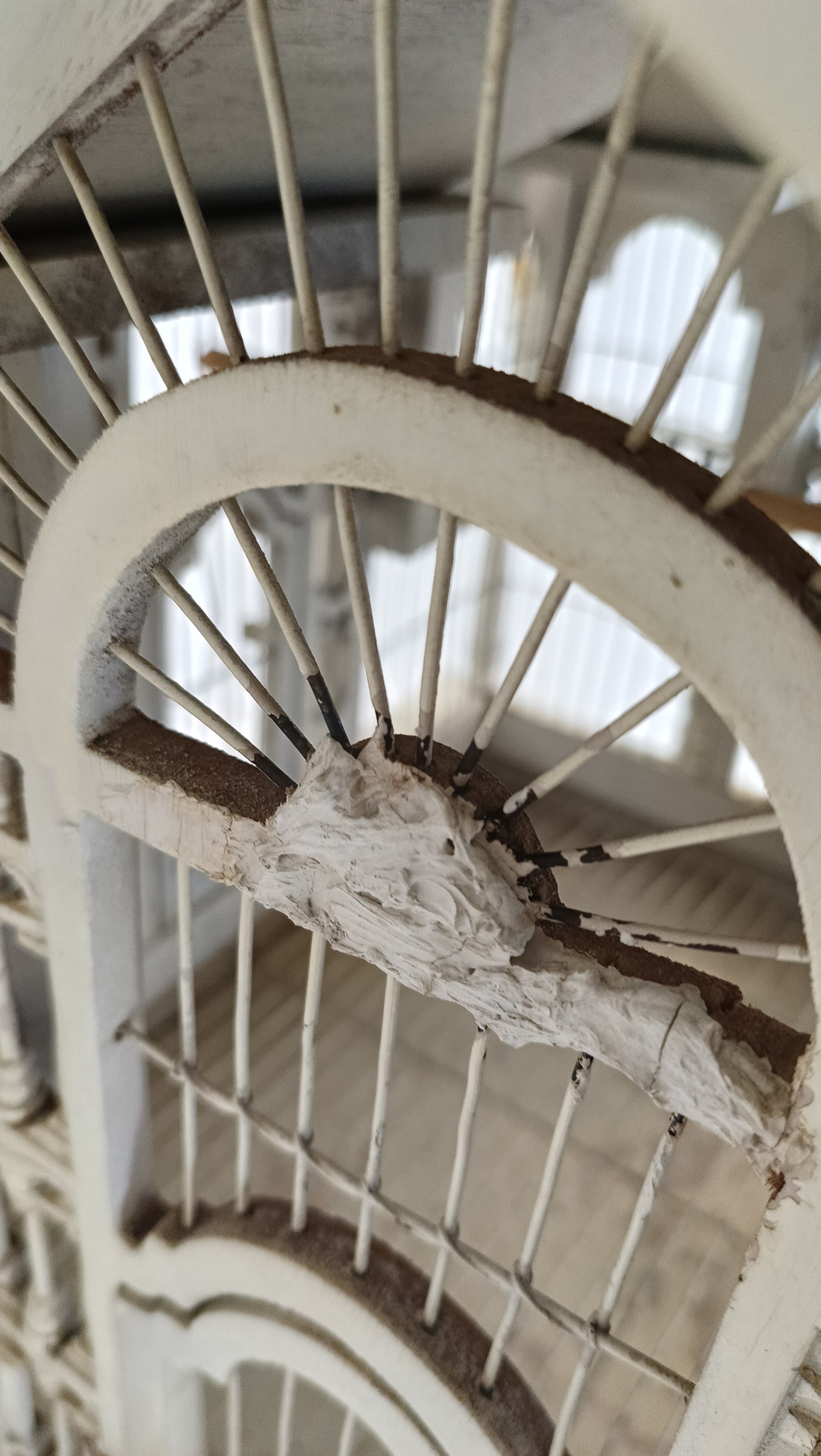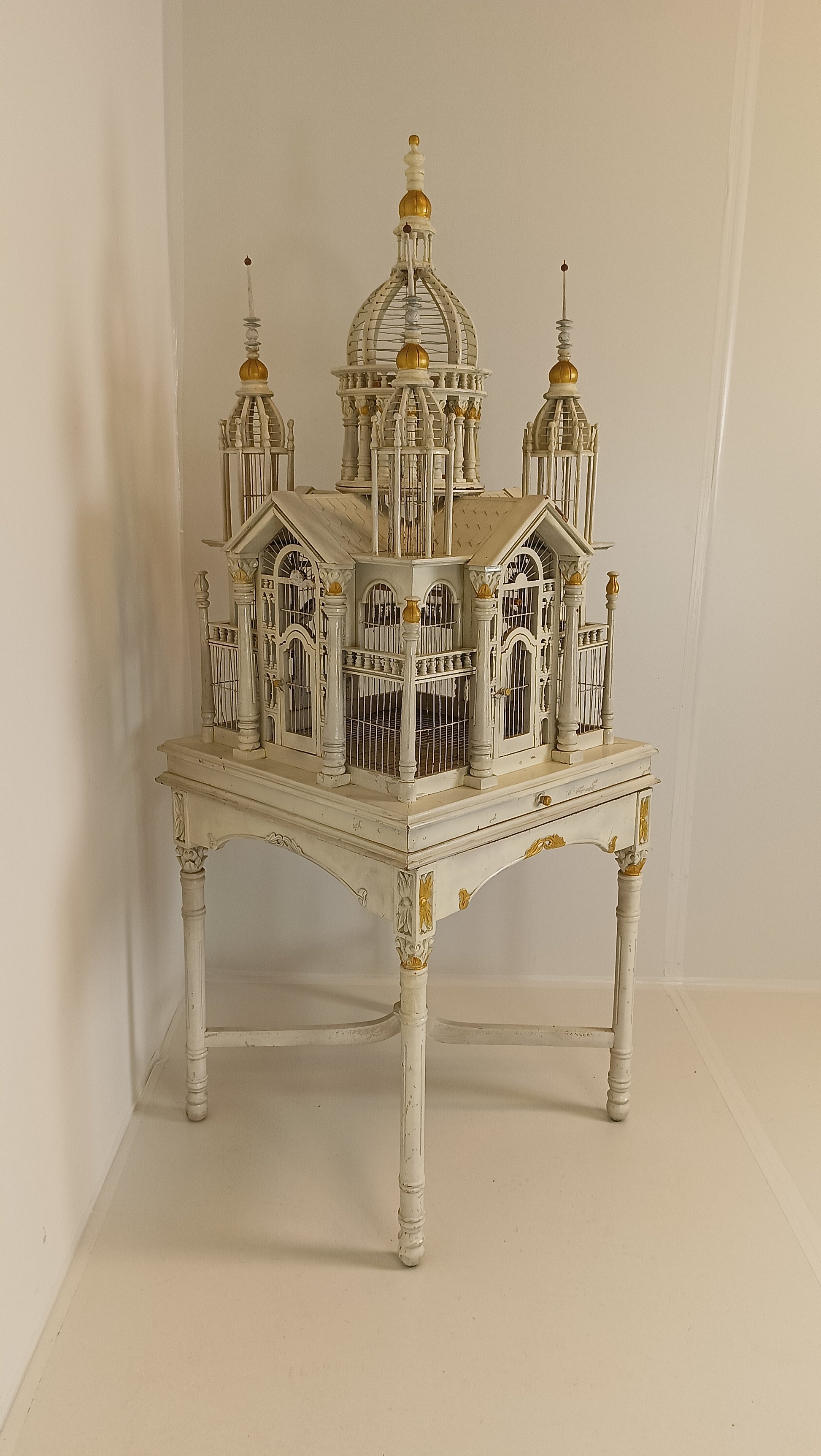 Introducing our exquisite Midcentury French Victorian Birdcage, a timeless piece that combines elegance and craftsmanship. This birdcage features intricate wrought iron detailing, reminiscent of the opulent Victorian era, while embracing the sleek lines and minimalist charm of midcentury design. Perfect for adding a touch of vintage to any home, this birdcage is not only a beautiful decorative item but also a functional haven for your feathered friends. Its durable construction ensures longevity. Elevate your decor with this stunning blend of history and style.