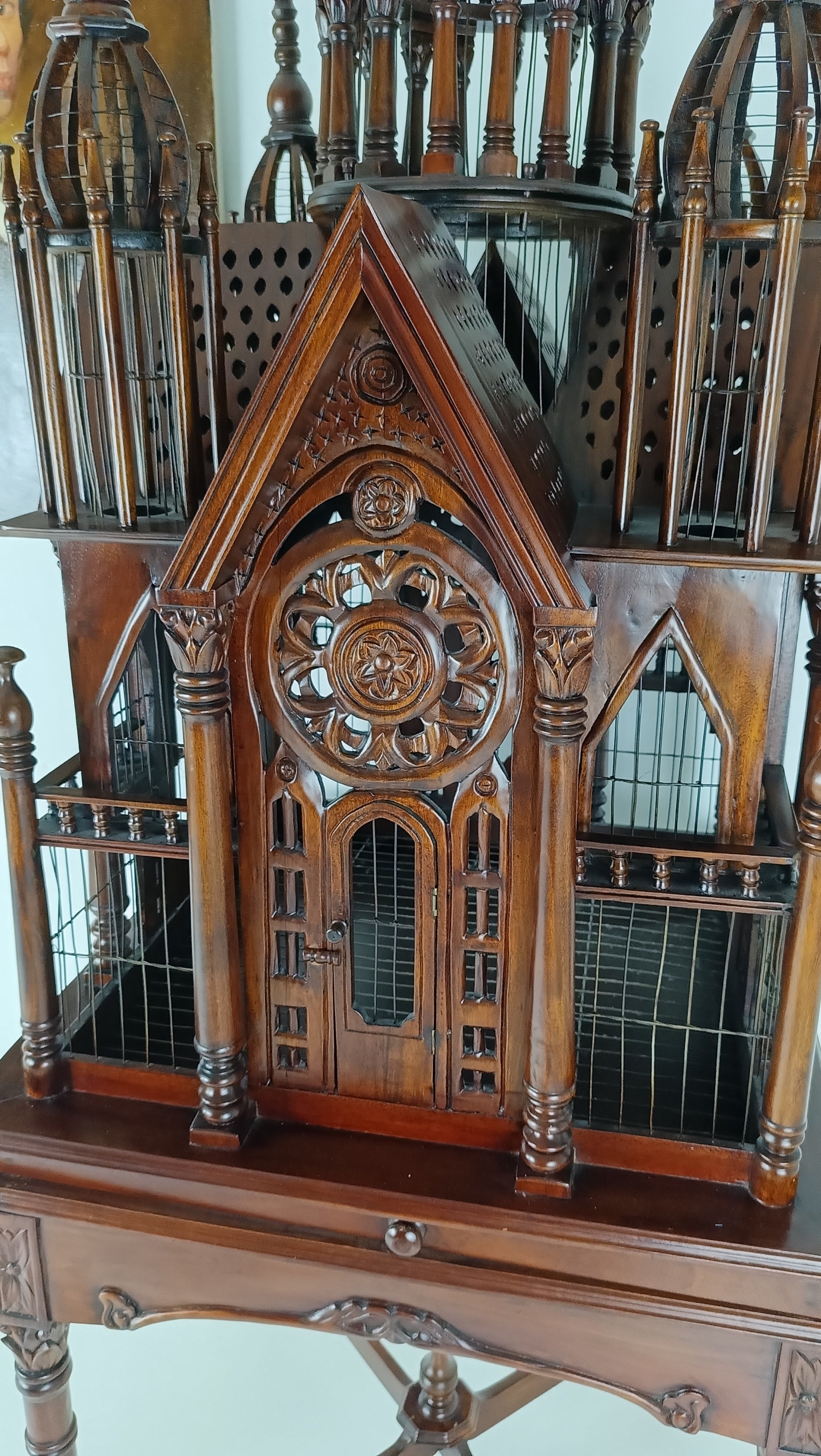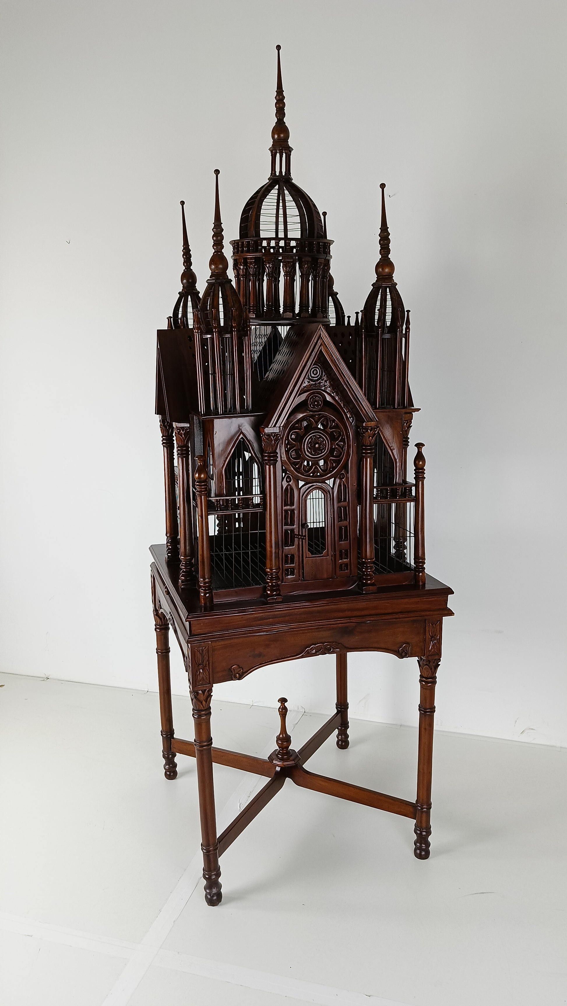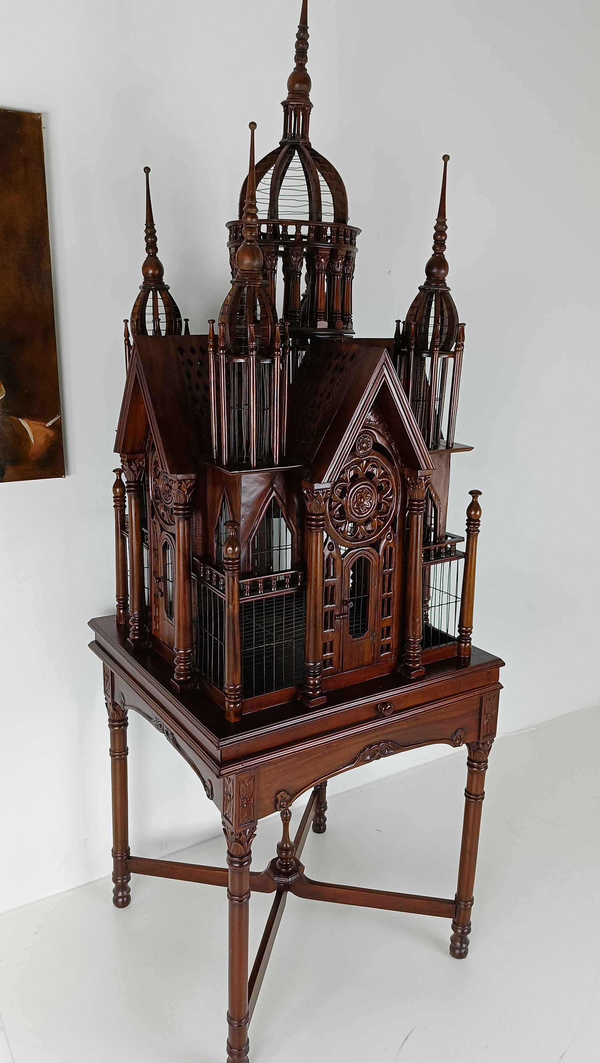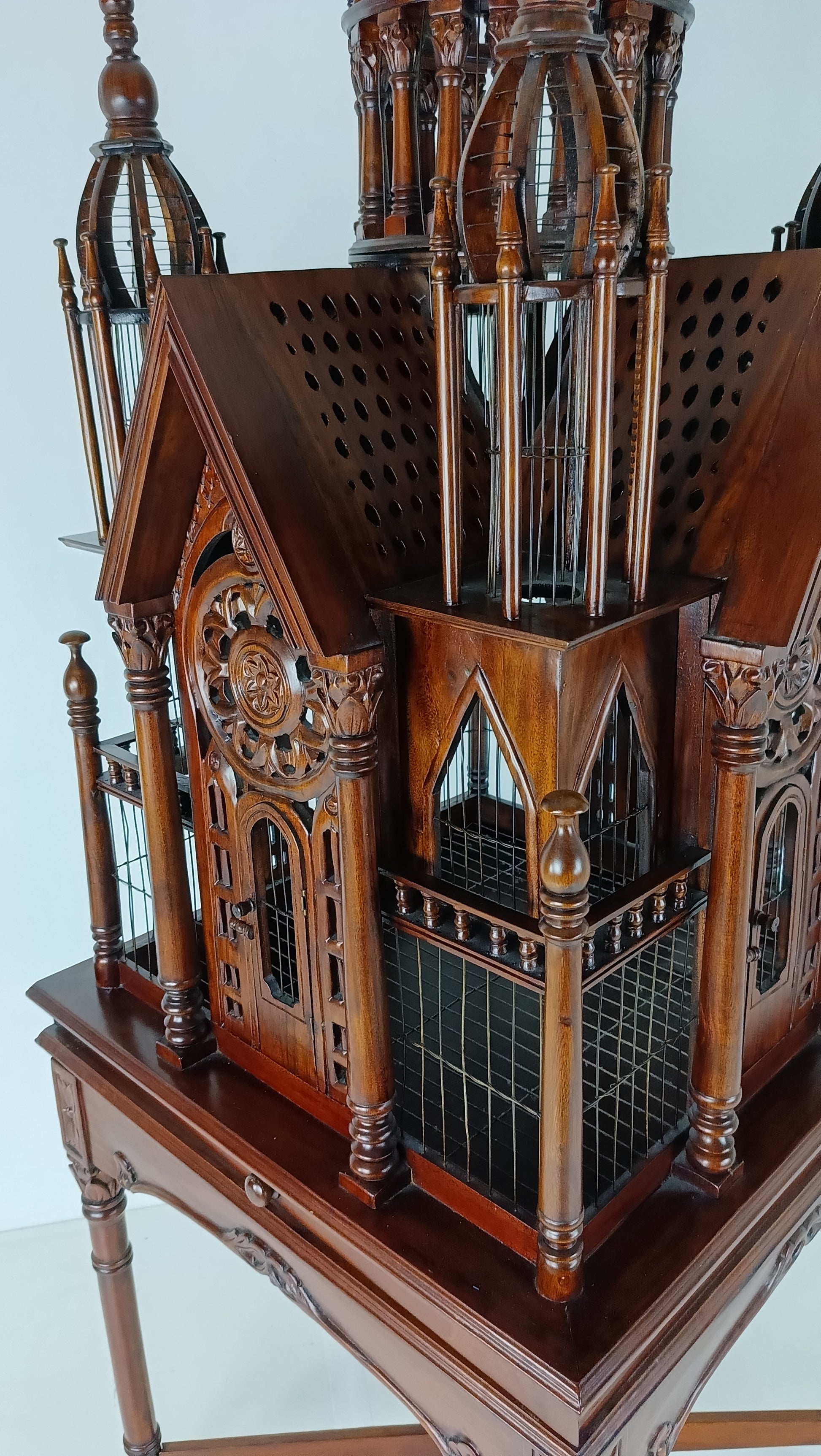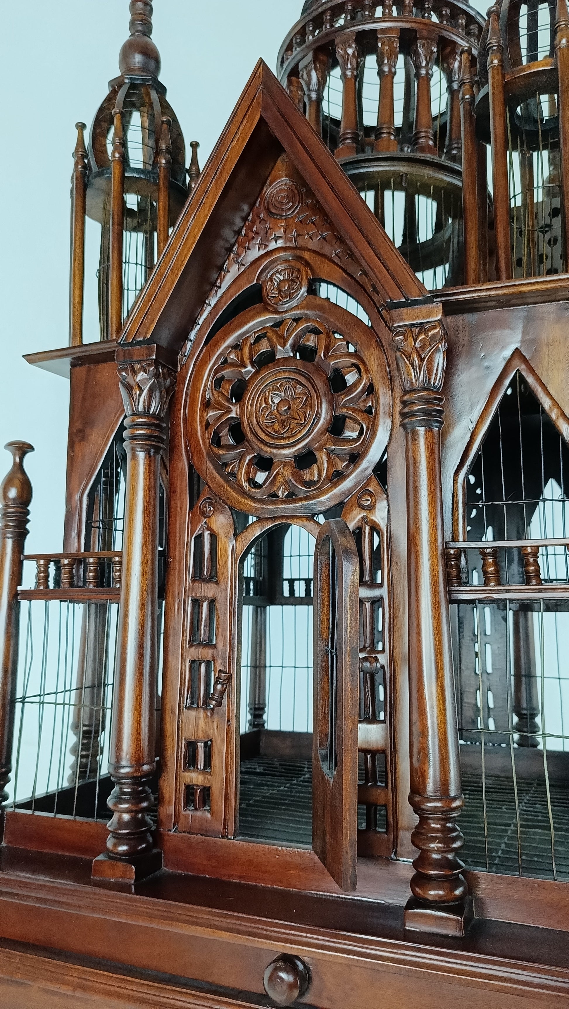 Introducing our exquisite Midcentury French Victorian style birdcage, a timeless piece that combines elegance and craftsmanship. This birdcage features intricate wrought iron detailing, reminiscent of the opulent Victorian era, while embracing the sleek lines and minimalist charm of midcentury design. Perfect for adding a touch of vintage to any home, this birdcage is not only a beautiful decorative item but also a functional haven for your feathered friends. Its durable construction ensures longevity. Elevate your decor with this stunning blend of history and style.
