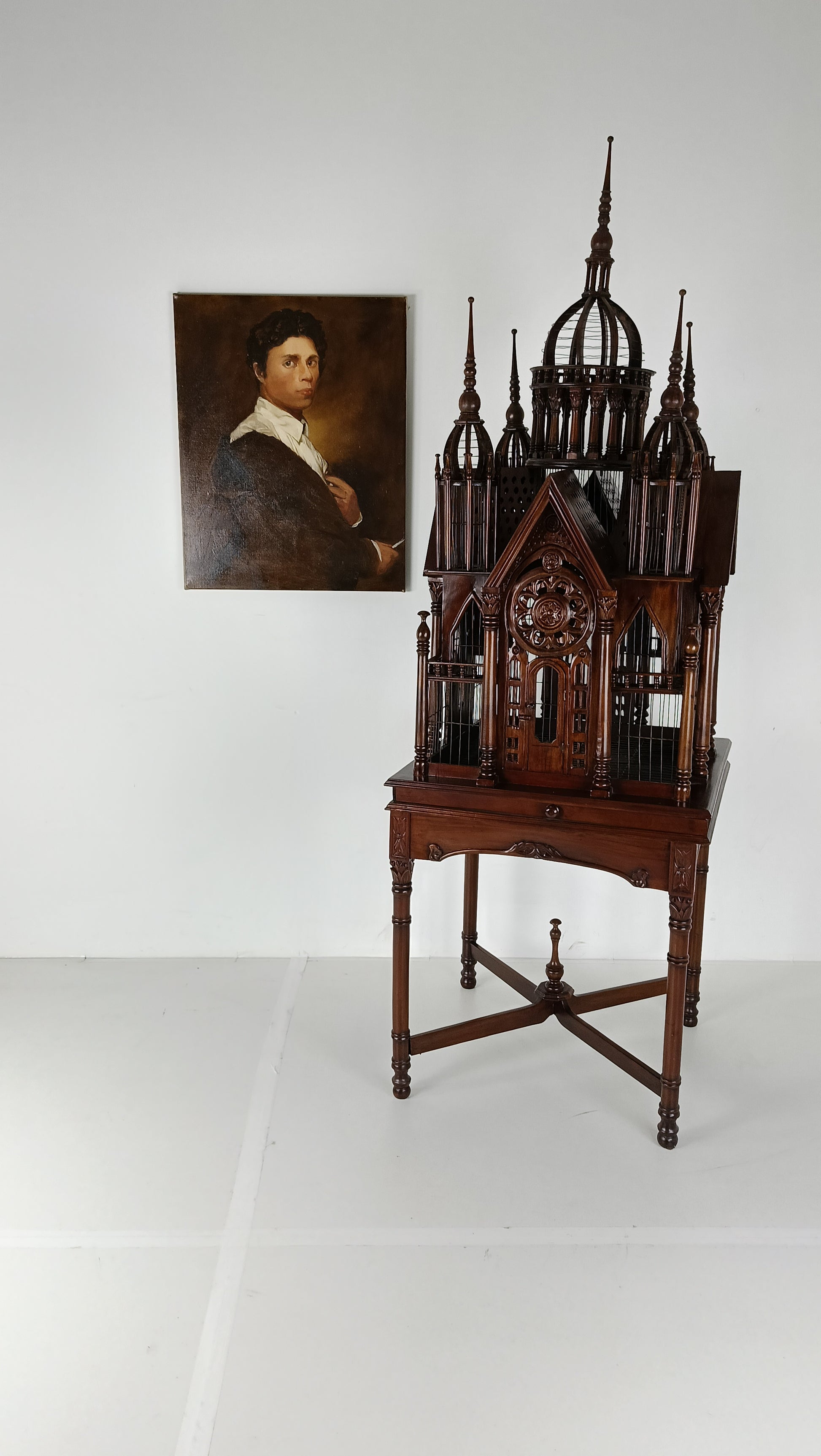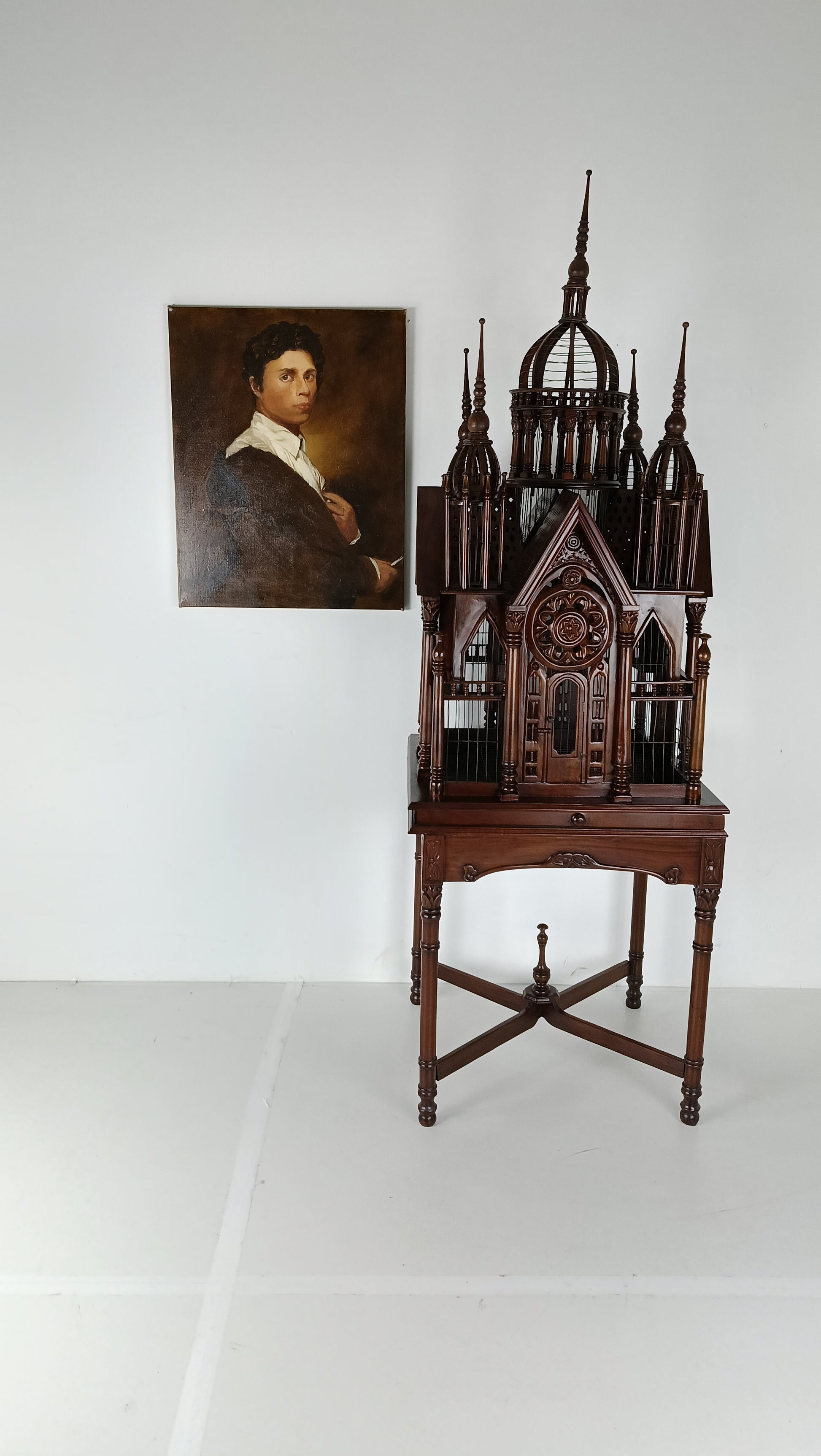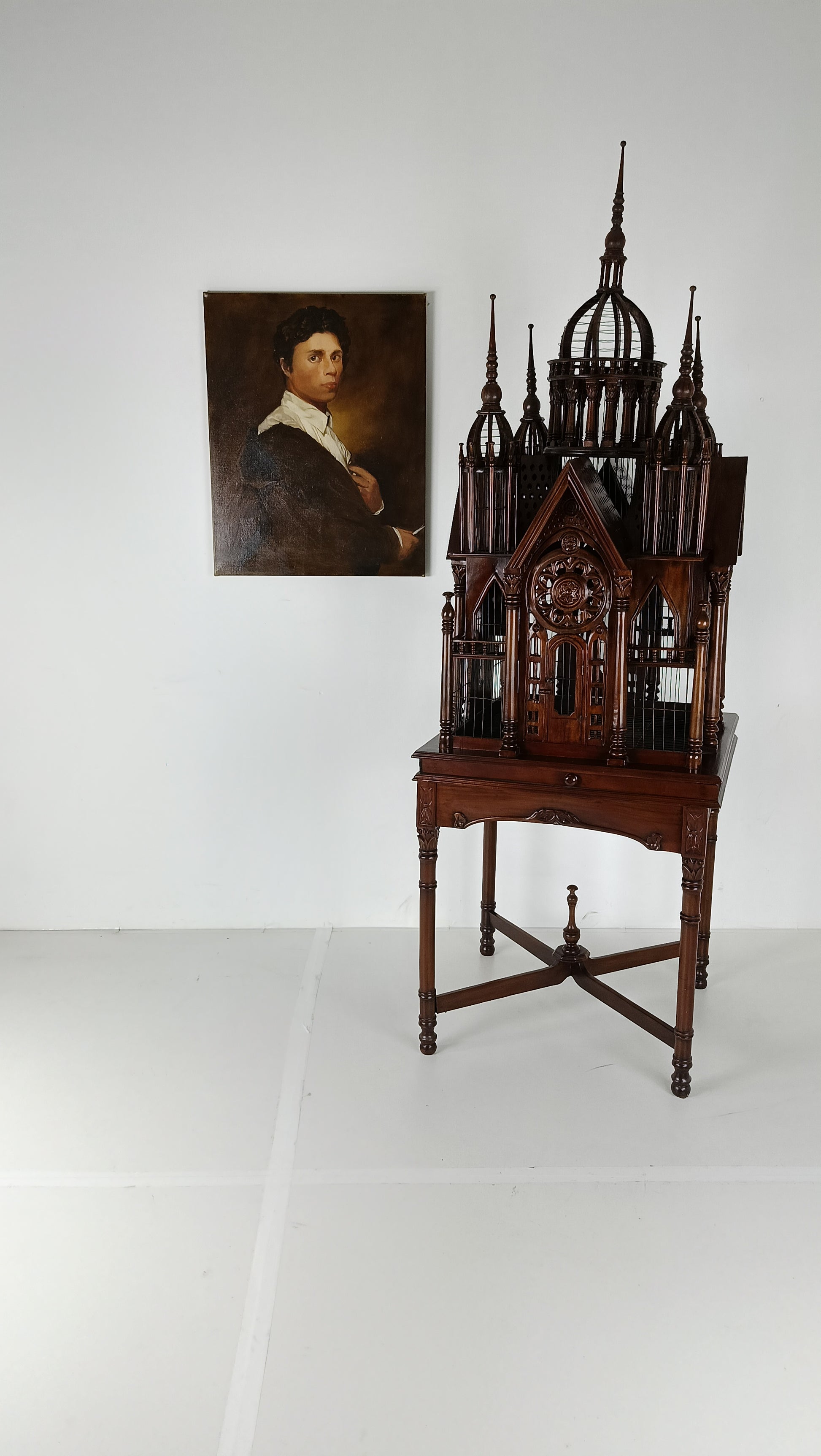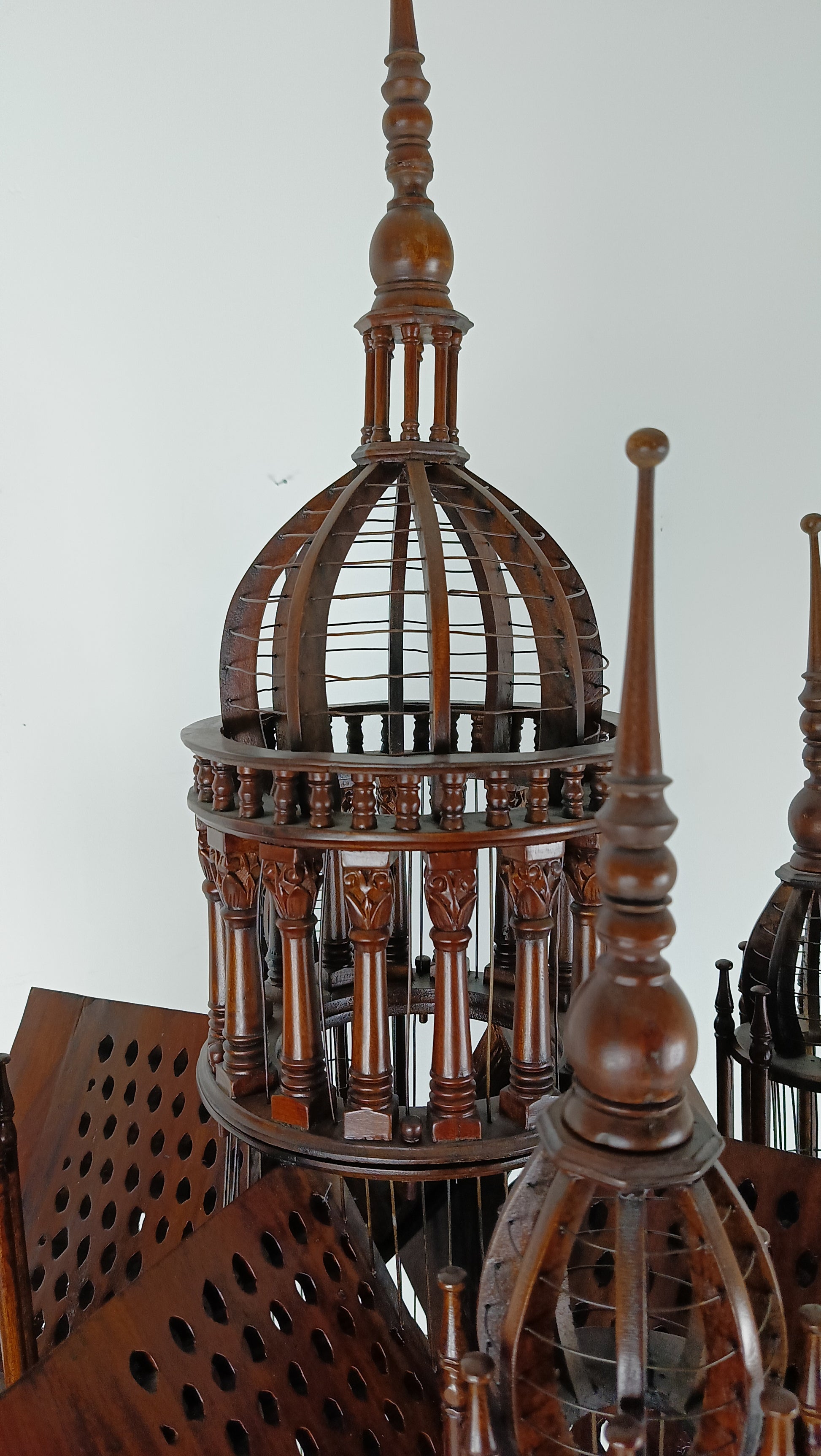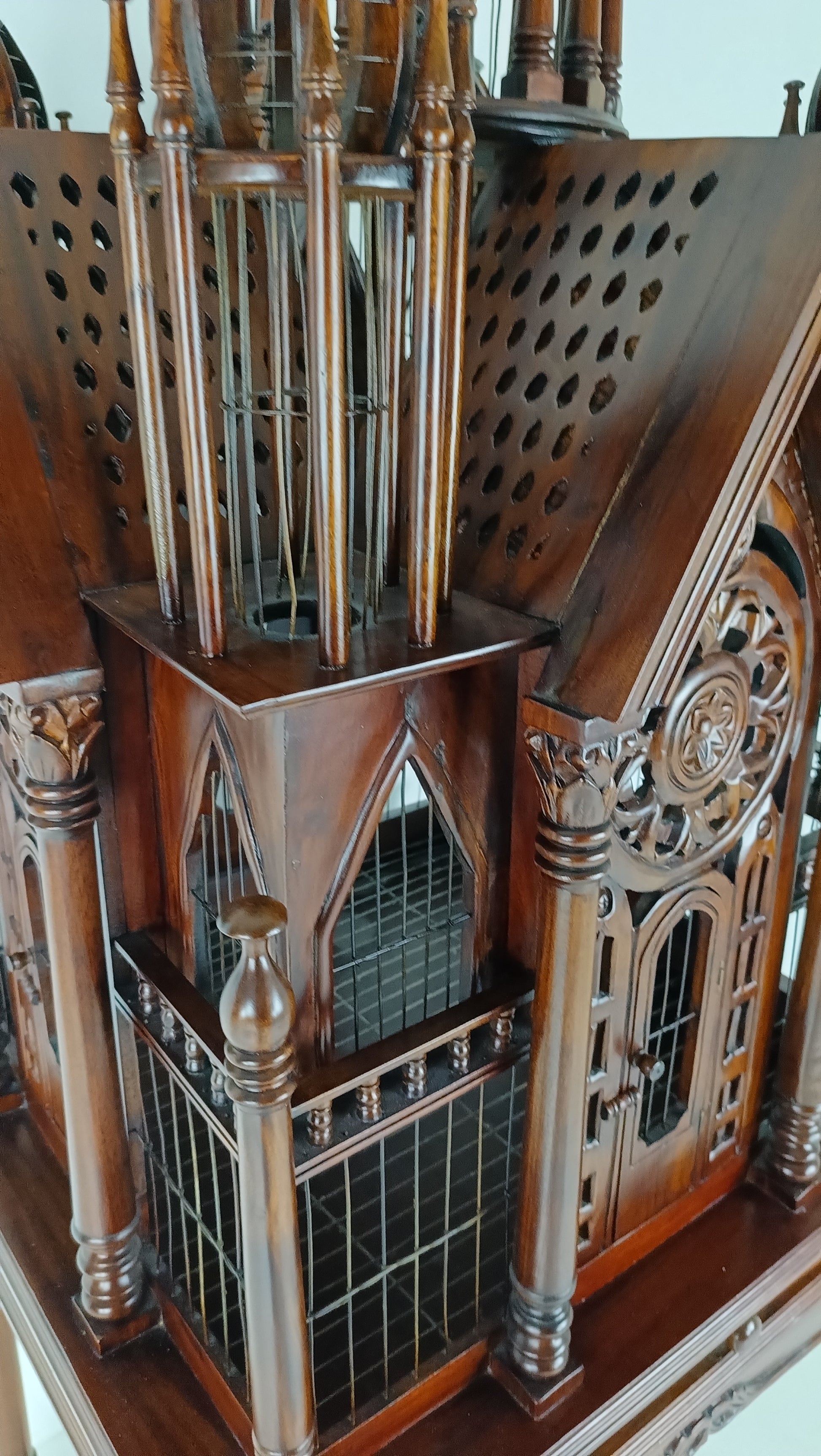 Introducing our exquisite Midcentury French Victorian style birdcage, a timeless piece that combines elegance and craftsmanship. This birdcage features intricate wrought iron detailing, reminiscent of the opulent Victorian era, while embracing the sleek lines and minimalist charm of midcentury design. Perfect for adding a touch of vintage to any home, this birdcage is not only a beautiful decorative item but also a functional haven for your feathered friends. Its durable construction ensures longevity. Elevate your decor with this stunning blend of history and style.