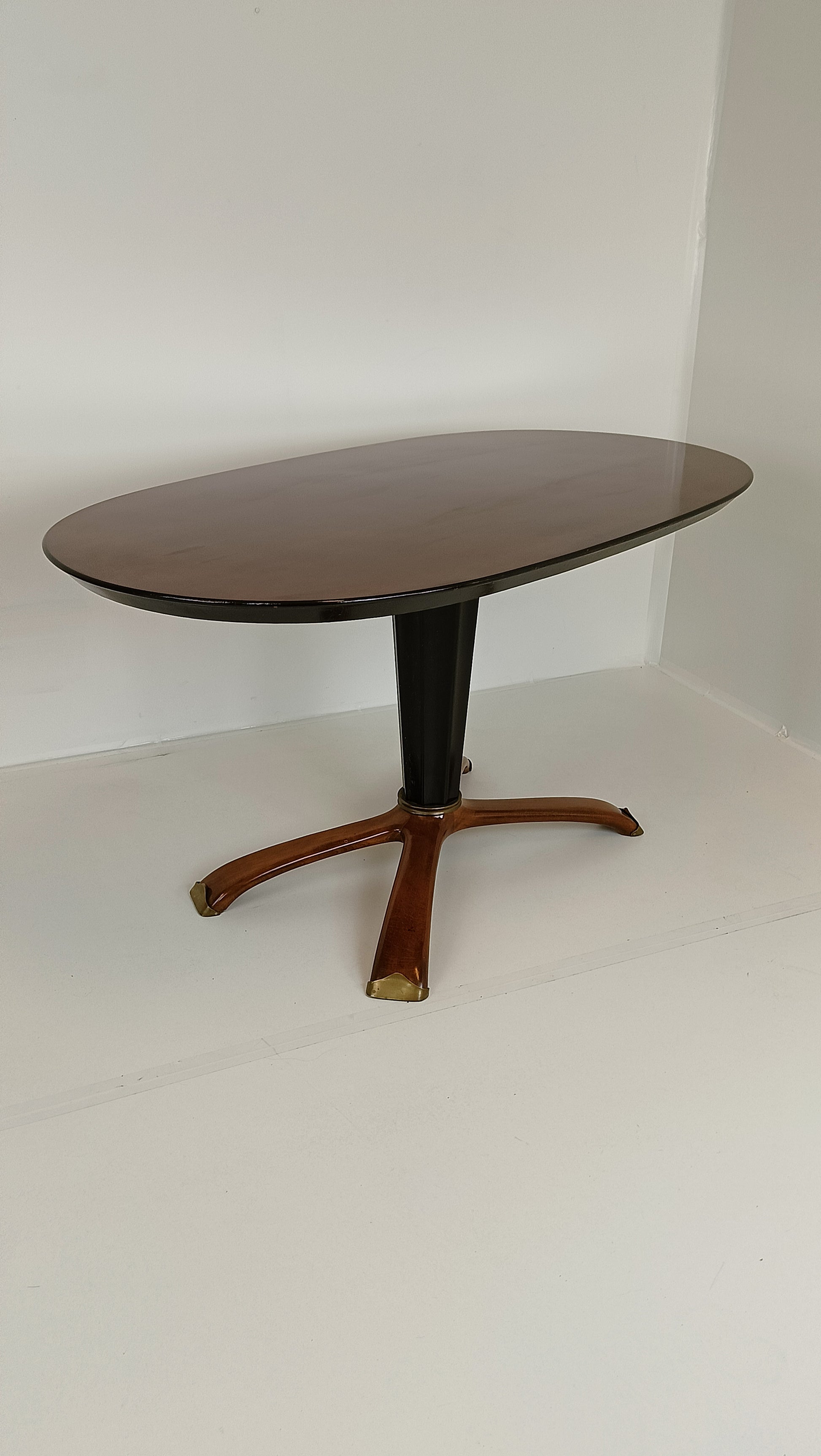 This beautiful classic vintage Italian table exudes timeless elegance and charm. Designed to accommodate 4-6 chairs, it serves as the perfect centerpiece for gatherings and meals with loved ones. The tabletop has been meticulously treated and cleaned, ensuring a pristine surface for dining and entertaining. The table's feet feature intricate copper details, adding a touch of elegance and visual interest. While displaying some signs of use, as depicted in the accompanying pictures, these only enhance its character and tell the story of its journey through time.