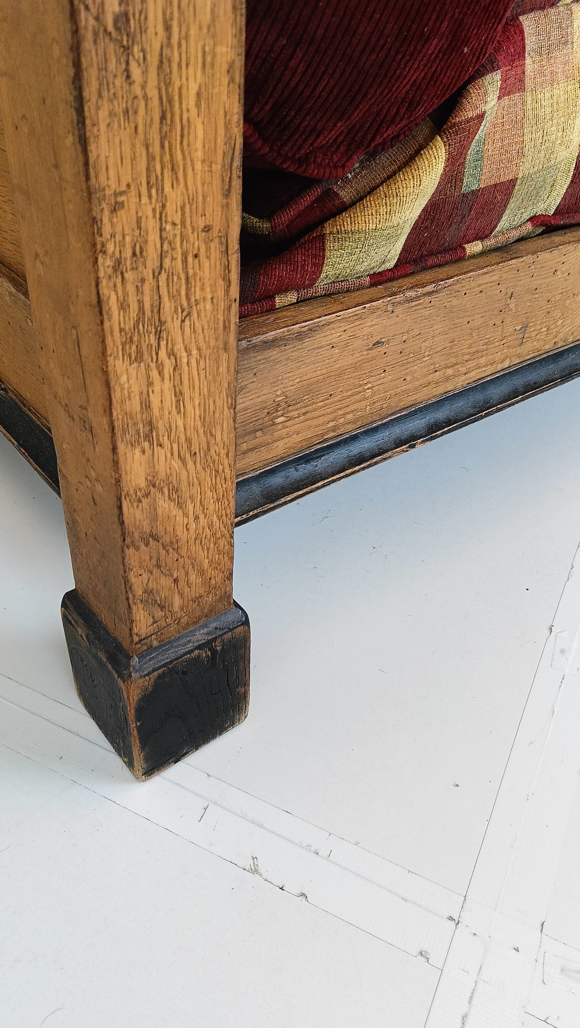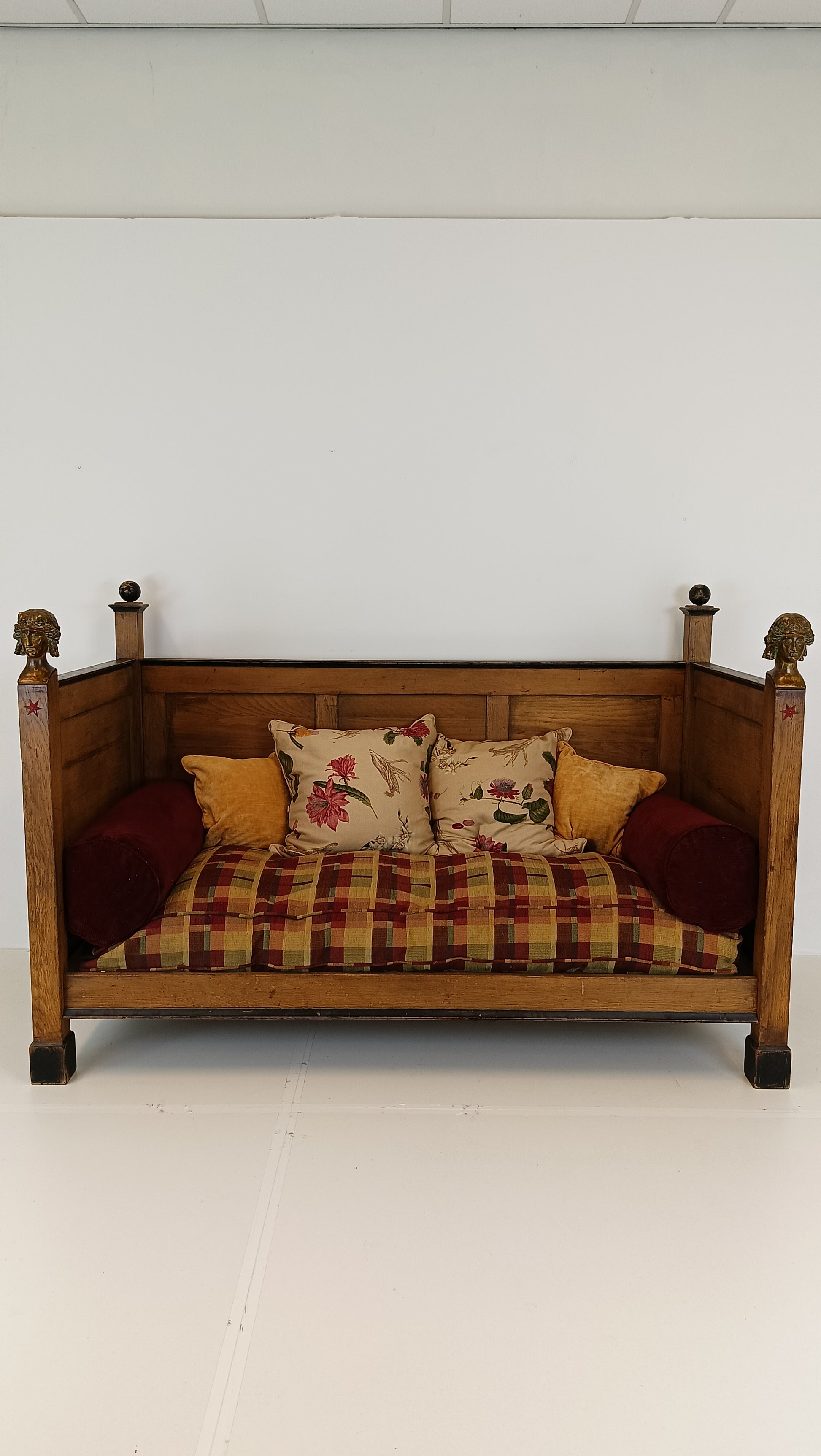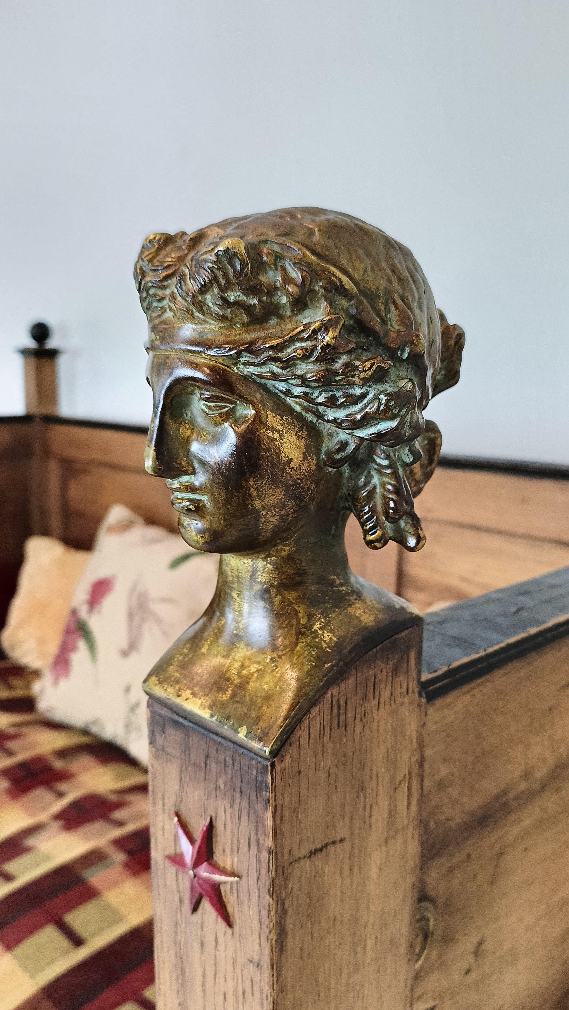 An Empire style sofa, which can function as both a bed and a sofa, exemplifies robust construction and elegant design. Characterized by its neoclassical aesthetic, this piece often features two distinctive bronze heads on the front, adding a touch of opulence and historical charm. The sturdy build ensures durability, while the luxurious materials and refined details reflect the grandeur of the Empire period. Ideal for those who appreciate both form and function, this versatile piece seamlessly blends practical use with this timeless item.