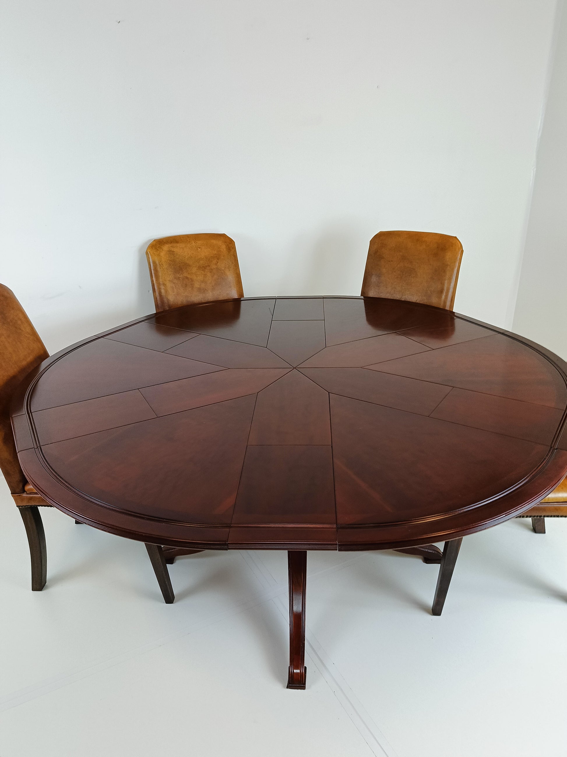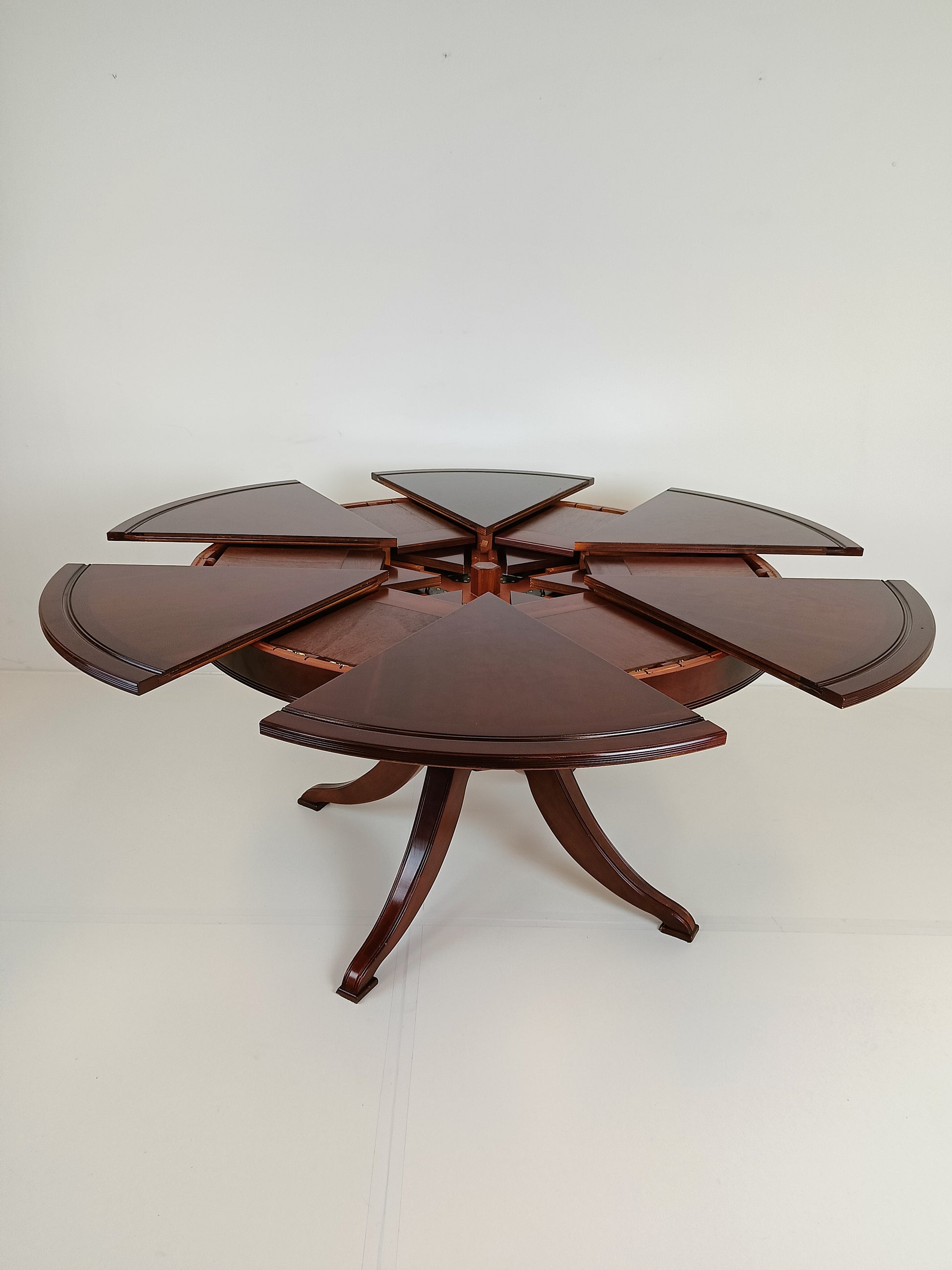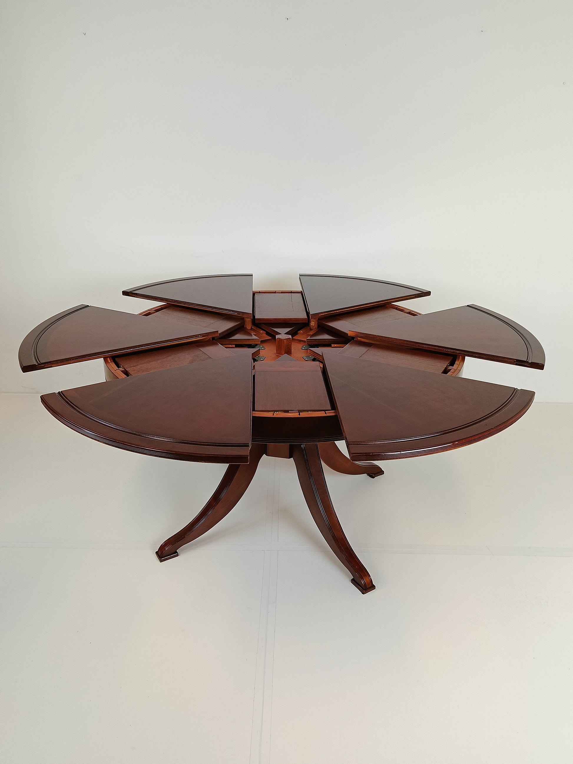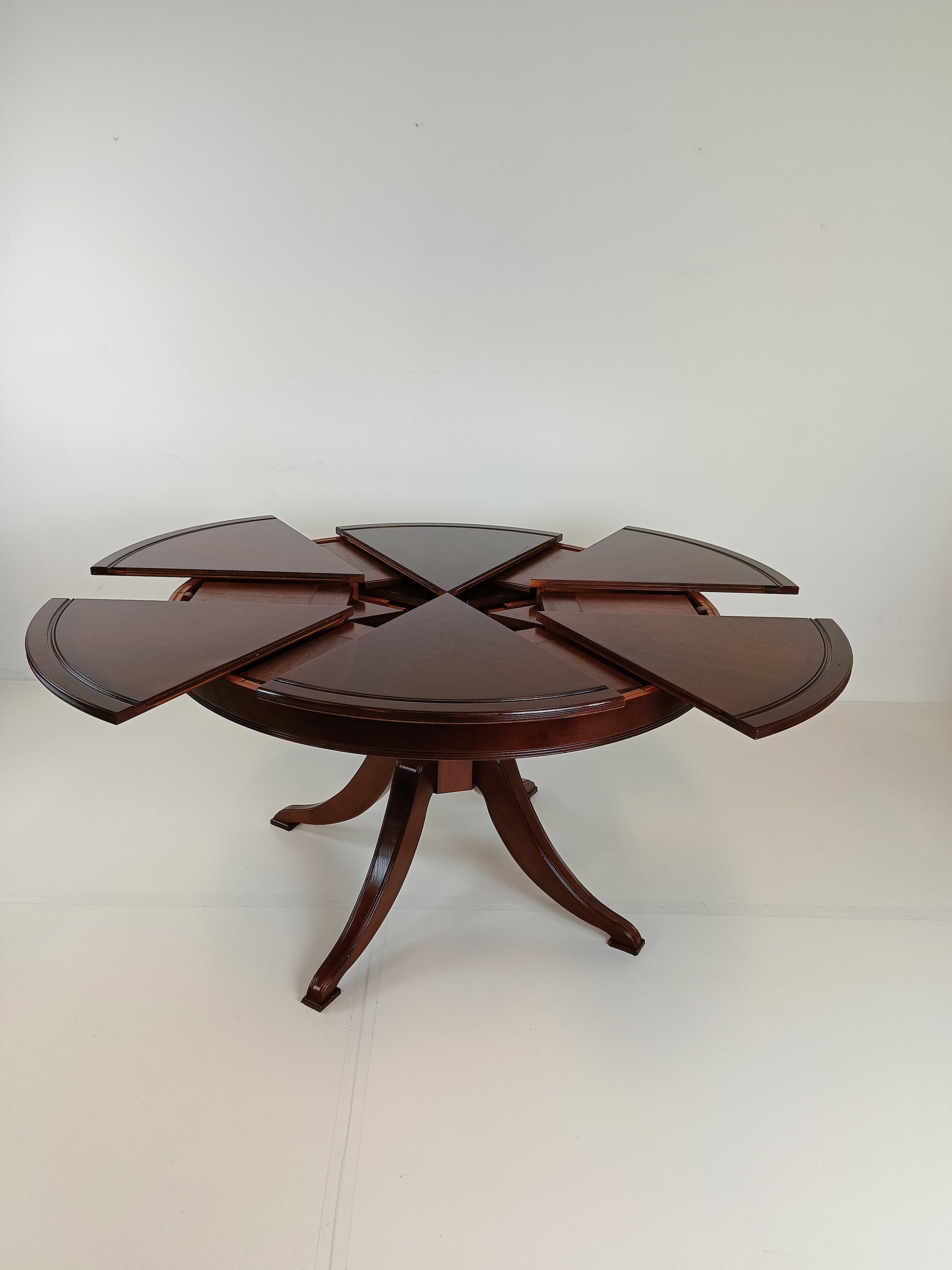 A true crowd pleaser. The extending Jupe style table, with its innovative design, allows your dining table to expand along with your guest list. From traditional to contemporary, the style of the Jupe ranges; however, the careful construction is consistent throughout. Leaves are artfully stowed in the body of the table providing for optimal dinner conversation.