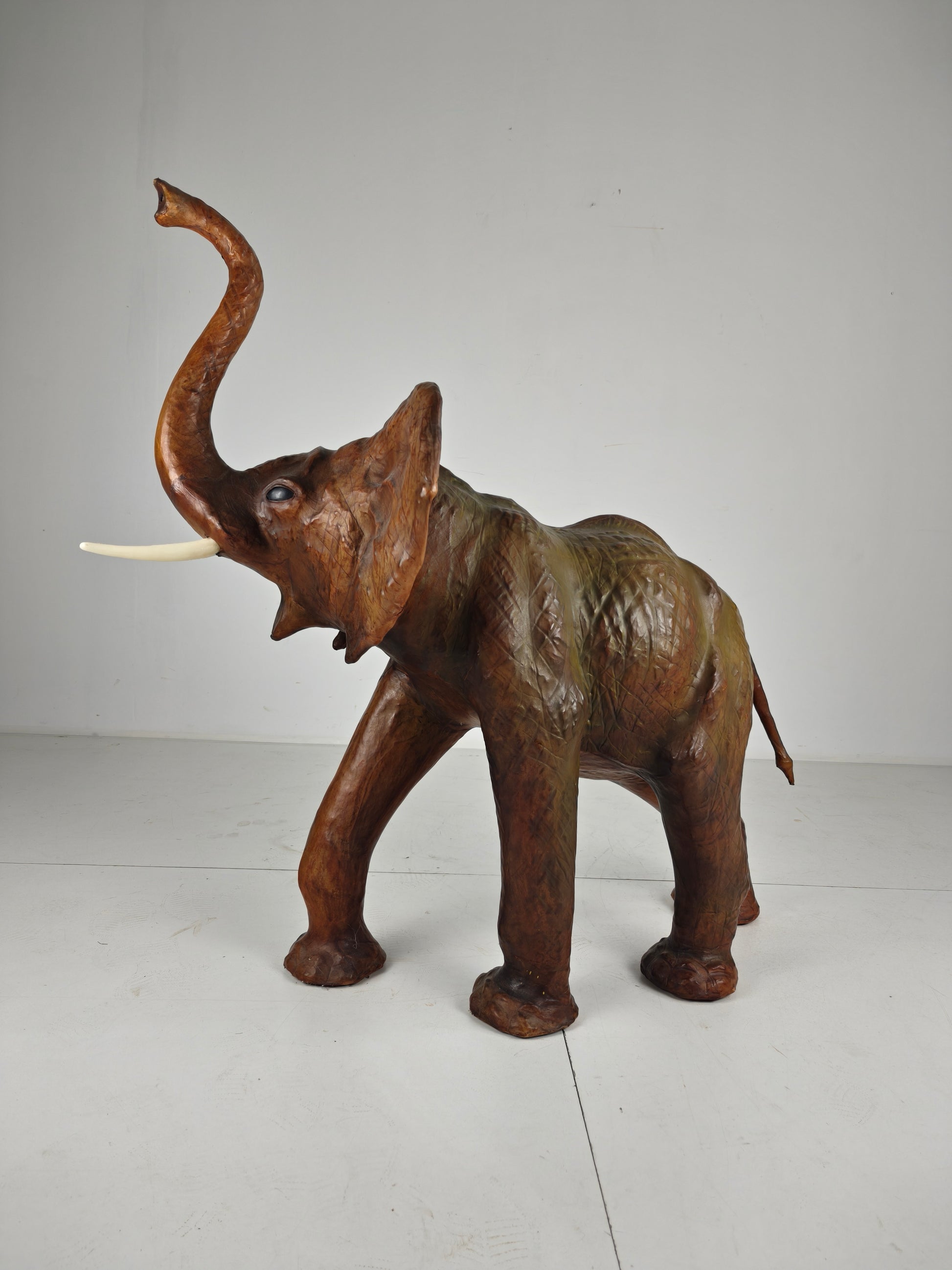 Magnificent Extra-Large Leather Elephant Sculpture – ca. 1950