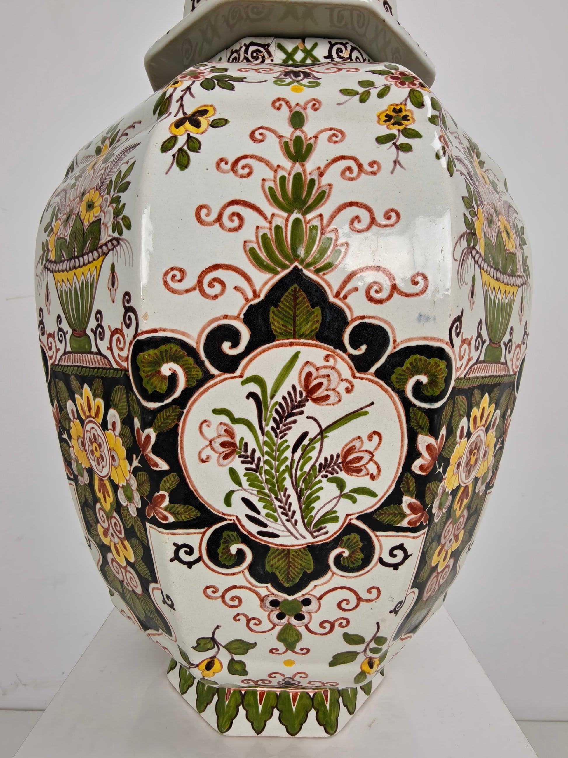 A large and decorative Makkum Tichelaar lidded pot, beautifully hand-painted in the traditional Dutch style. Crafted in porcelain, this impressive piece showcases the renowned workmanship of the Tichelaar workshop in Makkum, the Netherlands.